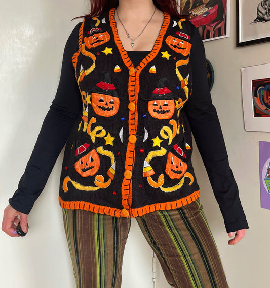 Pumpkin Patch 1990s Halloween Sweater Vest M