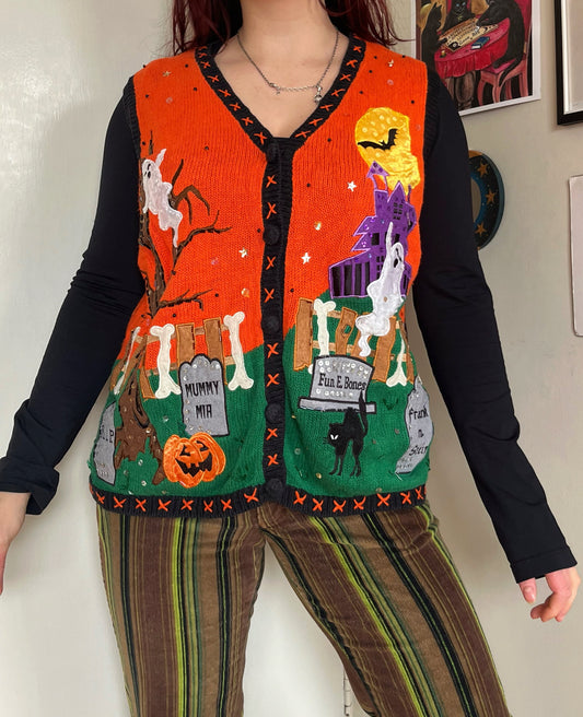 Toil and Trouble 2000s Halloween Sweater Vest M