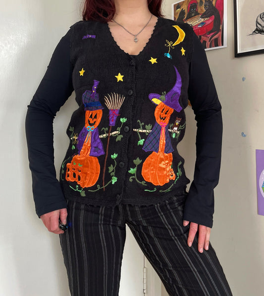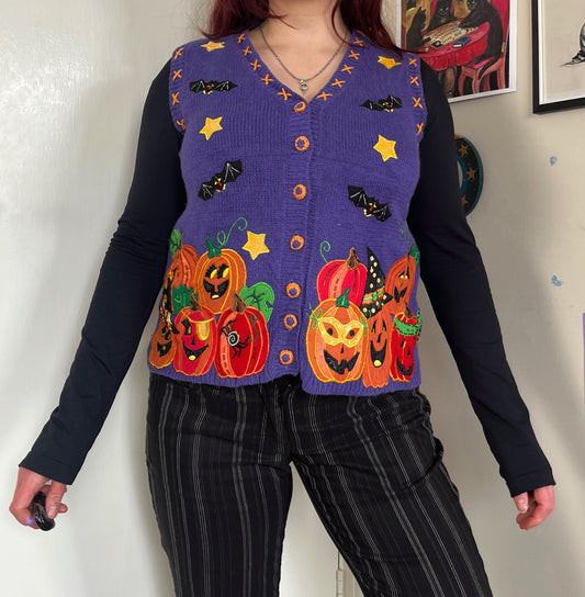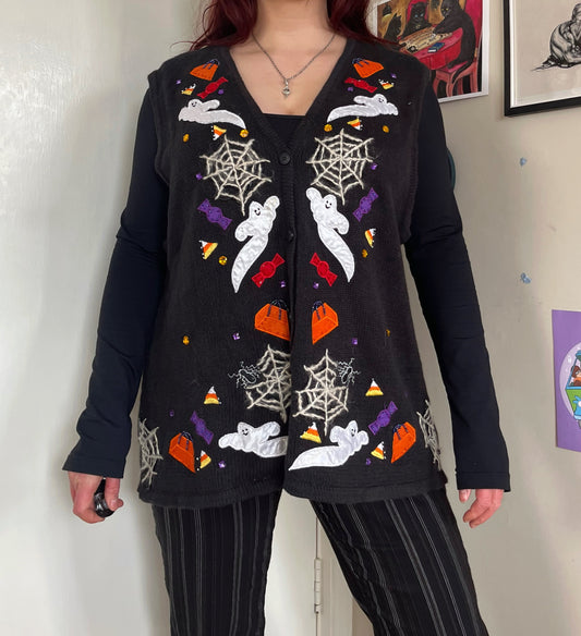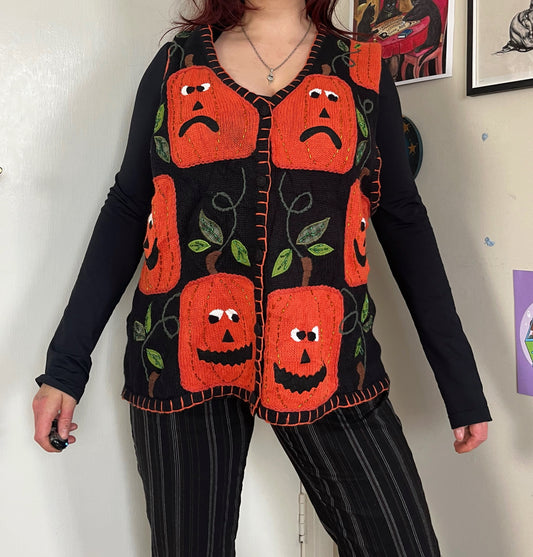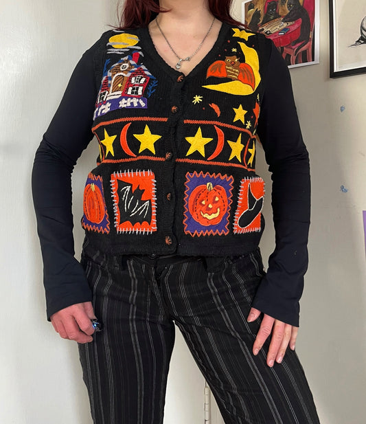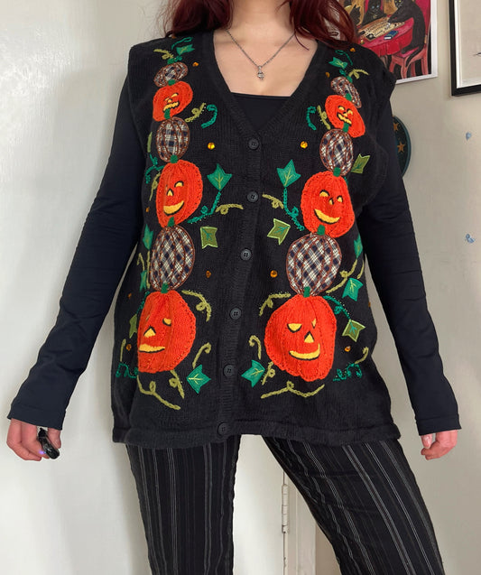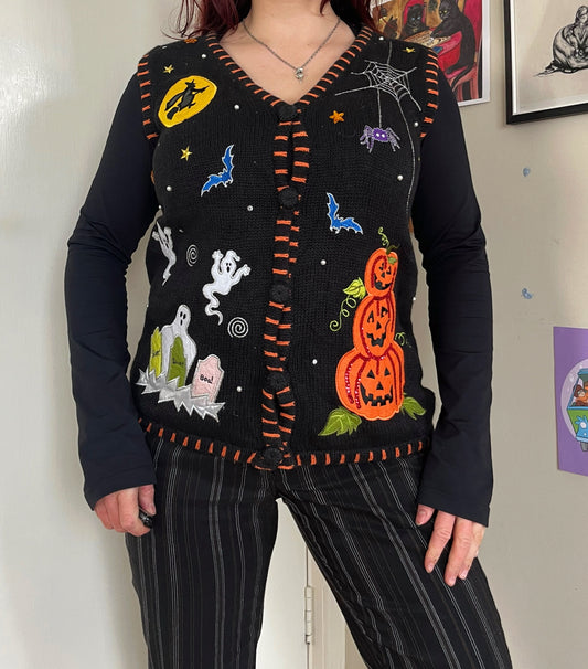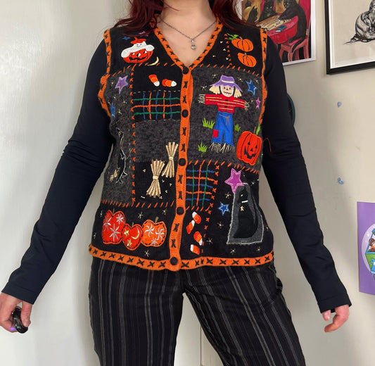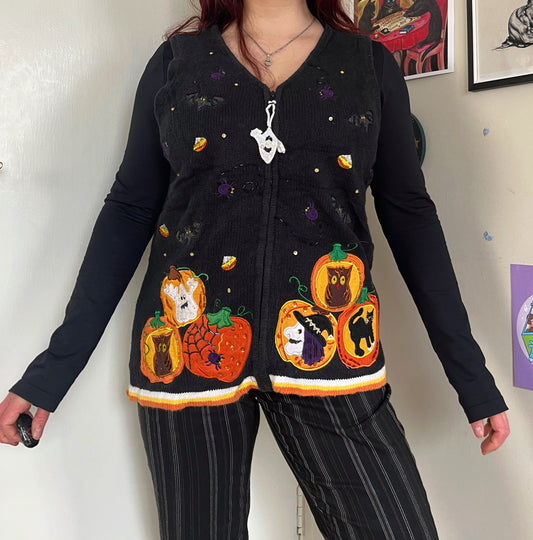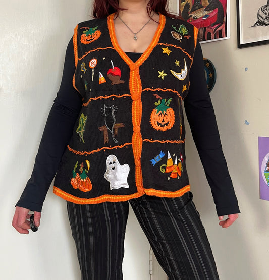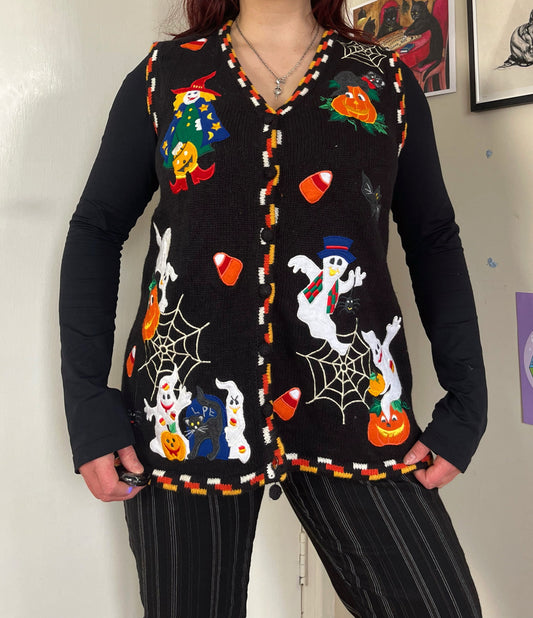 Autumn Breeze 1990s Halloween Sweater Vest L
