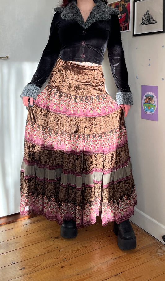 Velvet And Mesh Silk Maxi Skirt - UK 10