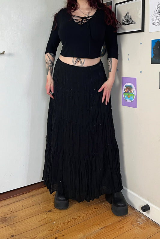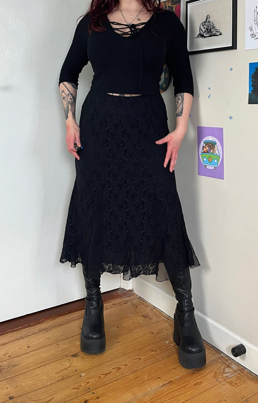Velvet And Mesh Silk Maxi Skirt - UK 10