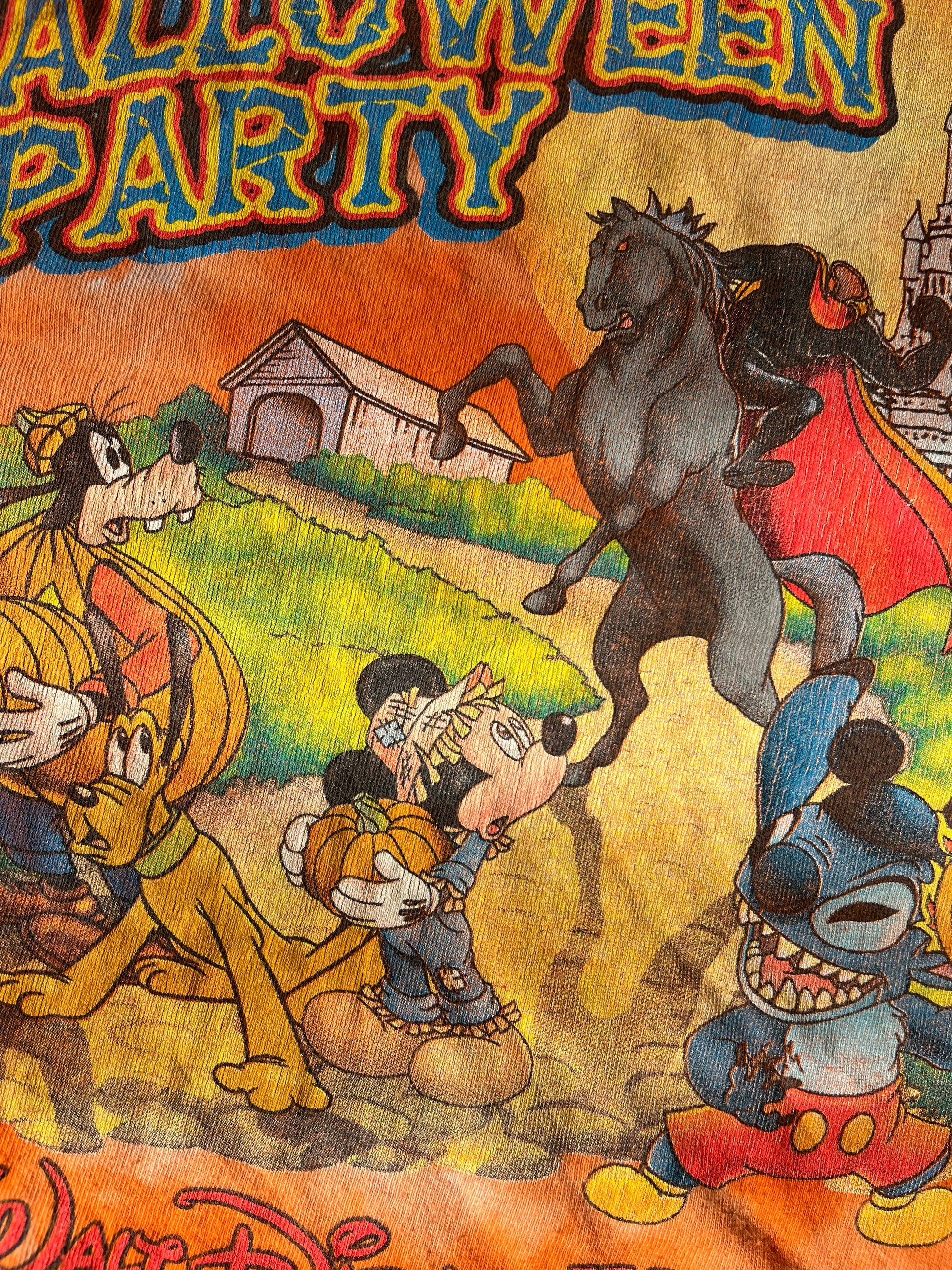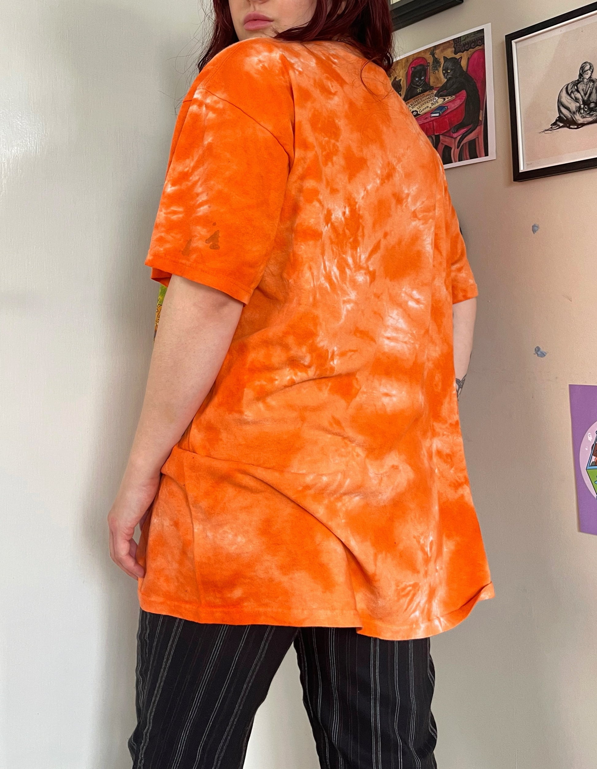 2005 Halloween tshirt by Disney World! Features a design on the front, a tie dye background and a loose boxy fit. Labelled L, fits like L/XL.