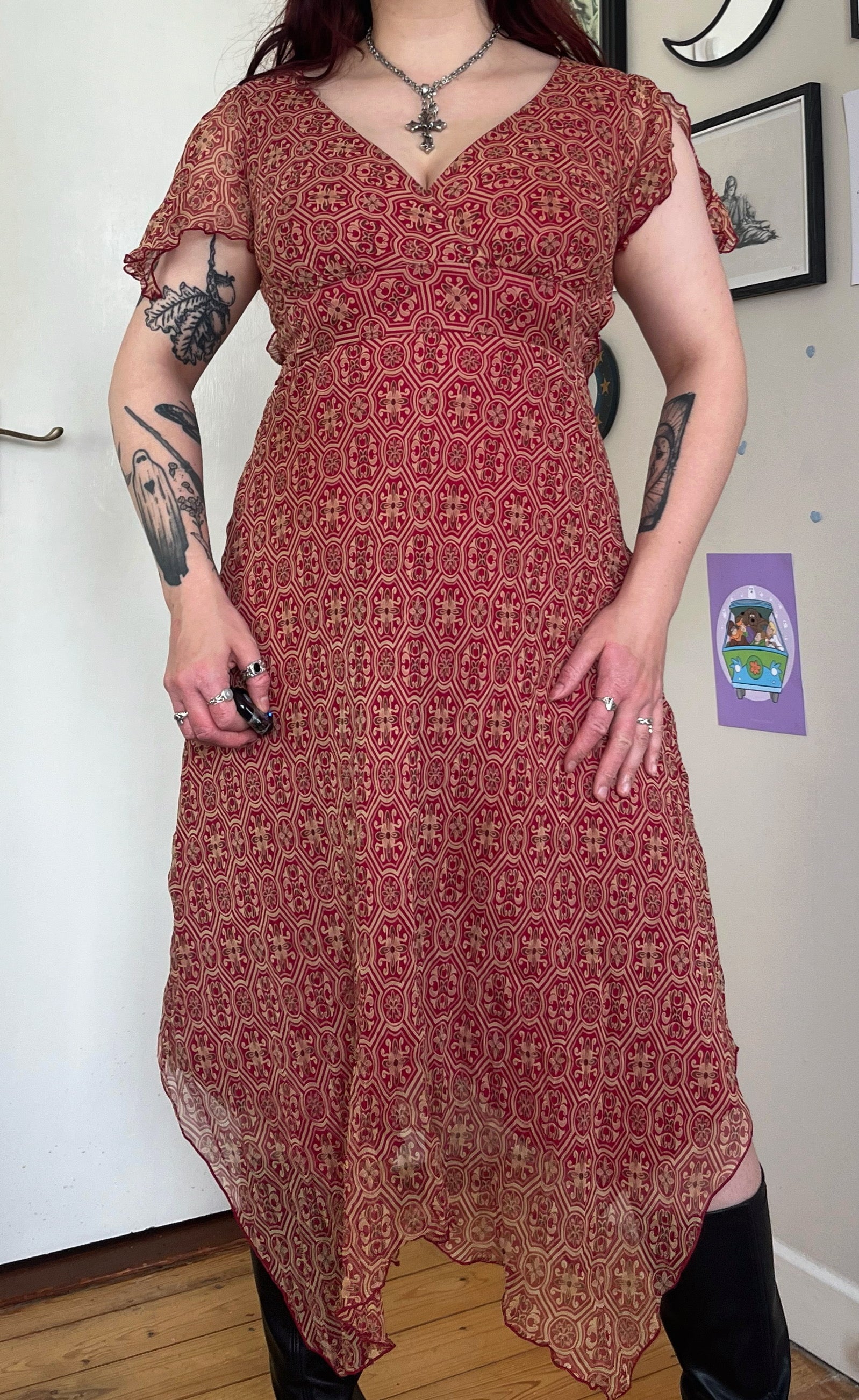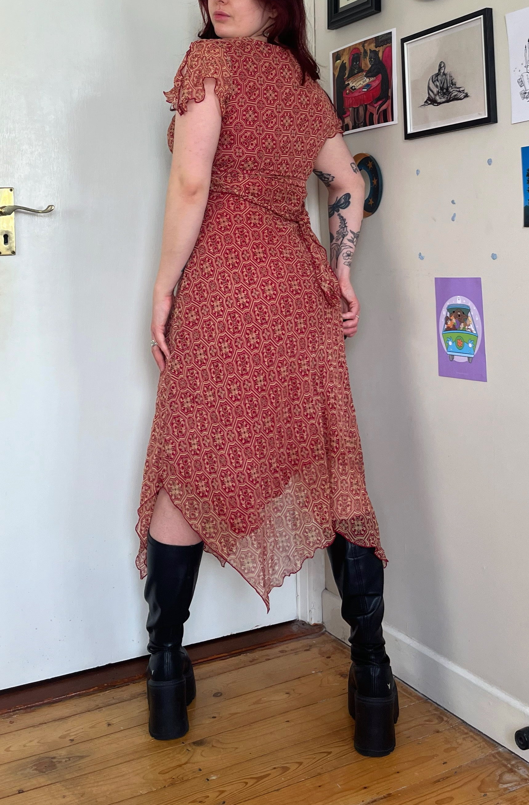 Amazing 1990s red silk dress! Floaty fabric with a zip on the side and a flattering fit. Made from 100% silk.