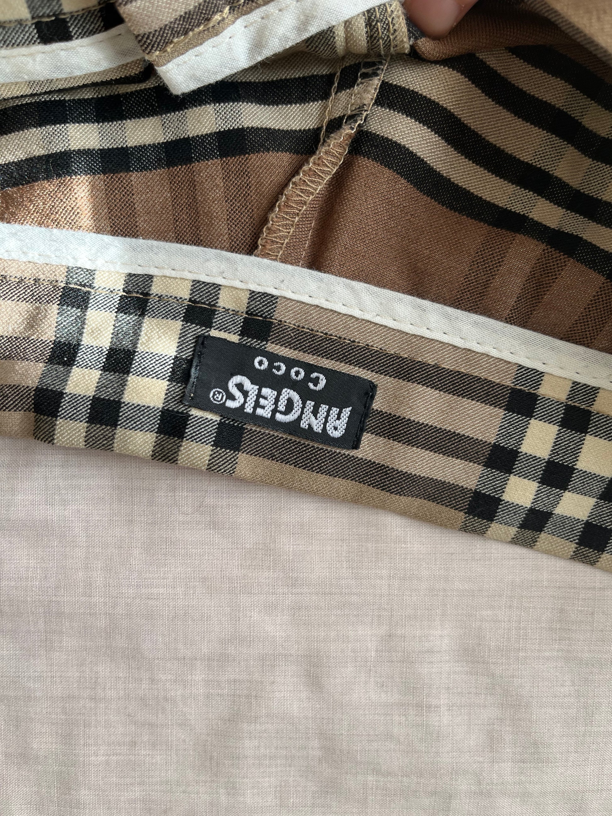2000s white and tan plaid pants by Angels! High waisted with a straight leg. Shorter length on these so best for someone 5ft 2 and under.