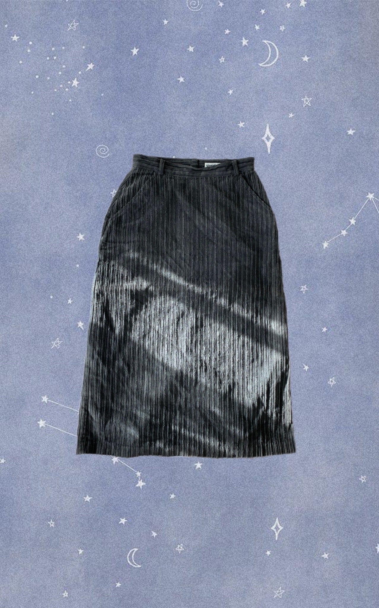 The cutest 90s grey corduroy midi skirt! This has a slit on the front and pockets. In perfect vintage condition and would best fit a UK 8. *The zipper works perfectly it just doesnt zip up on me fully!