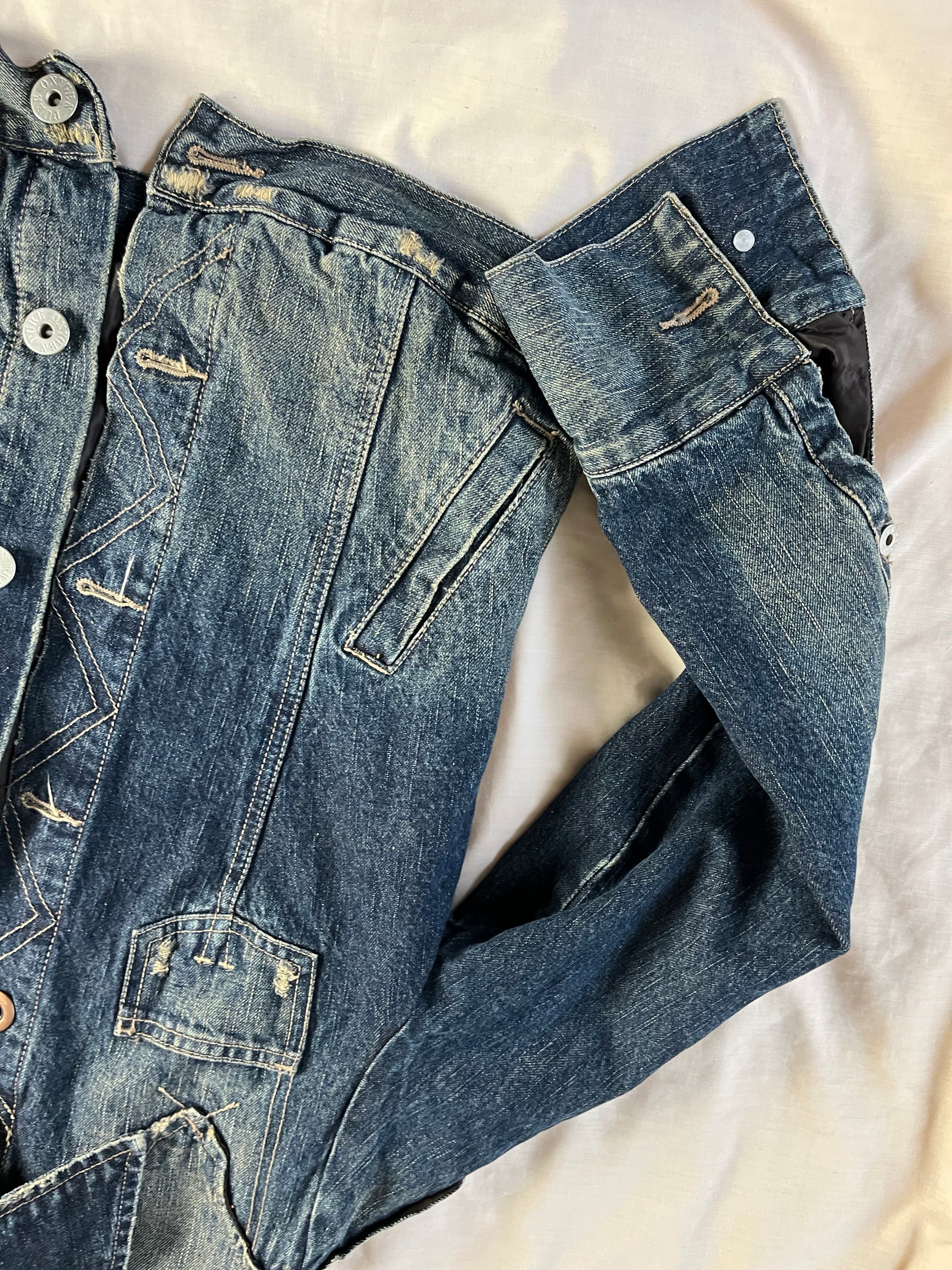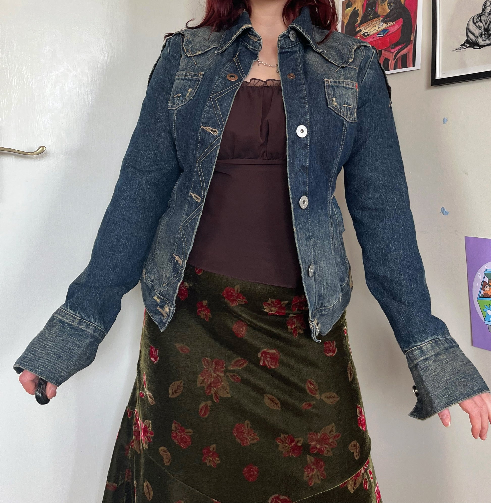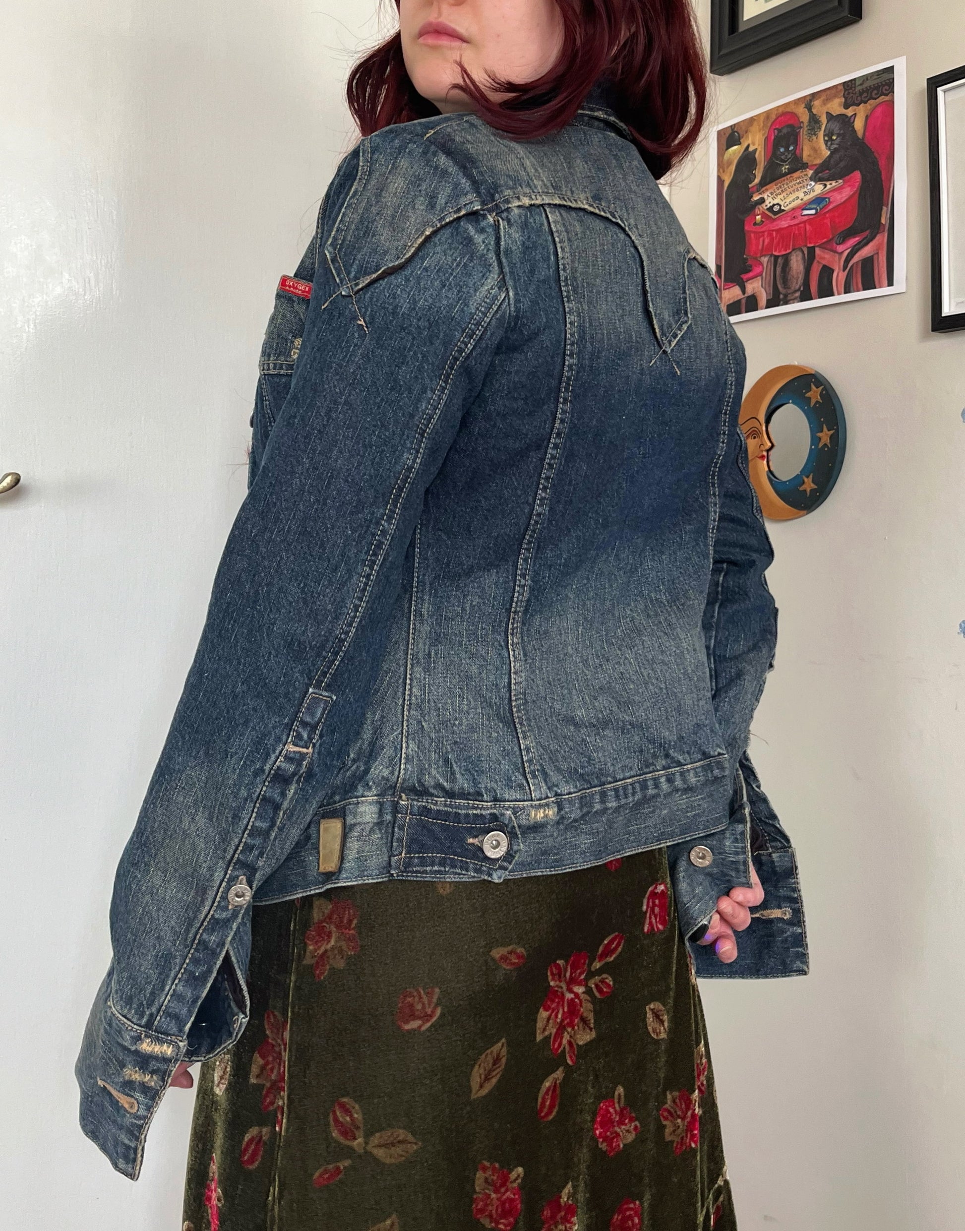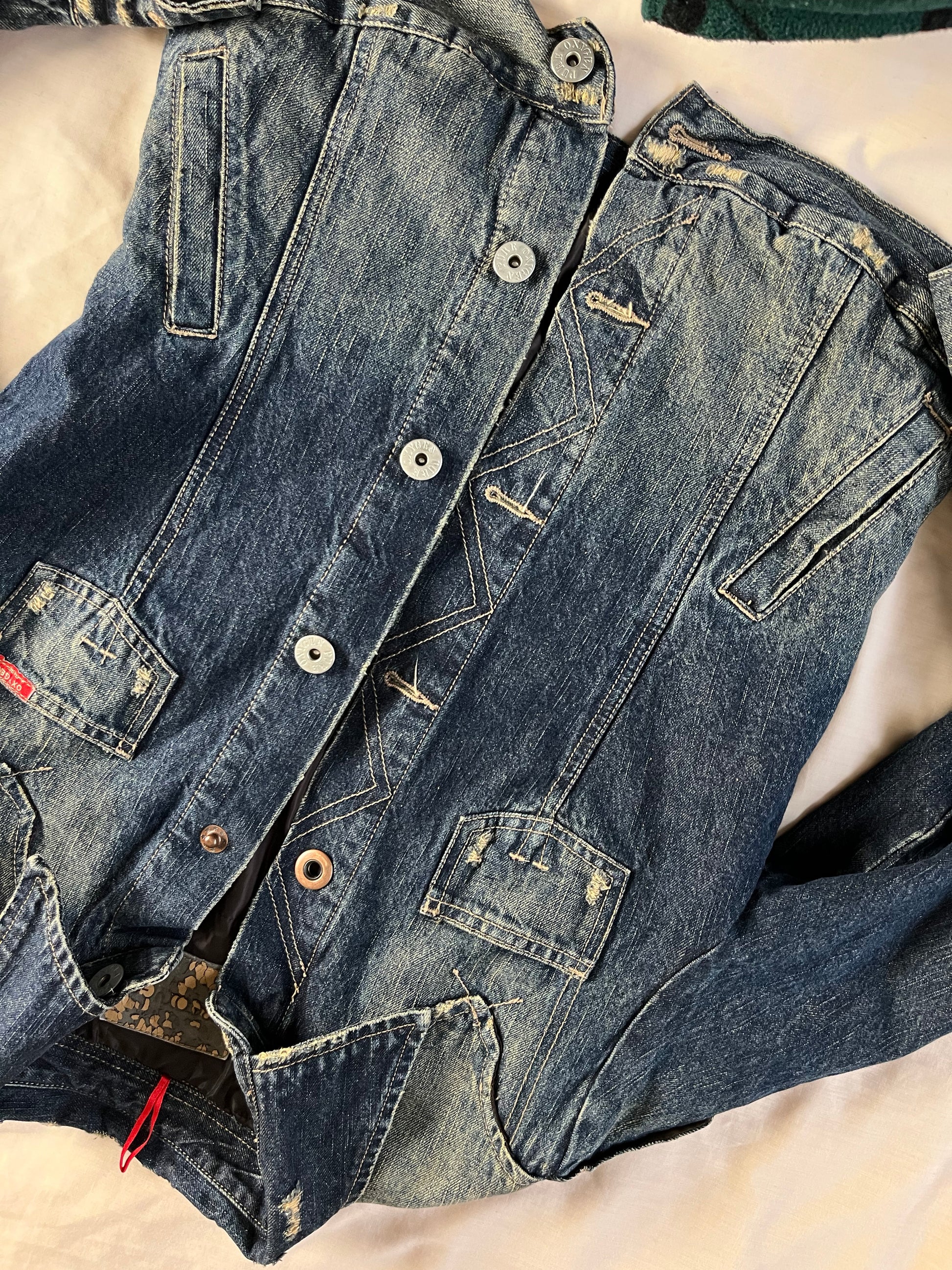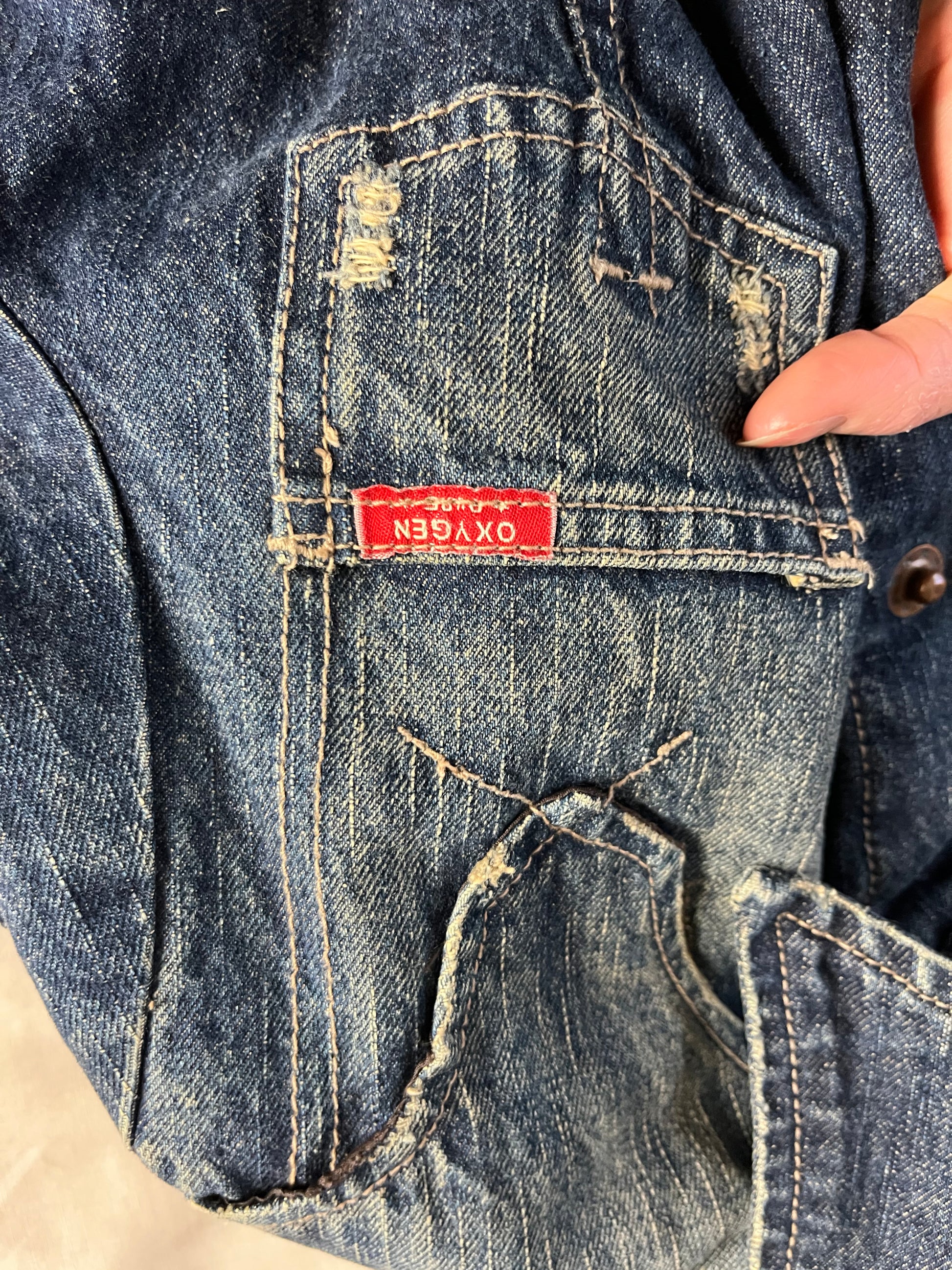 1990s distressed denim jacket! This has buttons on the front and a distressed look to it.