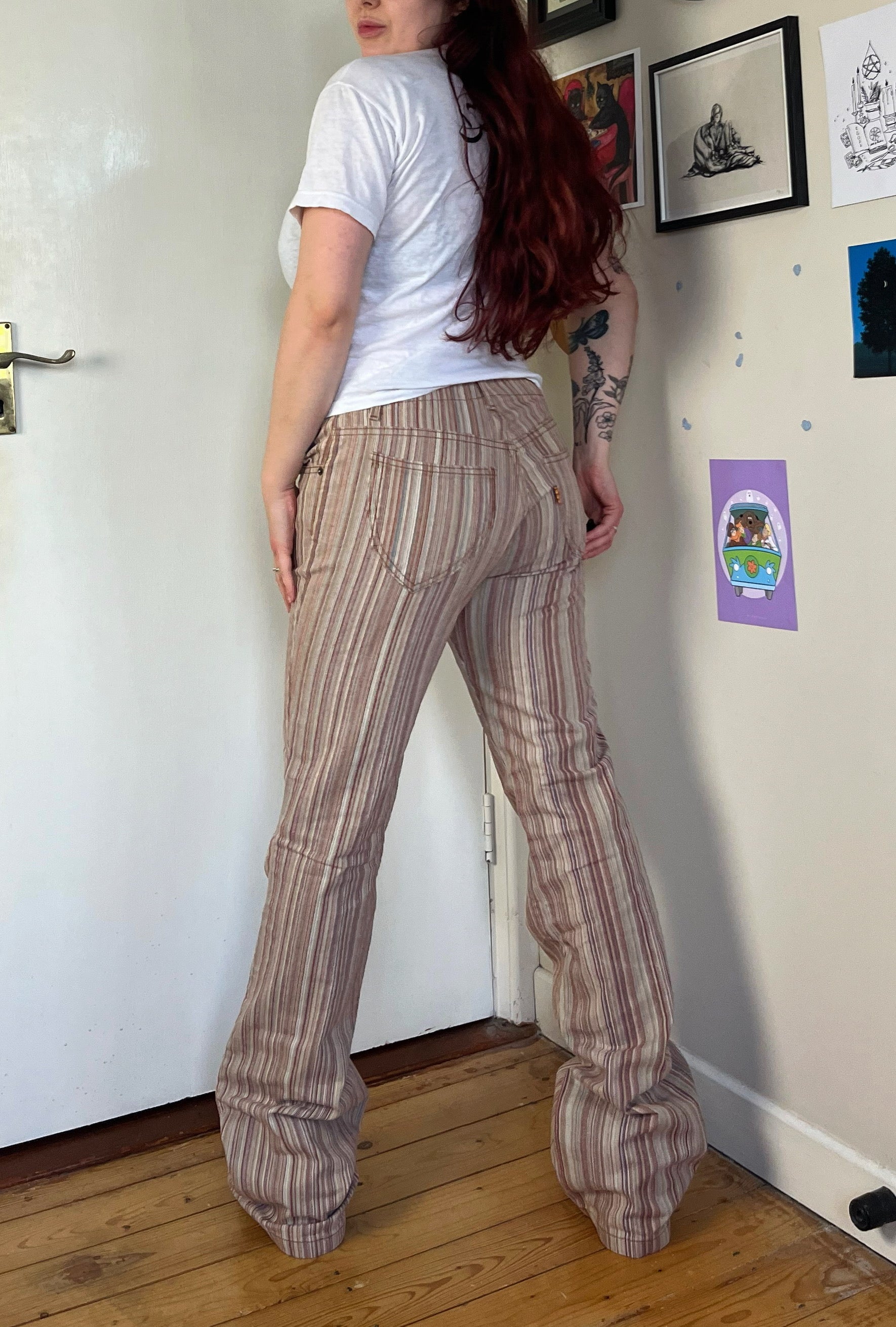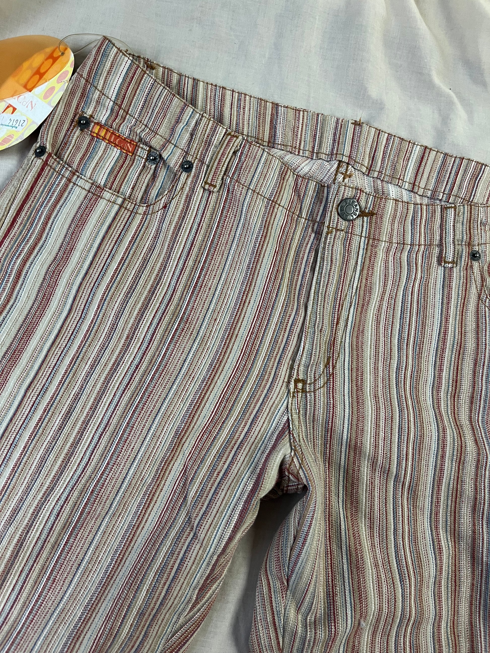 Amazing striped linen pants! These are deadstock (original tags still attached) and have flared legs and a mid/low waist. The inseam is quite long on these so they're best for someone taller!