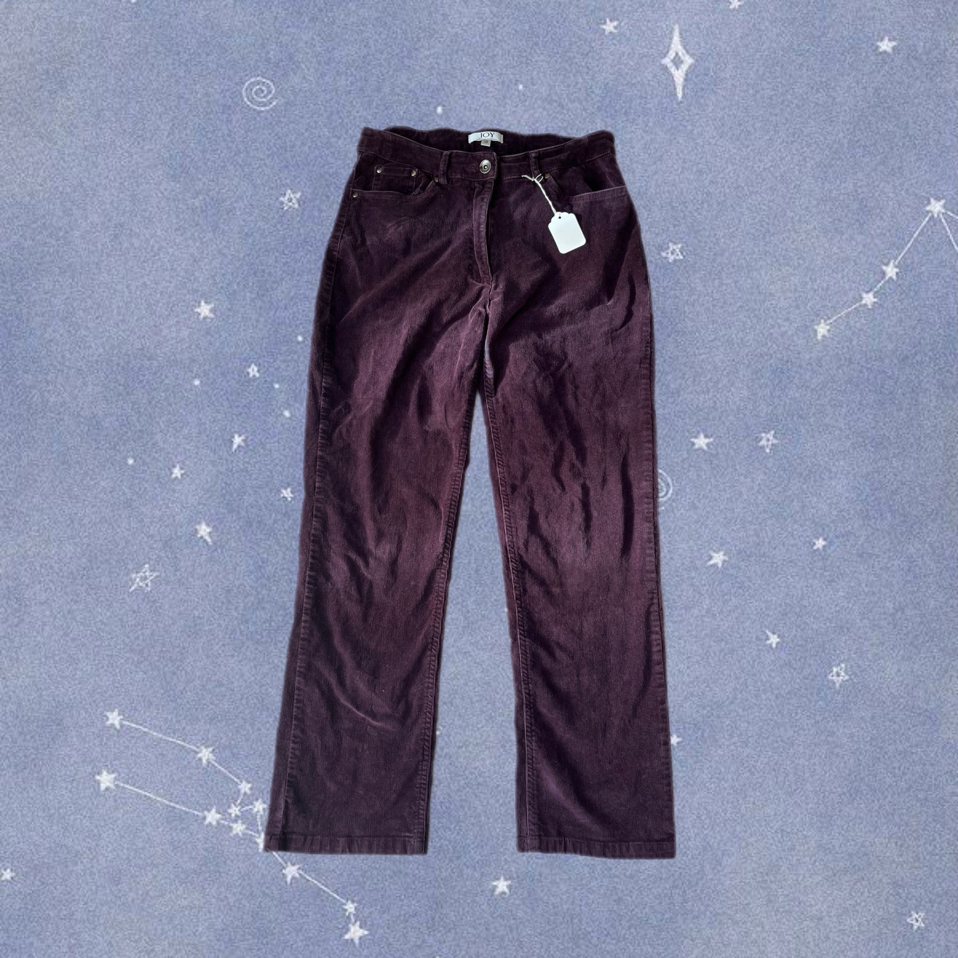 2000s dark purple corduroy pants! Zip up front with a slight flared leg and high waist.