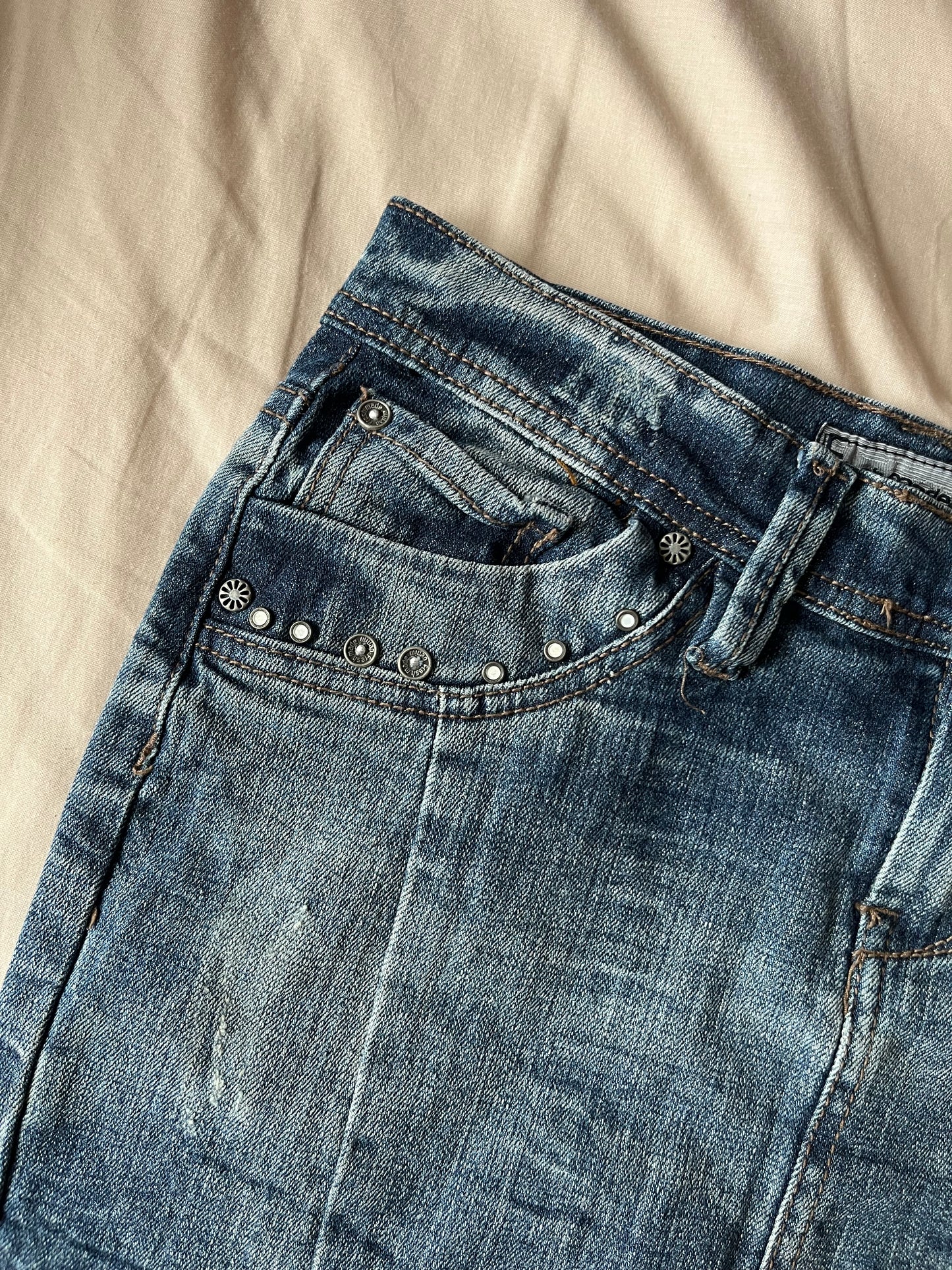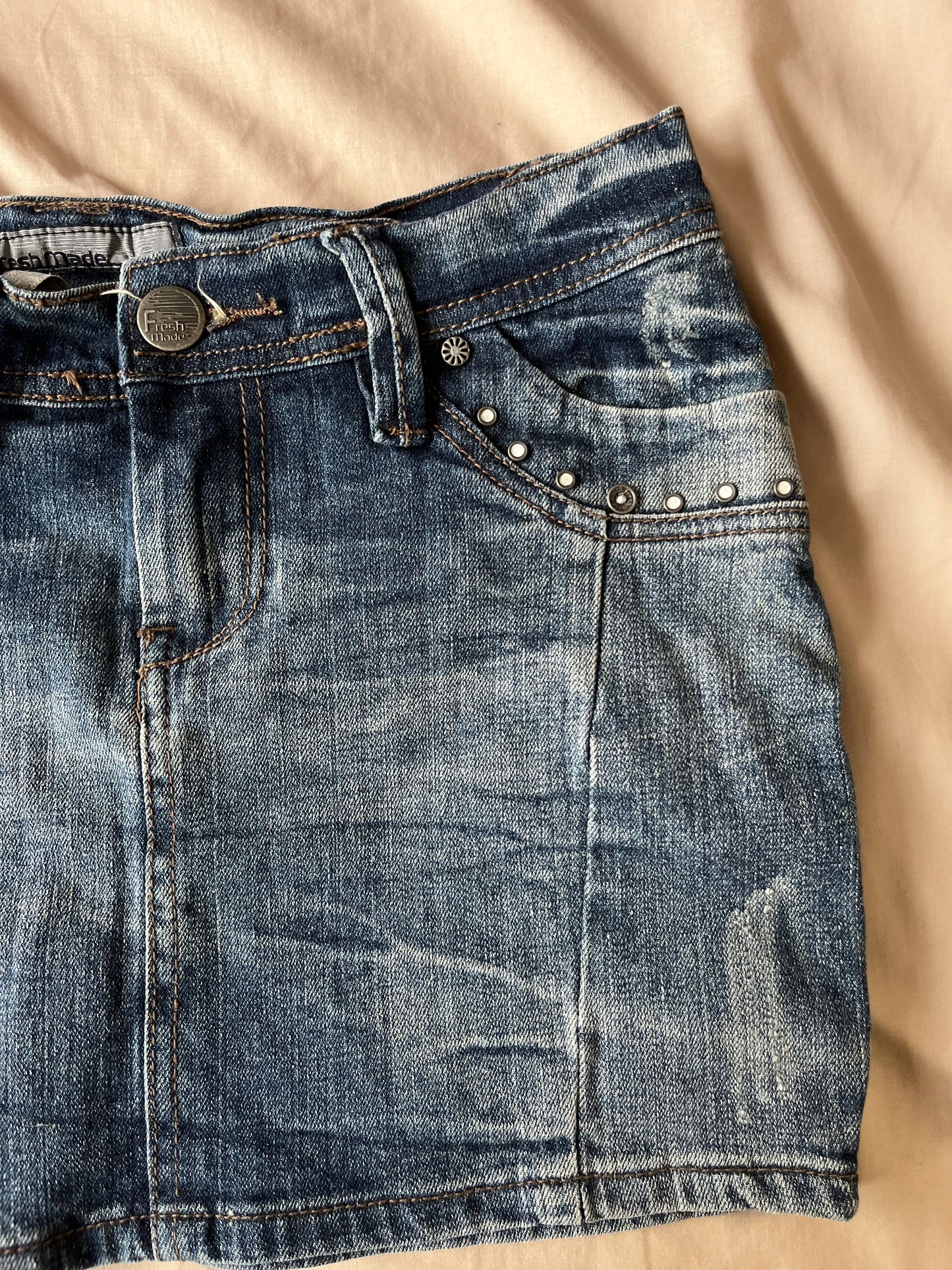 Super cute 00s denim mini skirt by Fresh Made! Some stretch to it and mini length fit. In perfect vintage condition and would best fit UK 8.