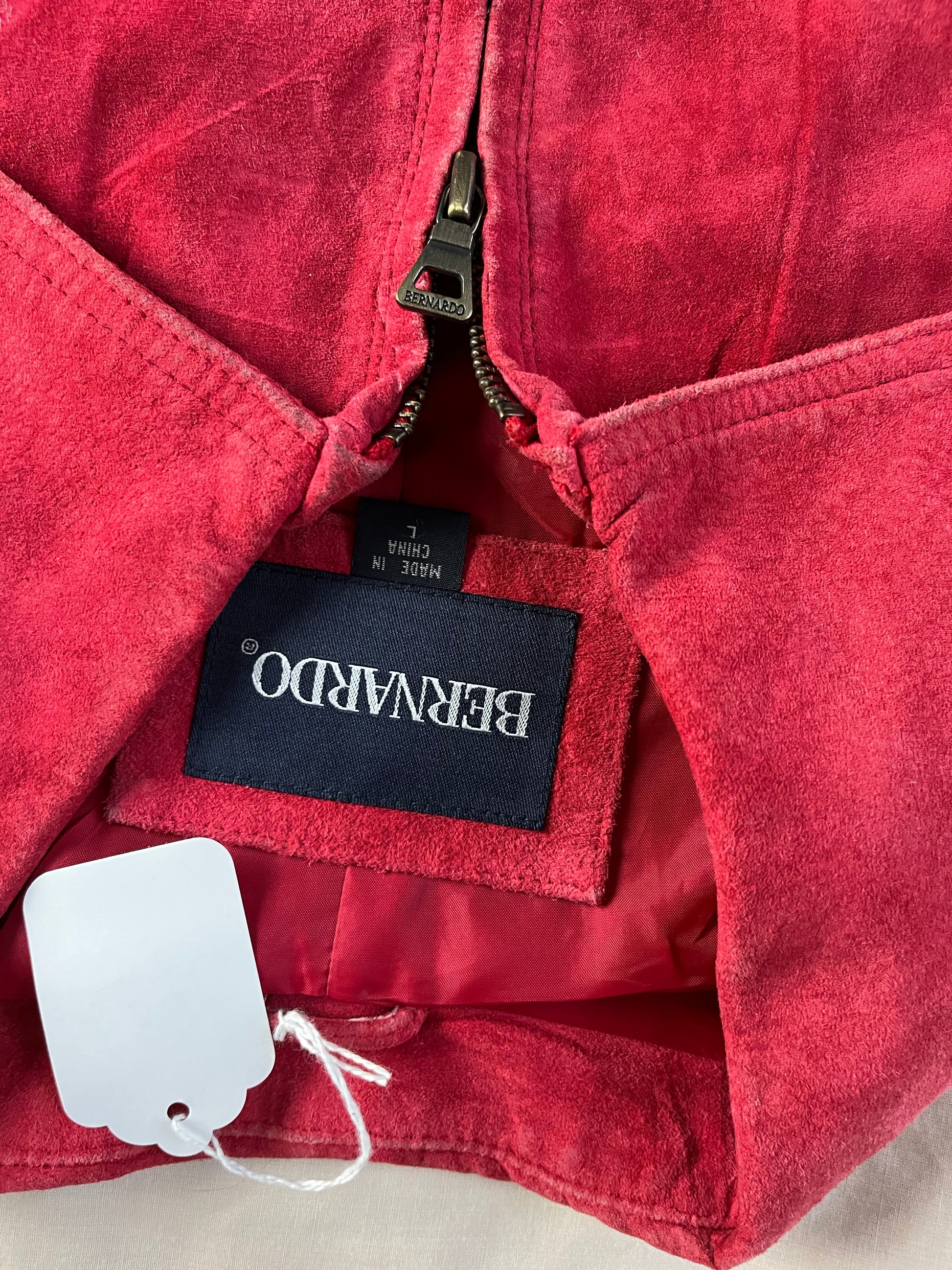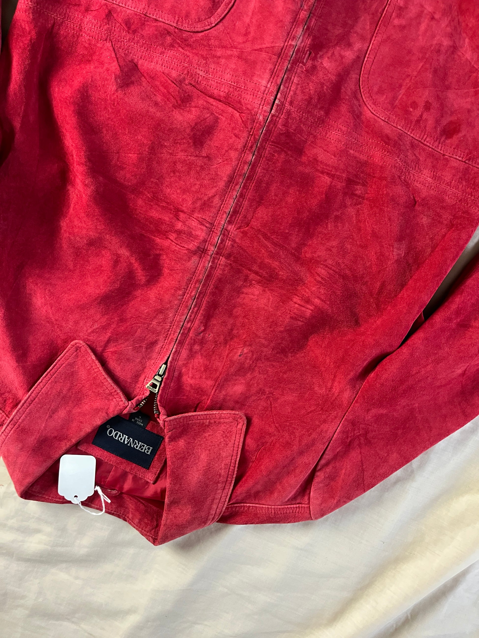 1990s red suede jacket! This zips up at the front, has pockets and has a flattering fit.