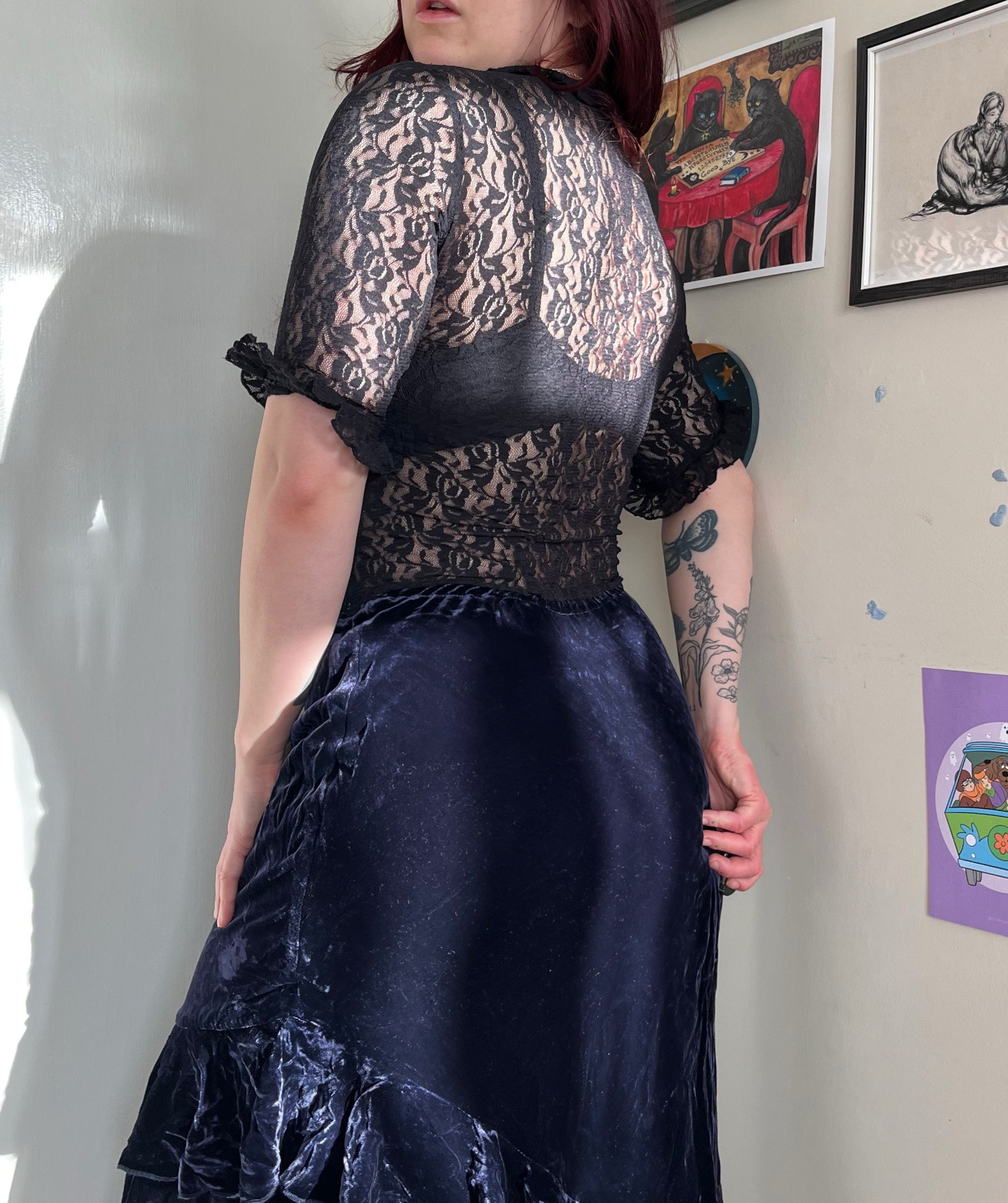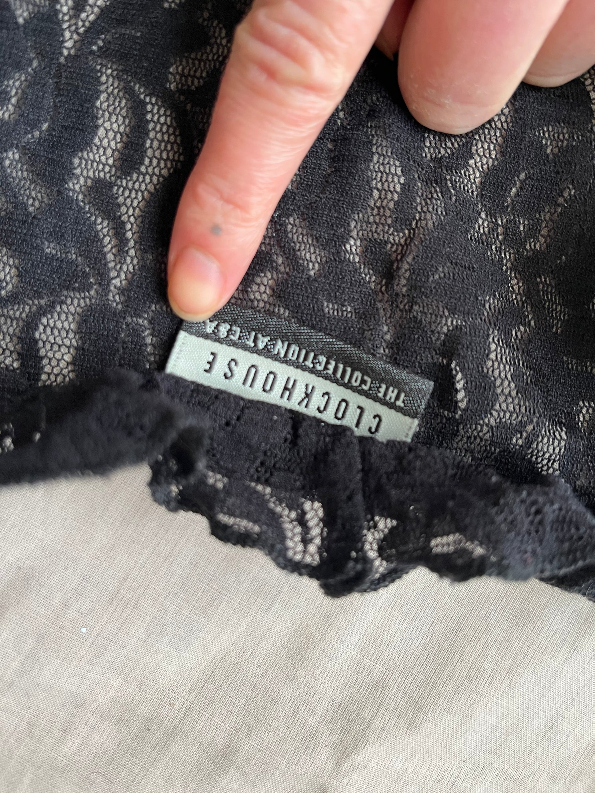 2000s black lace top by Clockhouse! Stretchy top with 3/4 length sleeves.