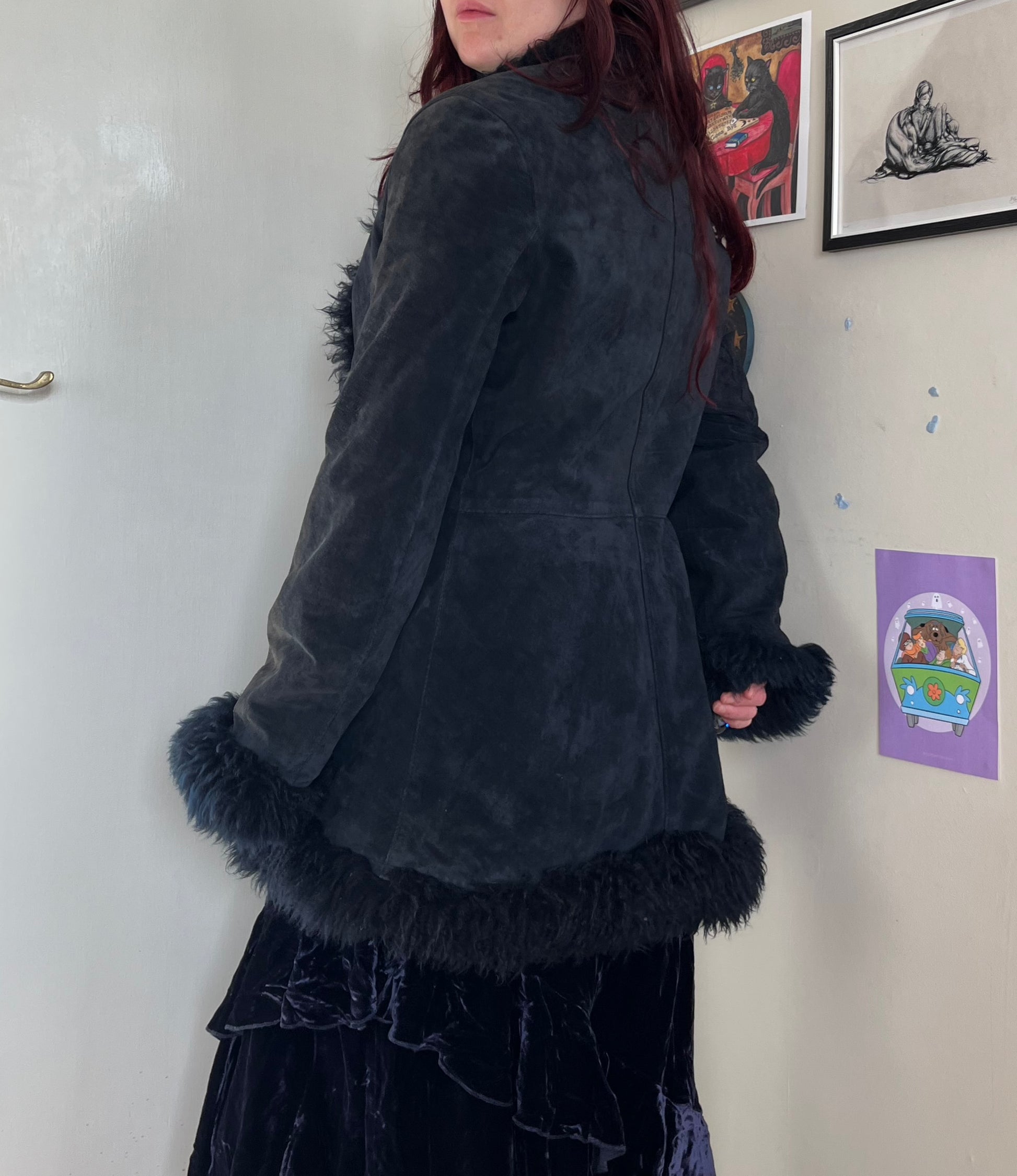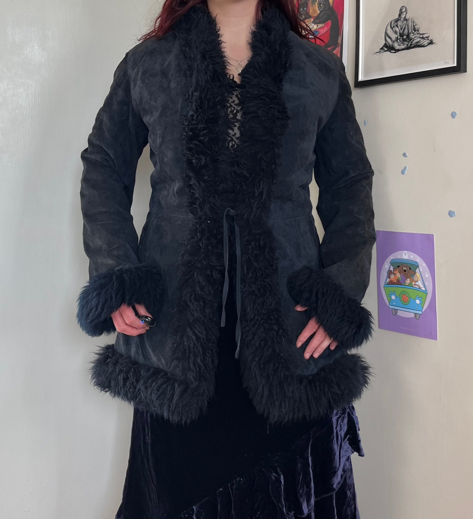 Beautiful 1990s black suede afghan/penny lane coat! Ties at the front and made of real suede.