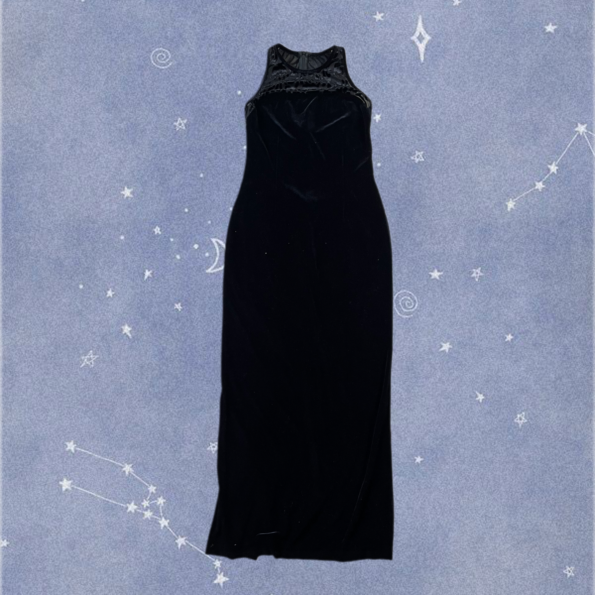 Stunning 1990s black velvet maxi dress! This has a slightly stretchy fit, flattering shape and a burnout velvet design on the collar.