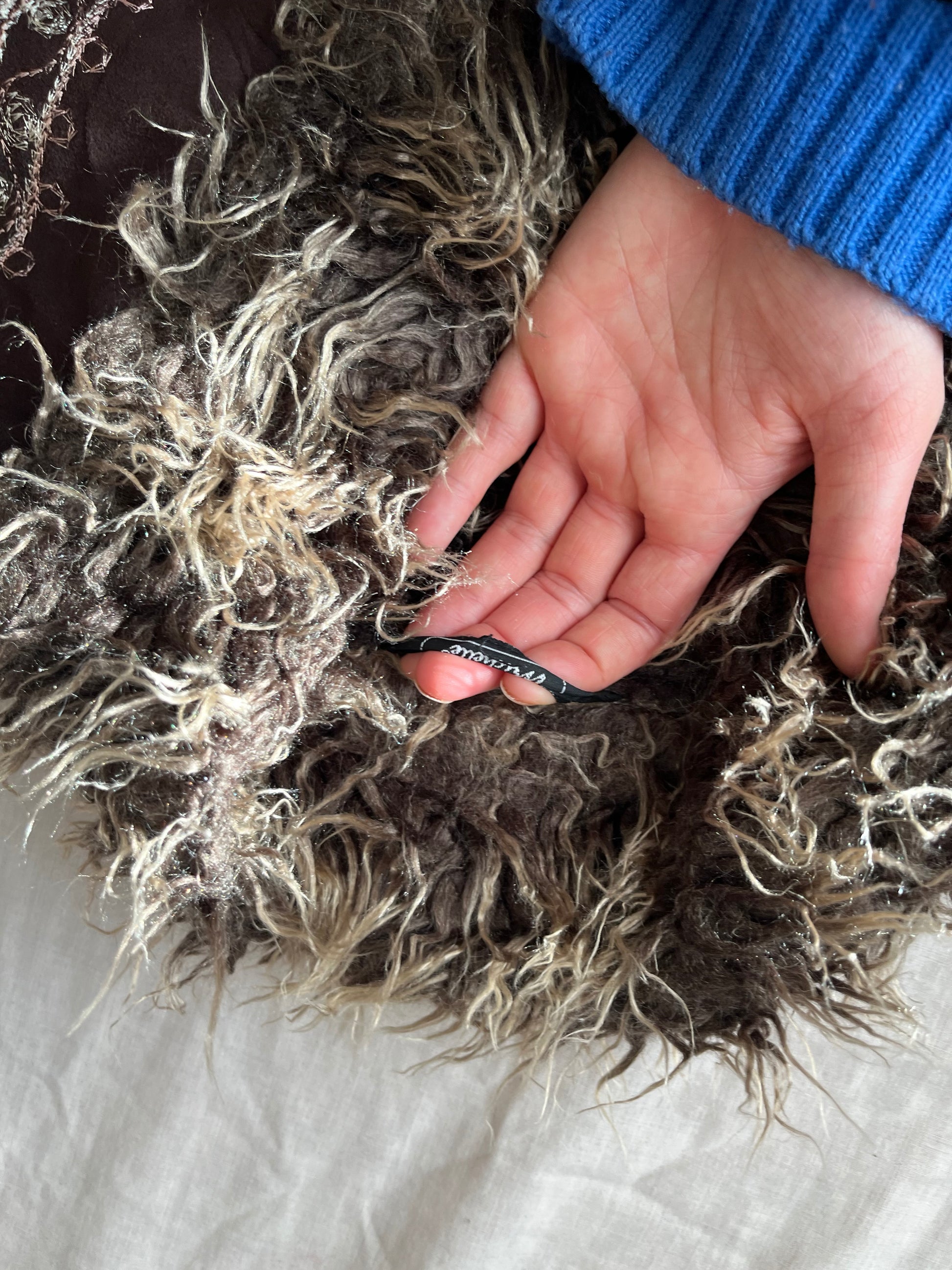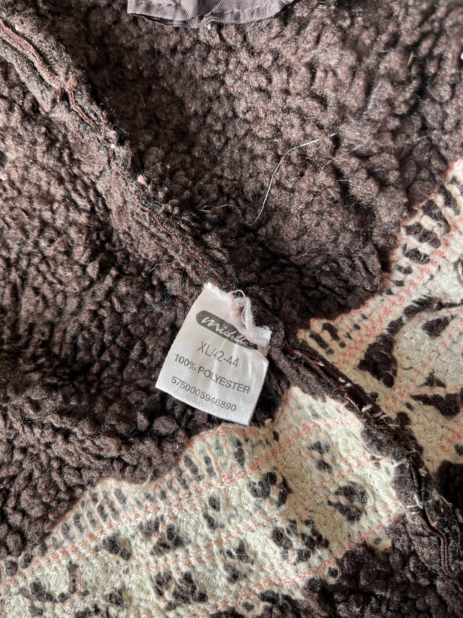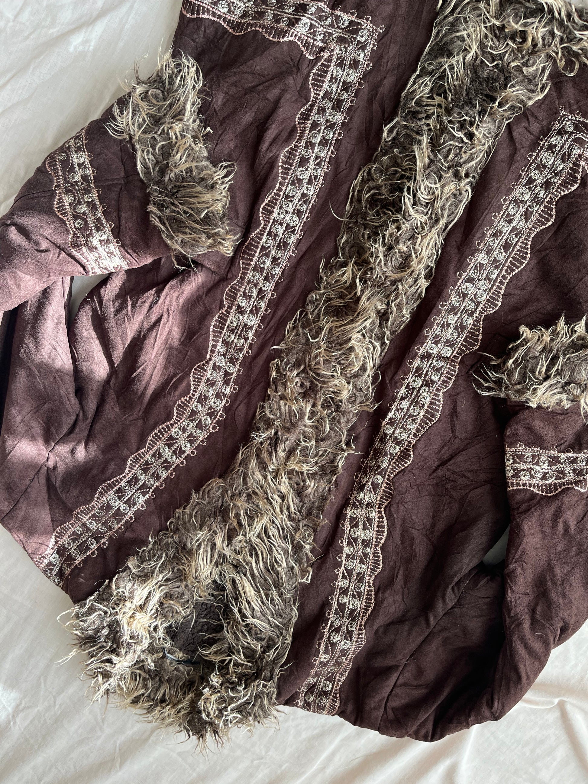 Beautiful 1990s/2000s dark brown afghan/penny lane coat! Buttons up at the front and has cute embroidered details.