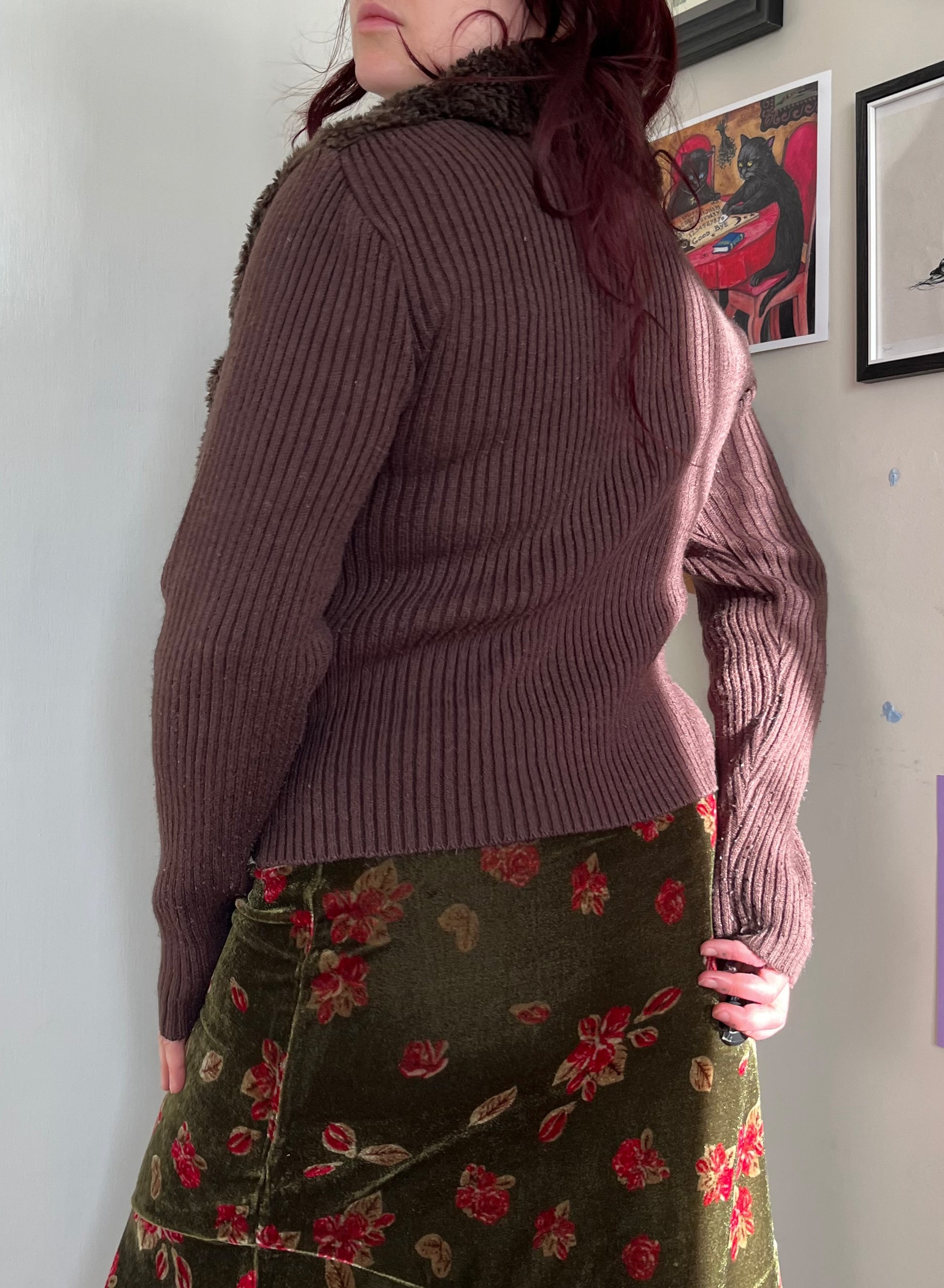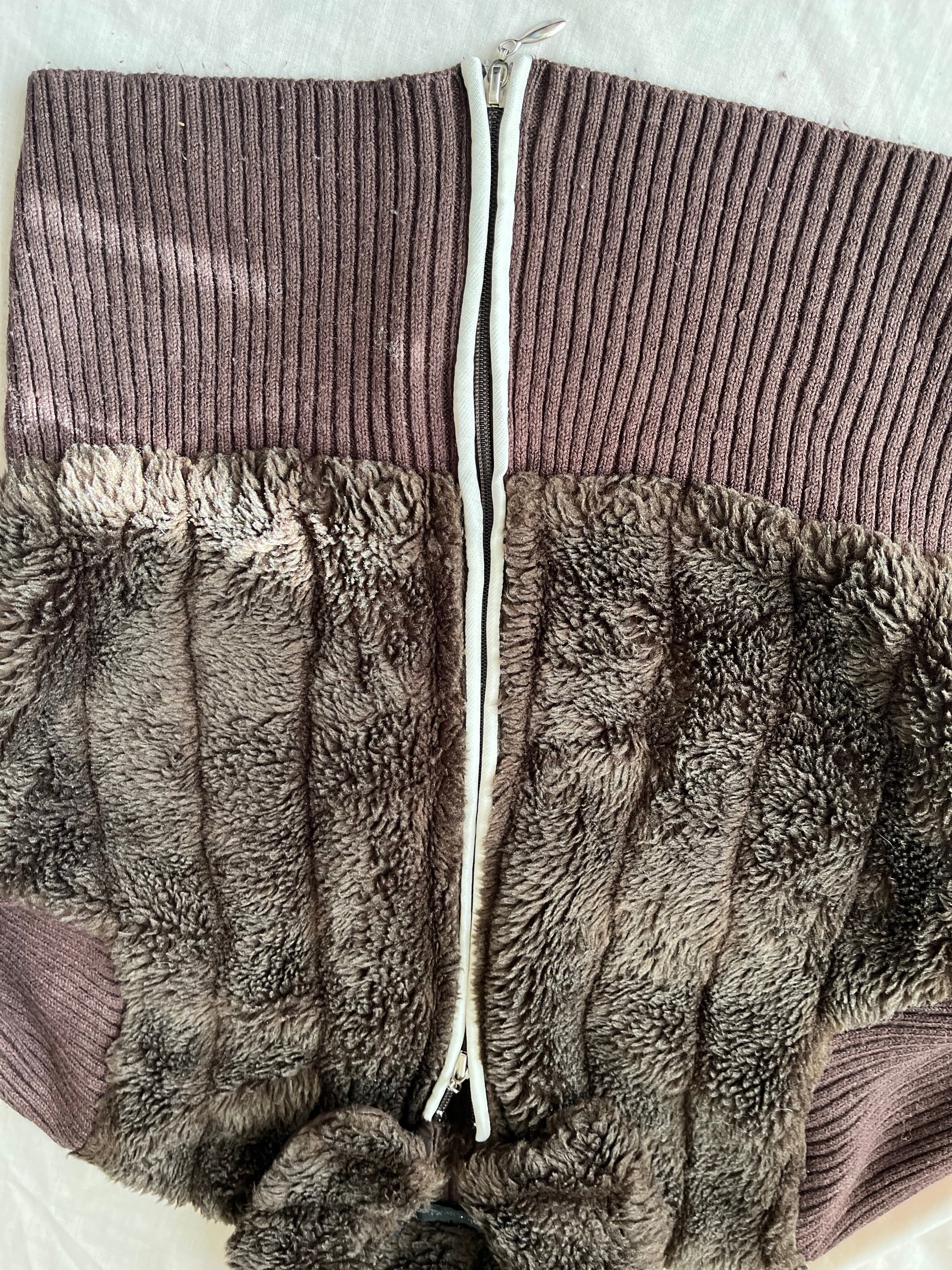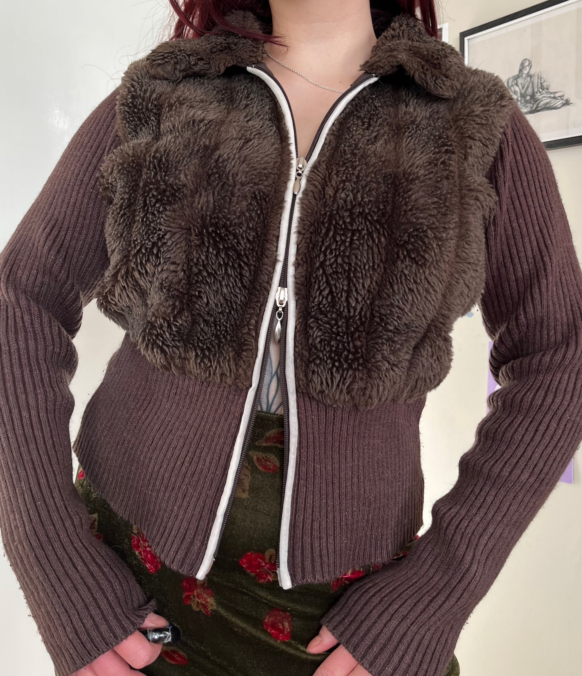 Amazing 2000s brown fluffy cardigan/jacket! This has a double zip and a fluffy exterior.