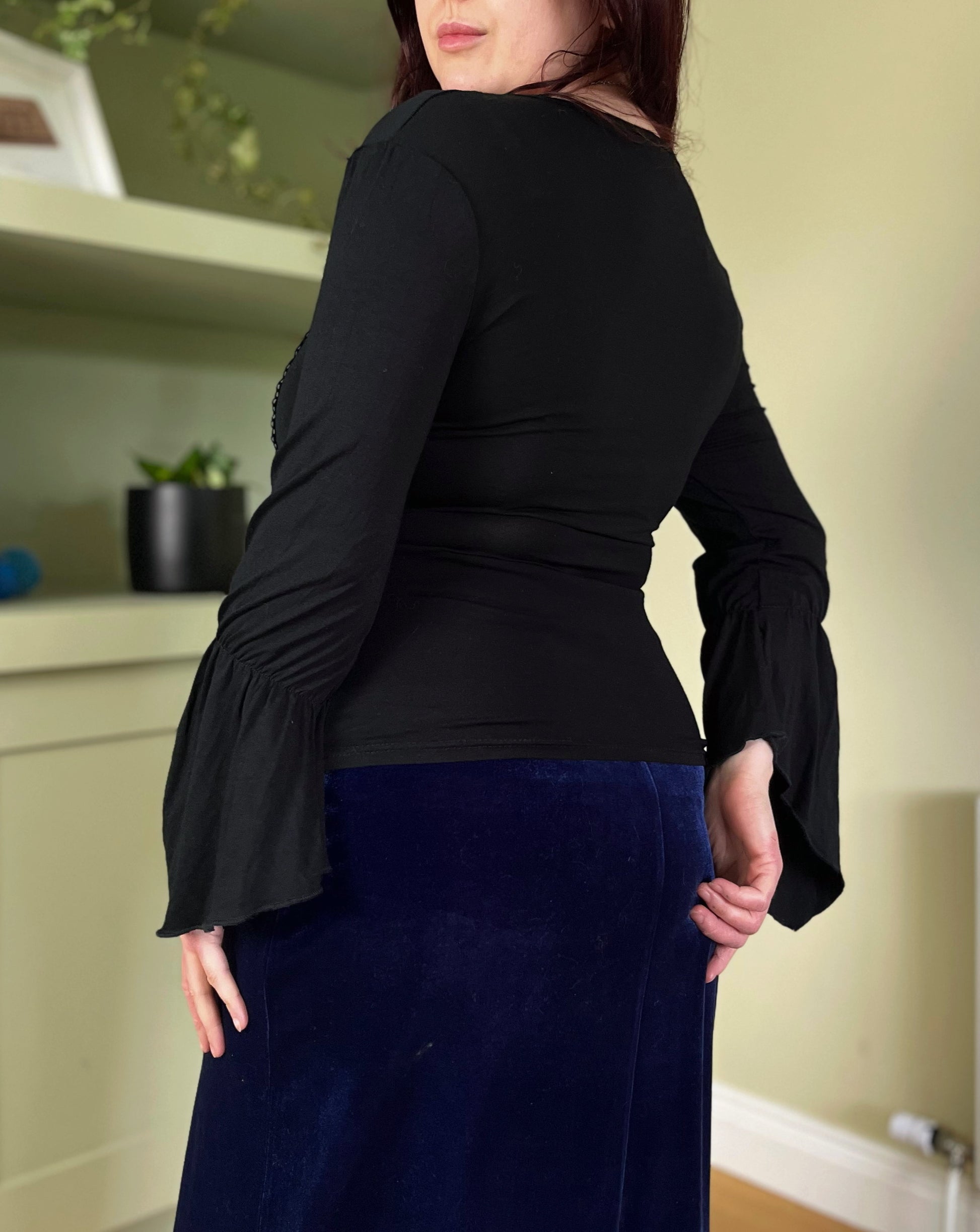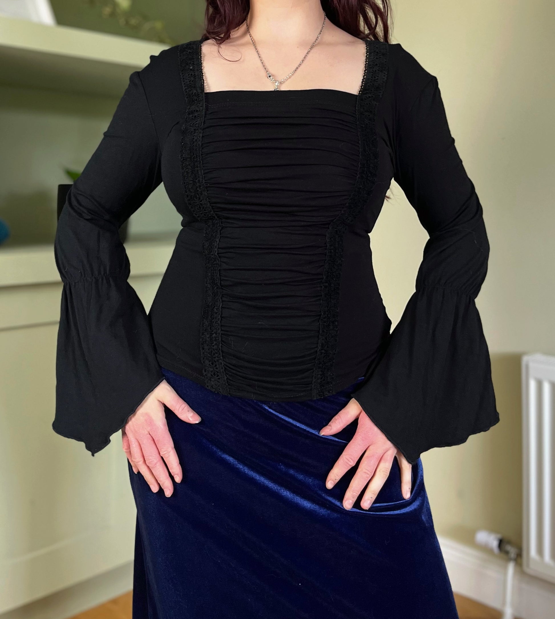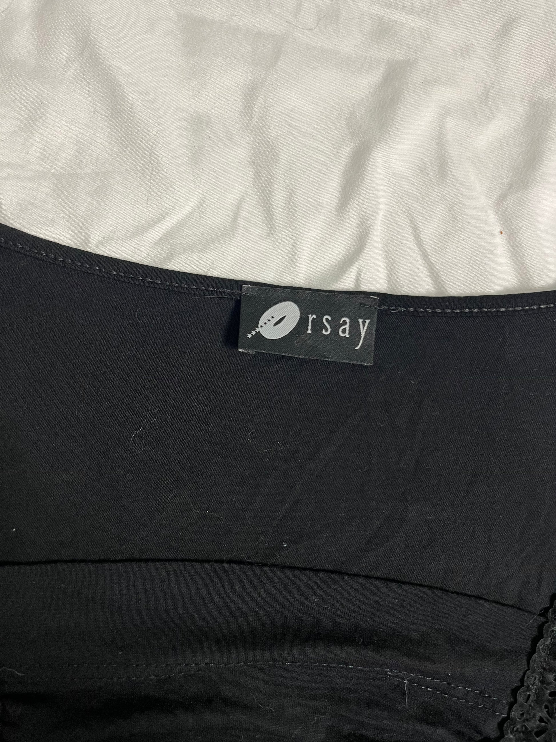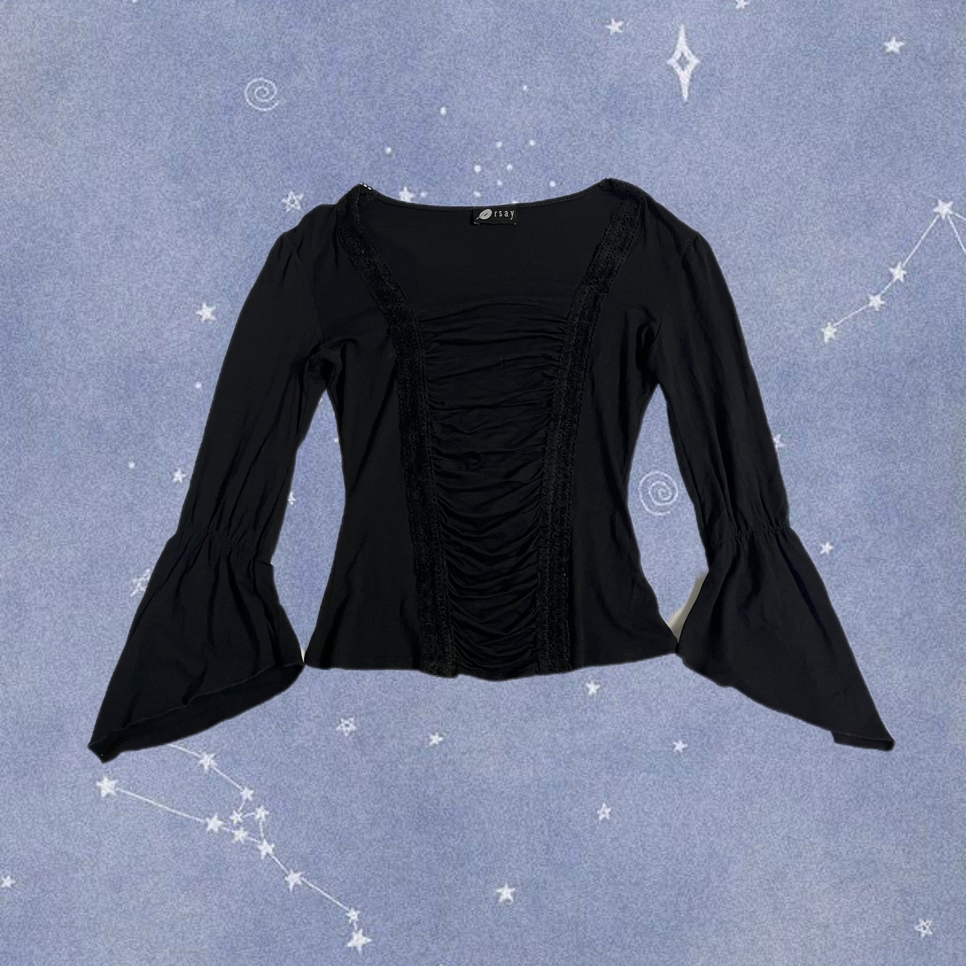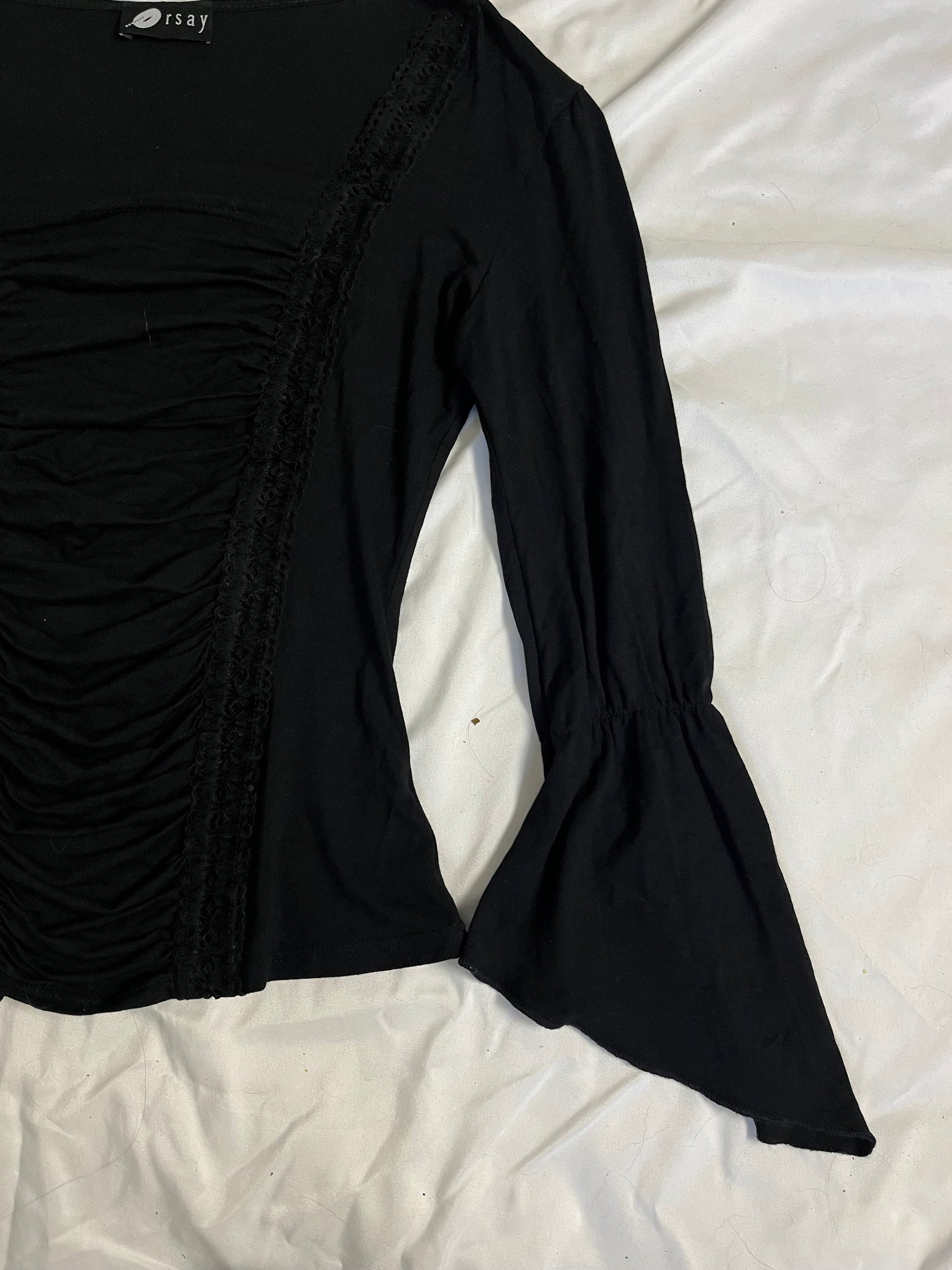 2000s black top by Orsay! Square neck with flared sleeves and a stretchy fit.