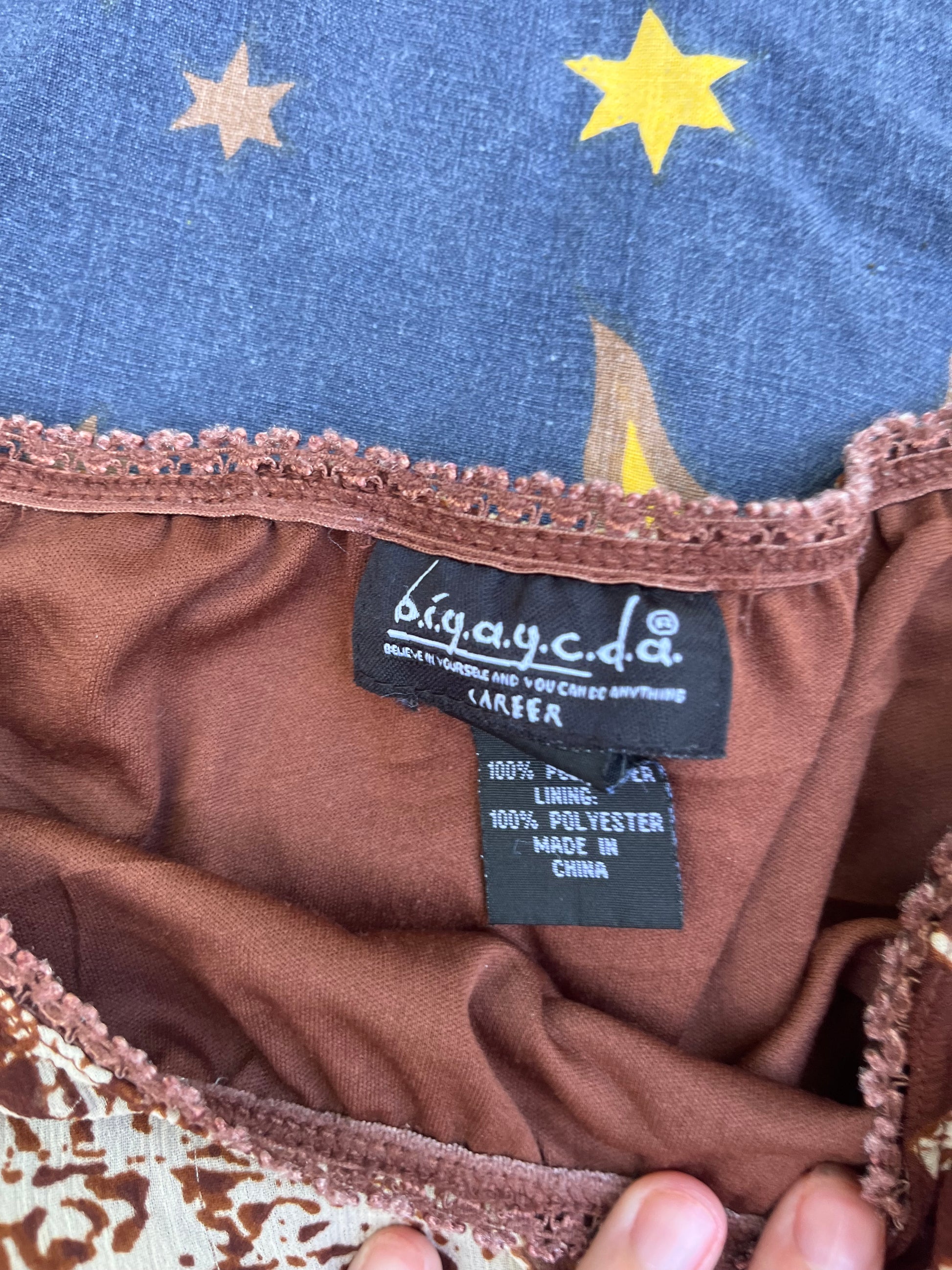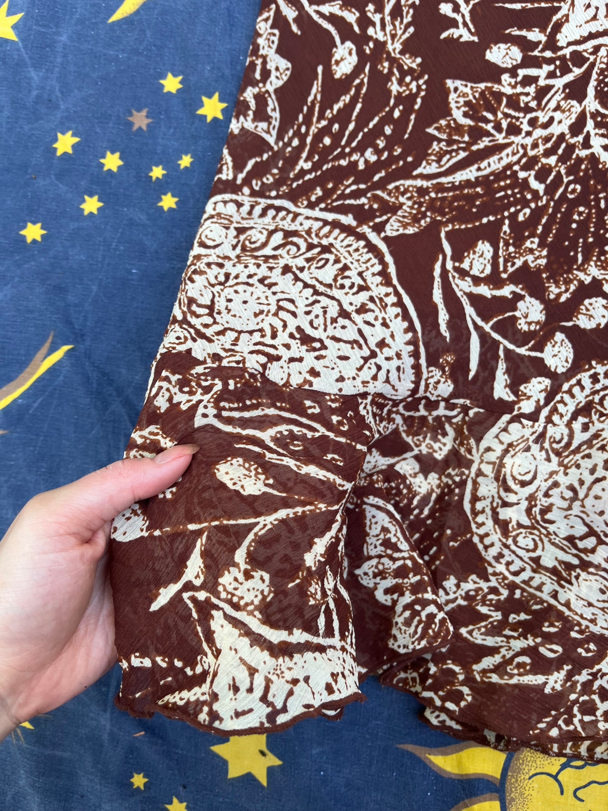 Amazing 2000s brown and cream floral pattern mesh skirt! In perfect vintage condition and would best fit UK 8-14 as the waist can stretch.