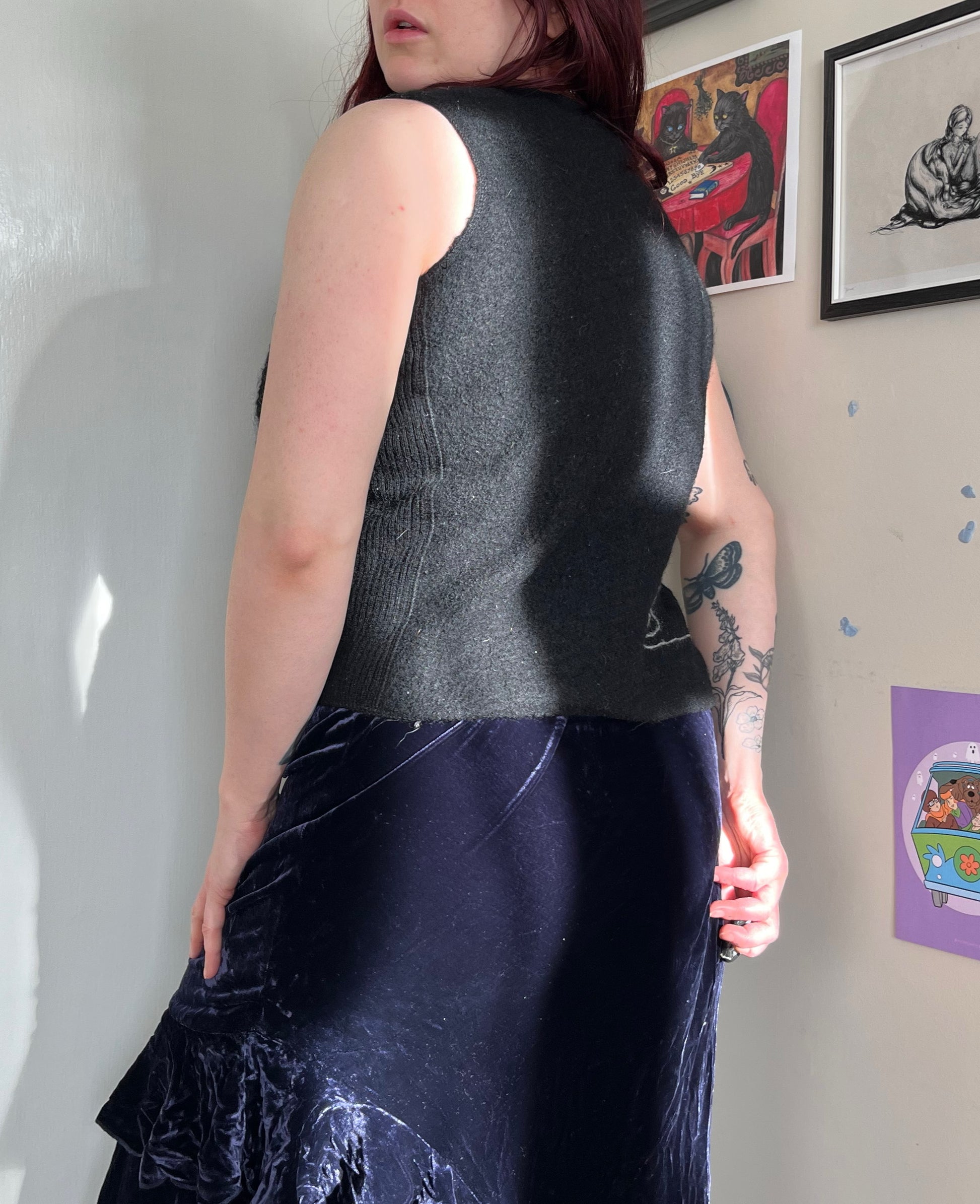 Amazing 1990s zip up front embroidered cat swearer vest! Such a cute piece!