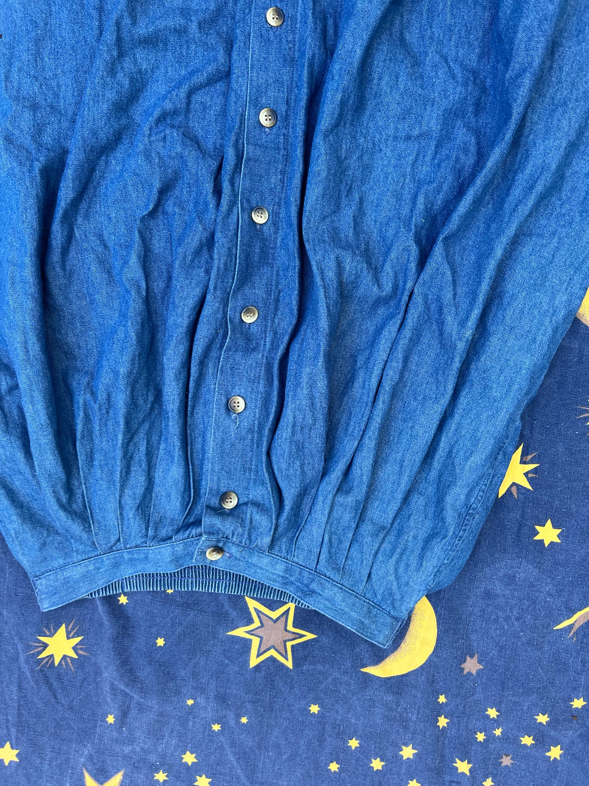 90s denim maxi skirt by Charter Club! Button up front, stretchy waist and pockets on either side. In perfect vintage condition and would best fit UK 10-14 as the waist can stretch.