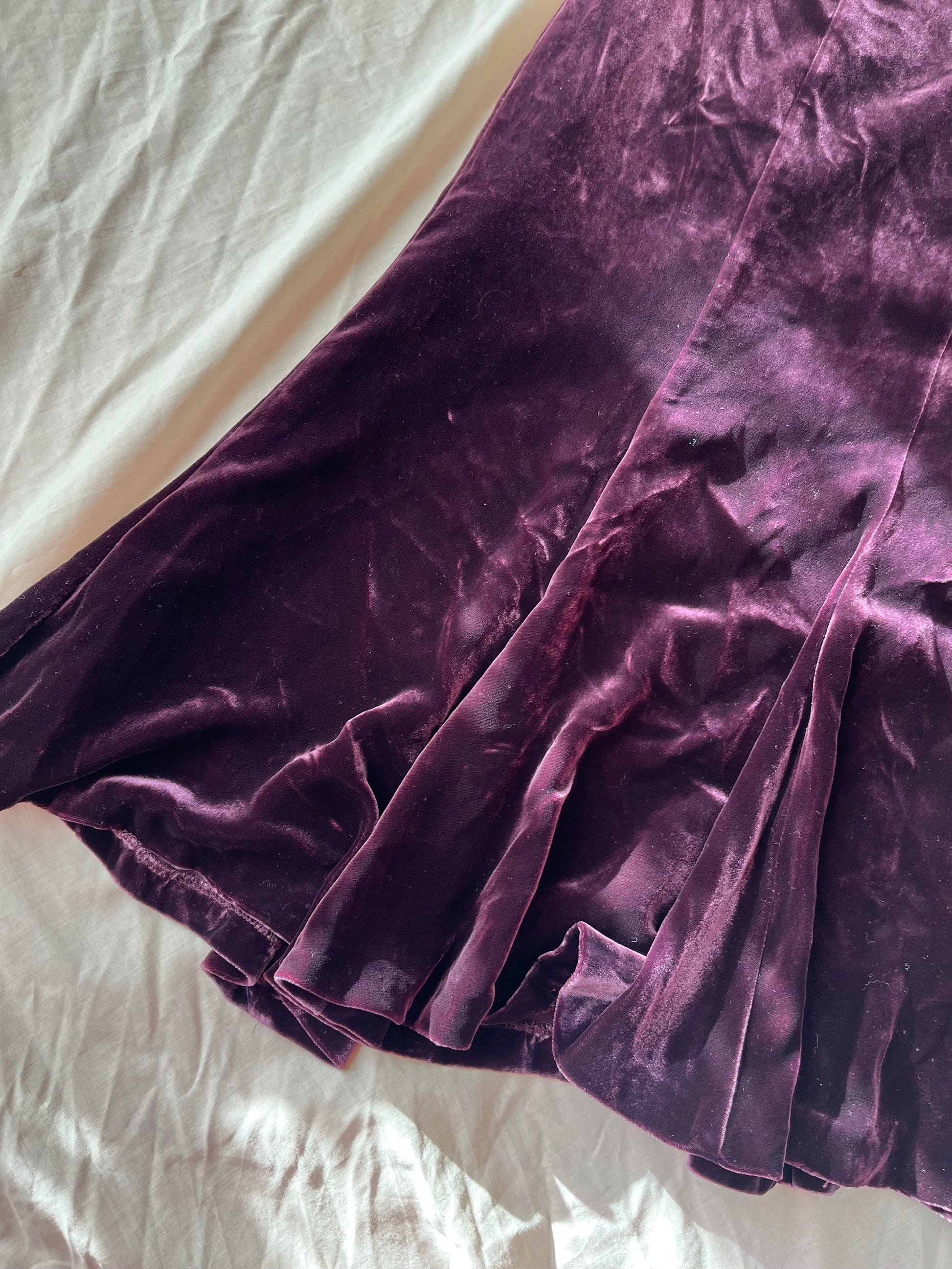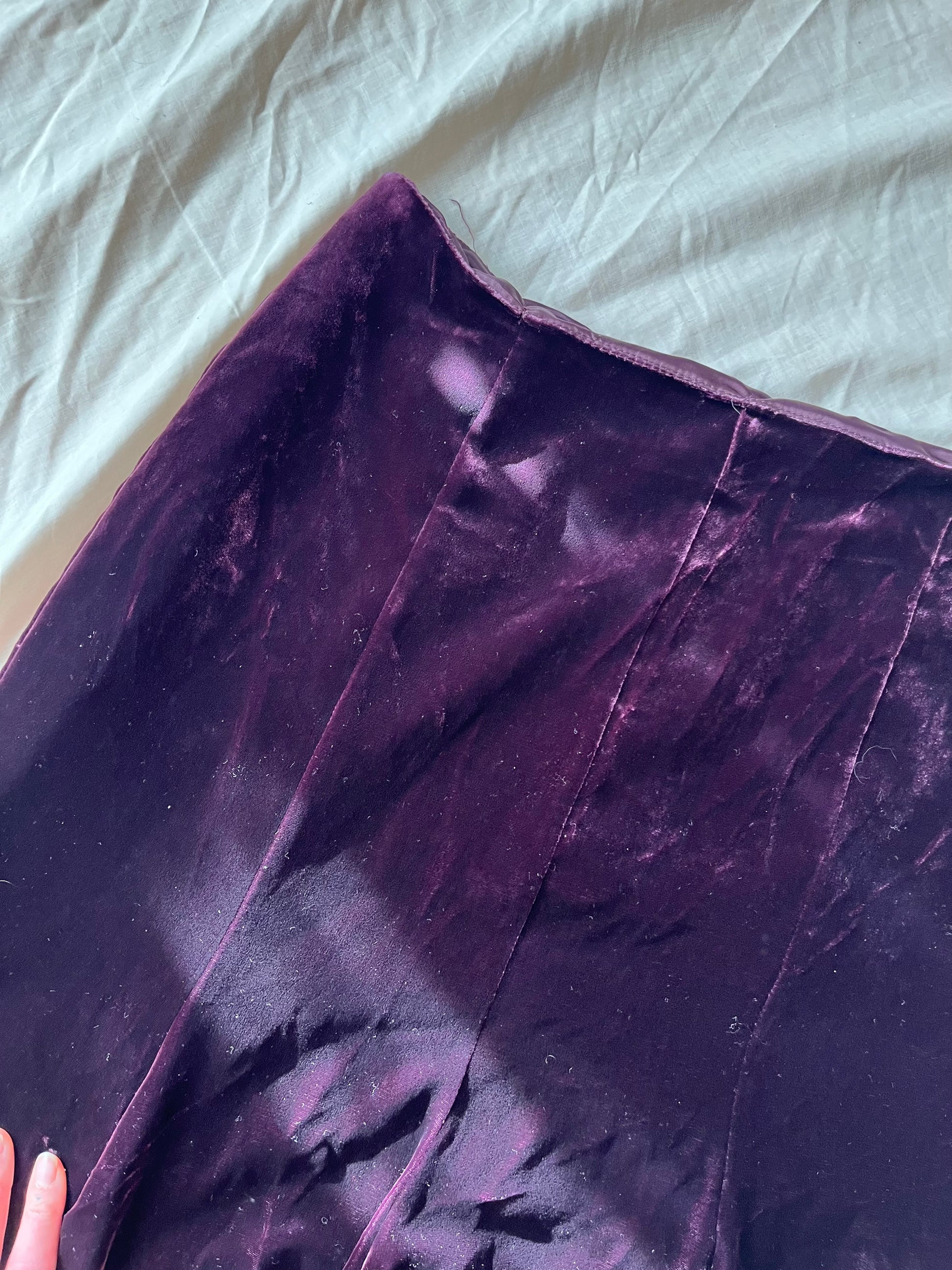 Gorgeous 1990s purple velvet midi skirt! Zip on the back with a midi length fit.