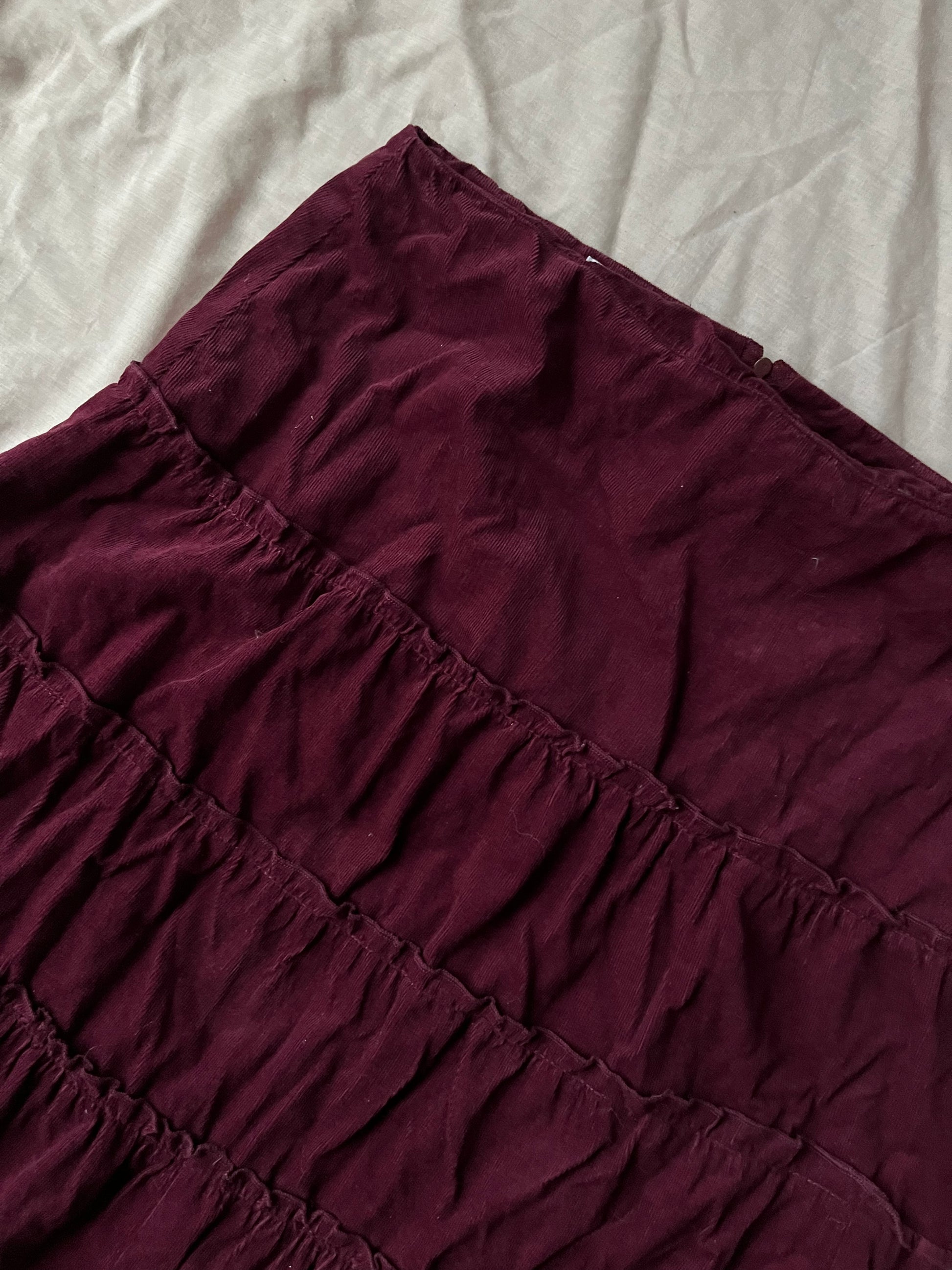 Amazing 2000s dark pink/burgundy tiered corduroy skirt! Big fairycore vibes!