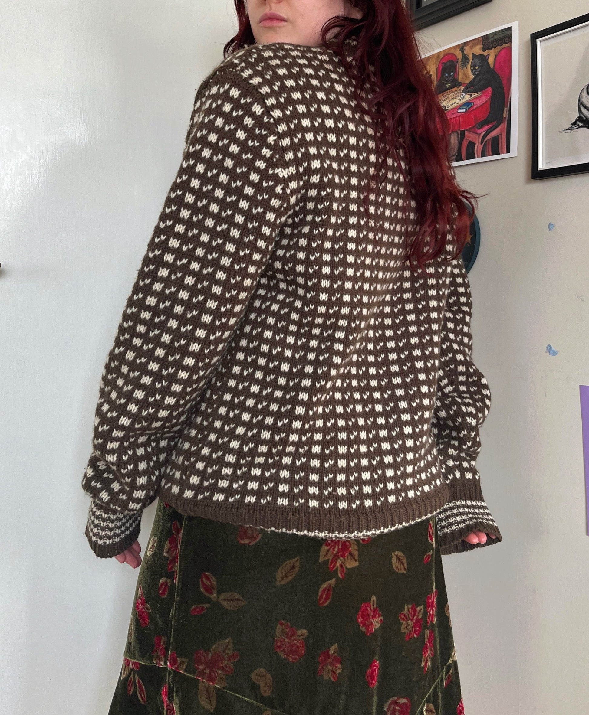 1990s brown and white jumper! Could be worn oversized or more figure hugging. Made from wool.