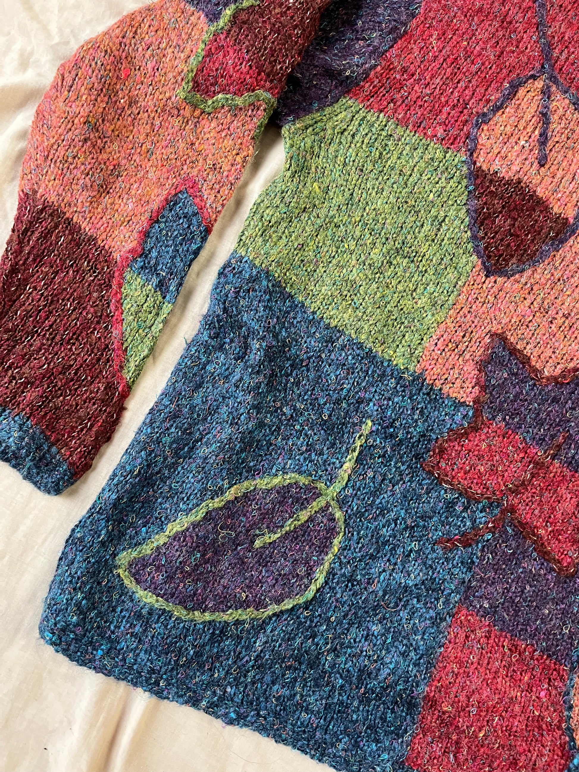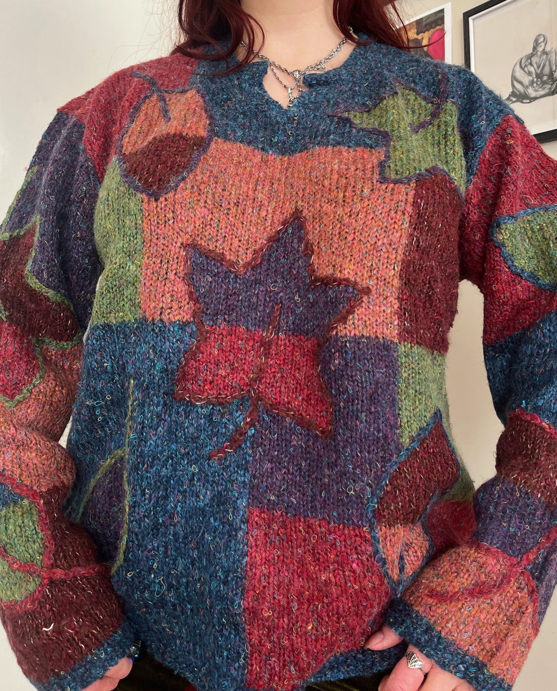 The most amazing 1990s patchwork leaf design embroidered jumper! Super Autumnal and whimsical. Perfect for autumnal walks in the forest, going foraging or just sitting on the couch and watching Gilmore Girls.