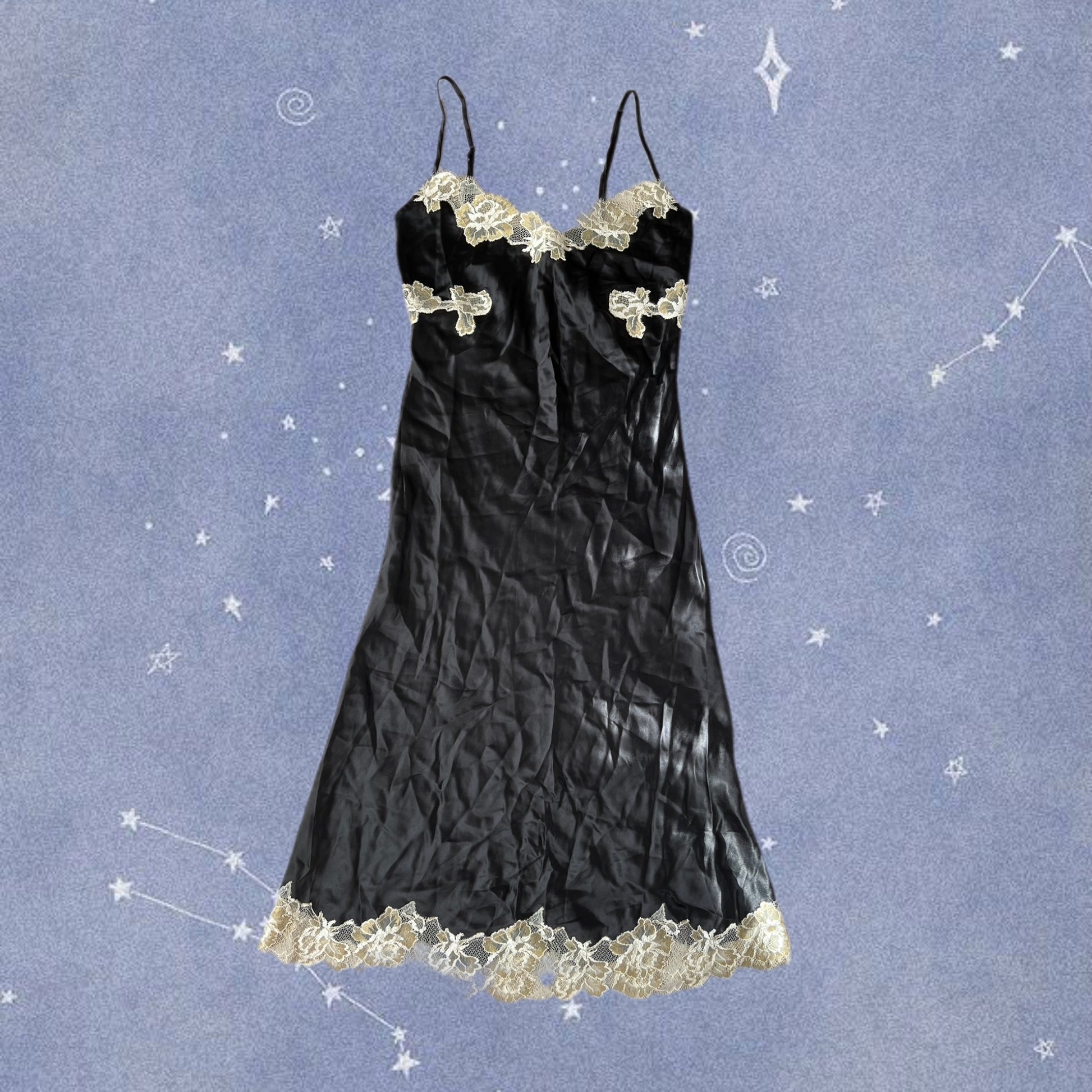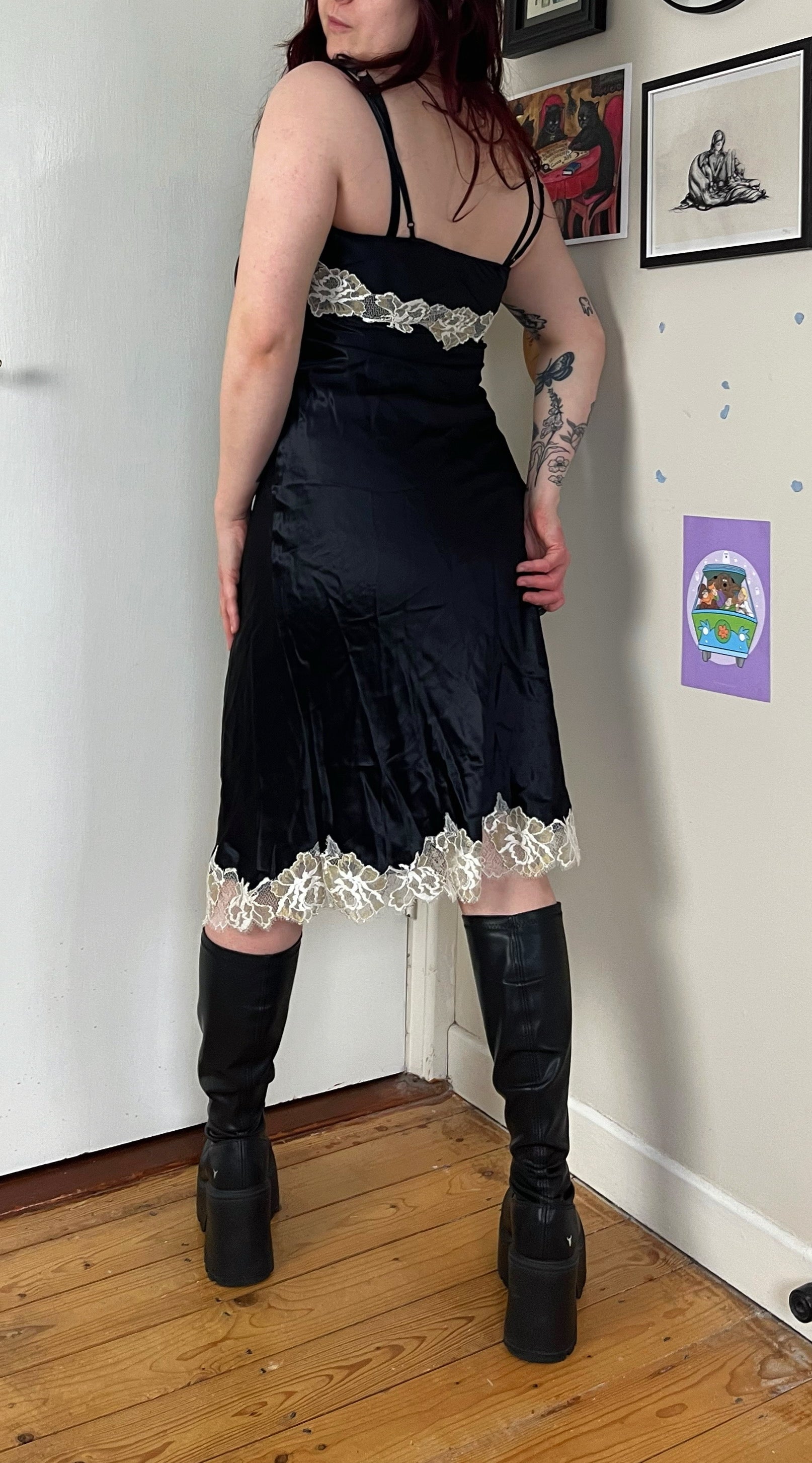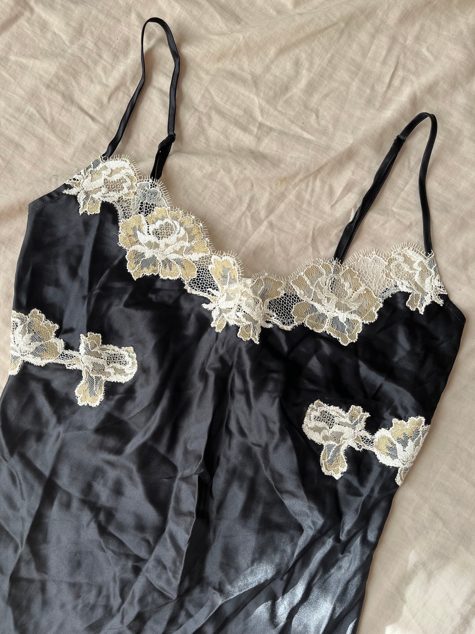 1990s/2000s black and white slip dress! Flattering fit and made from silk.