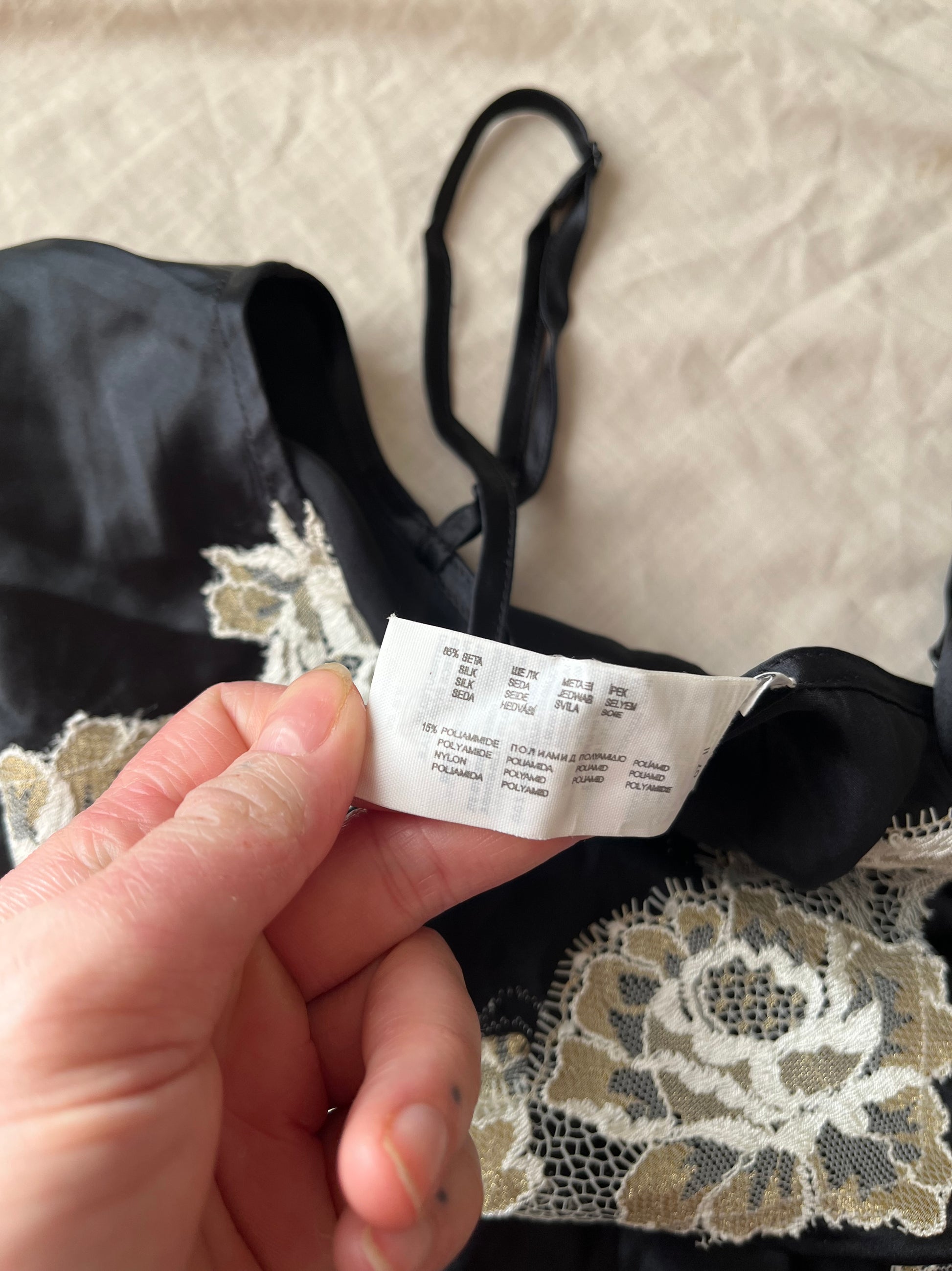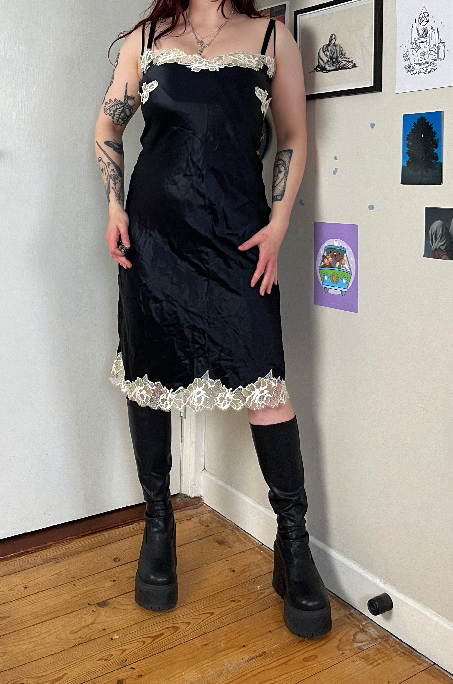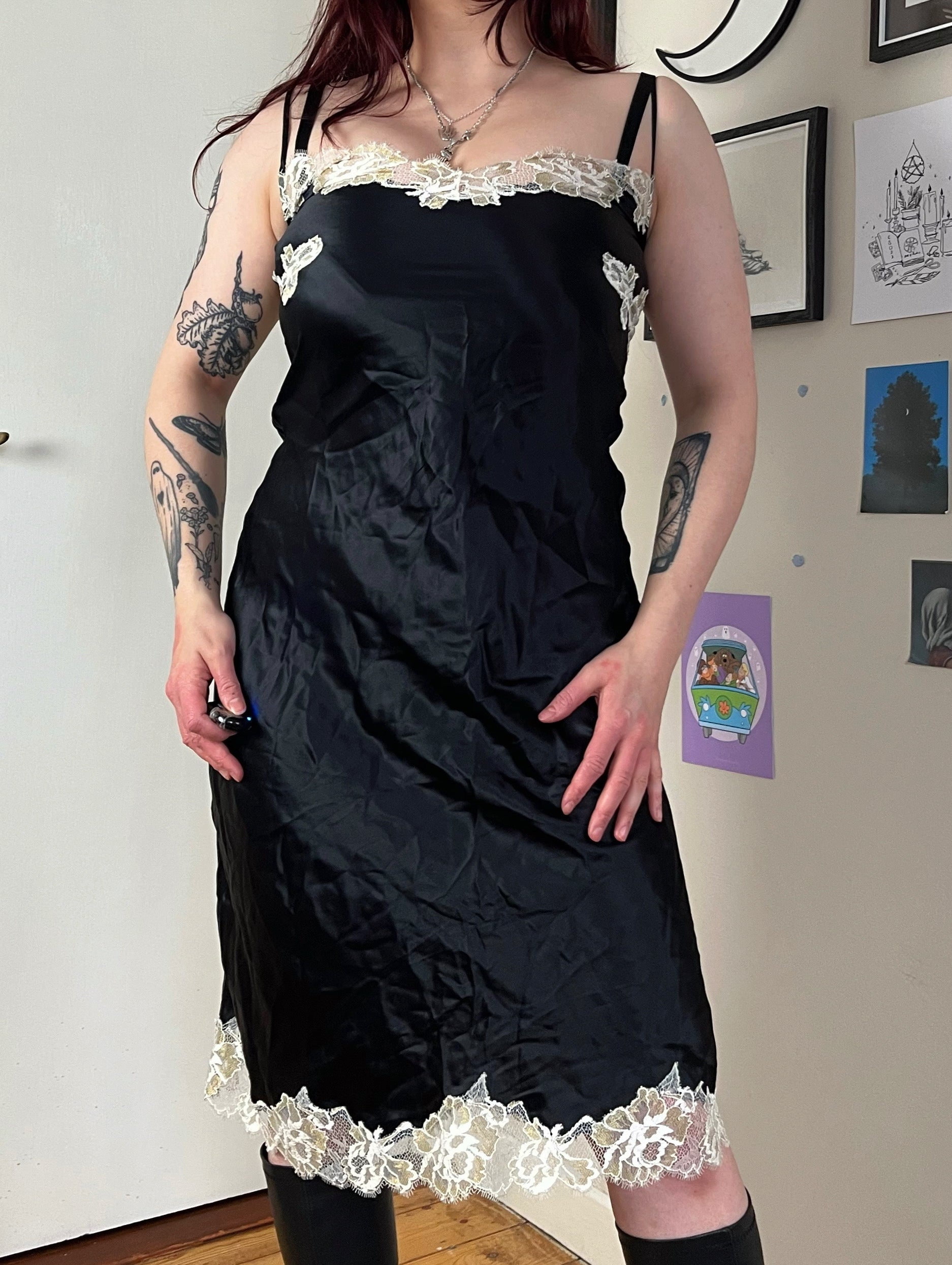 1990s/2000s black and white slip dress! Flattering fit and made from silk.