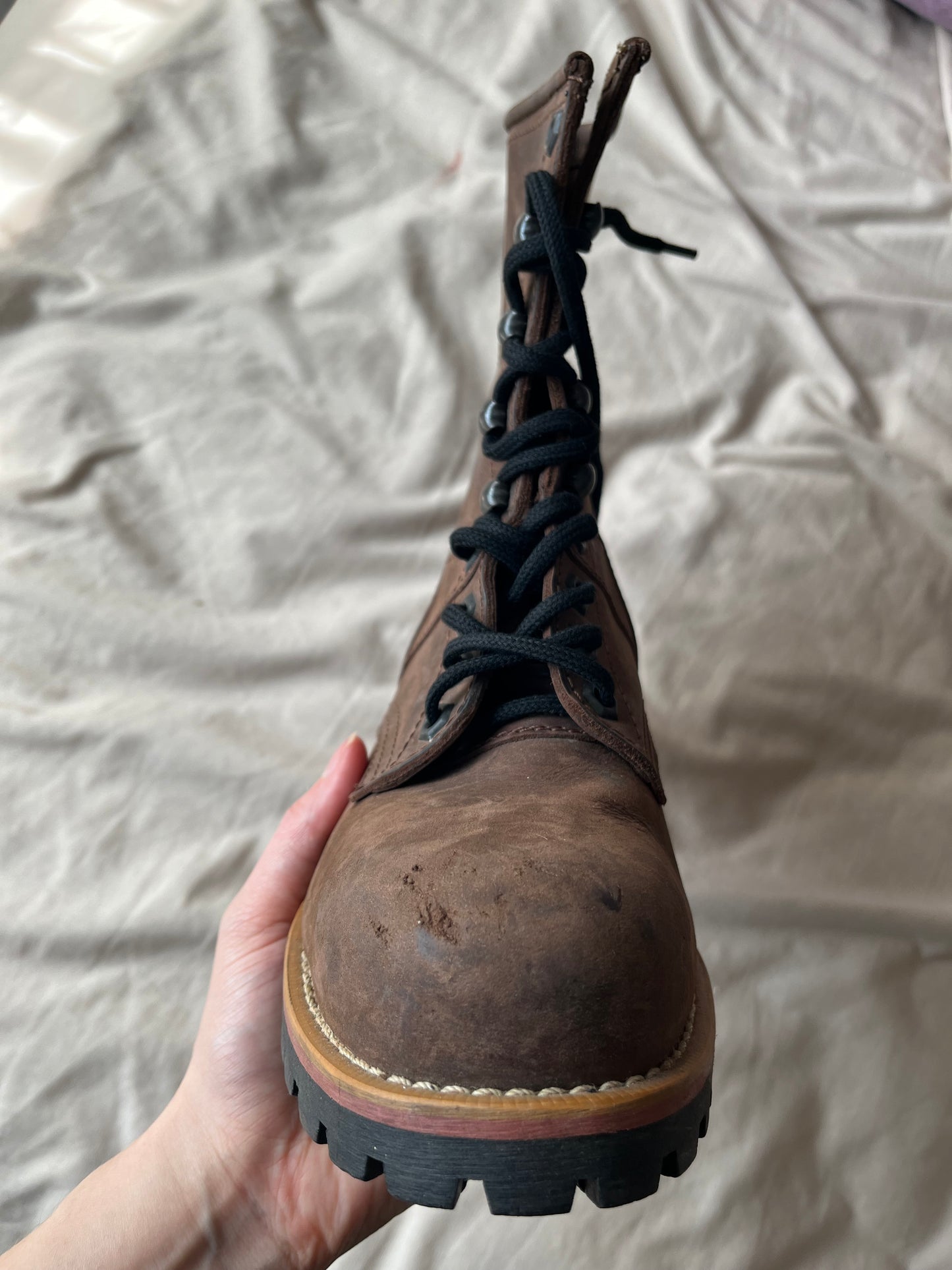 Amazing 90s brown worker/combat boots by Black Red! Gorgeous shape with a lace up front and little heel. In great vintage condition, some slight scuffing on the toes but no major wear or tear. Labelled a UK 5. Fits UK 5/ US 7/ EU 38. Made from leather.
