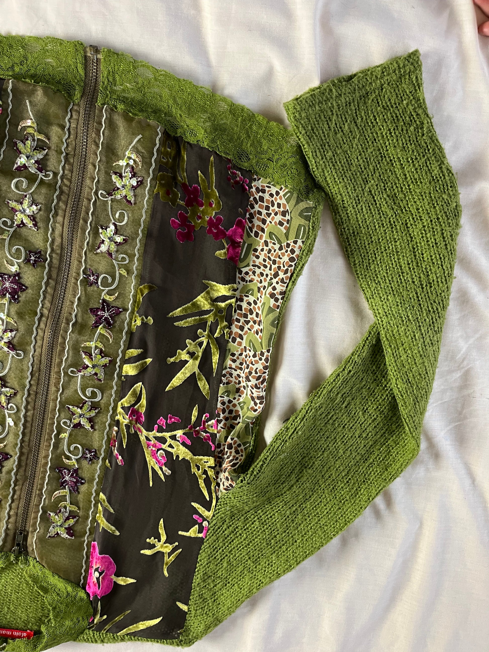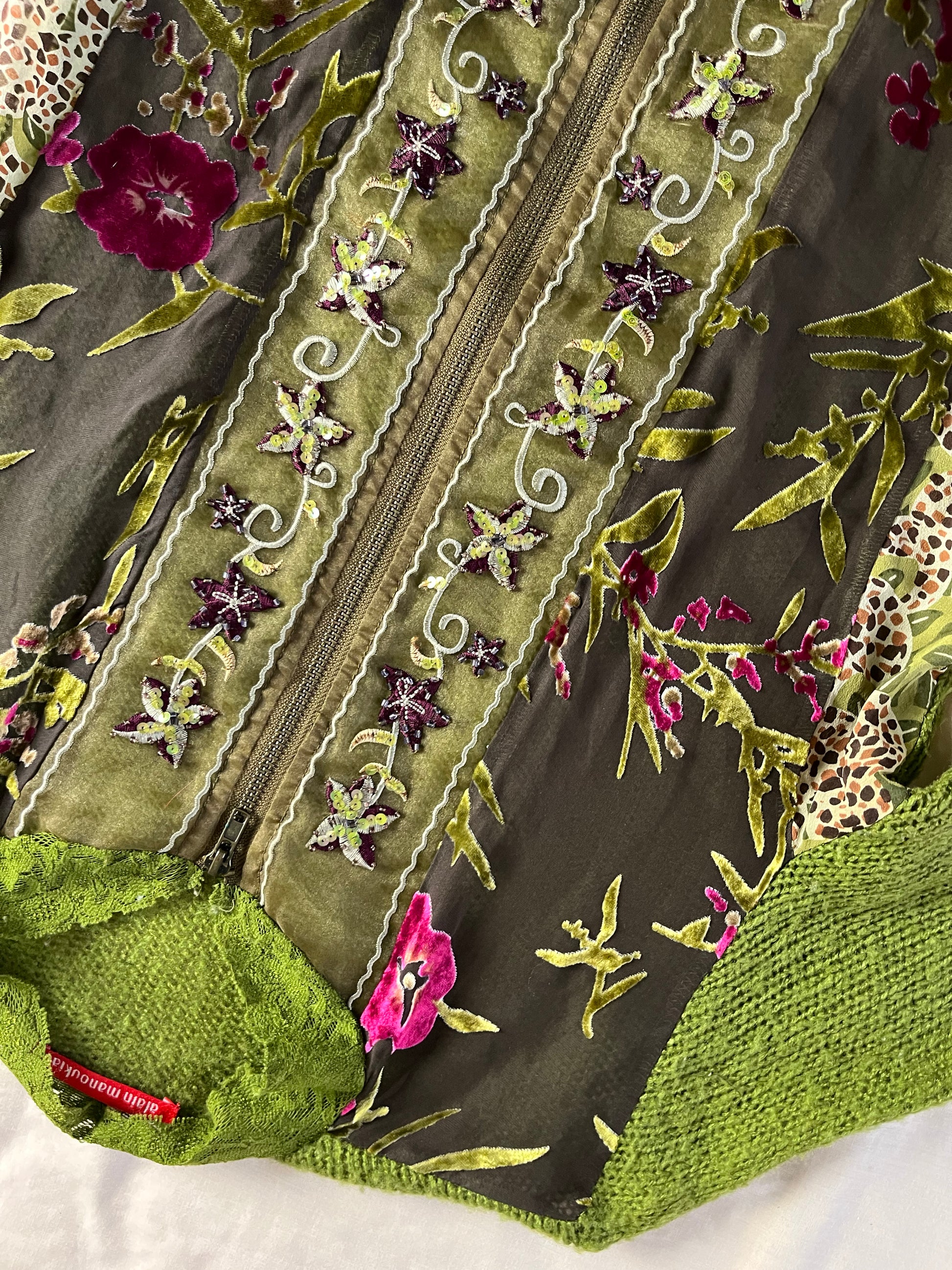 2000s zip up front cardigan! Cool mesh design on the front and soft flowy sleeves. Big fairy vibes with this!