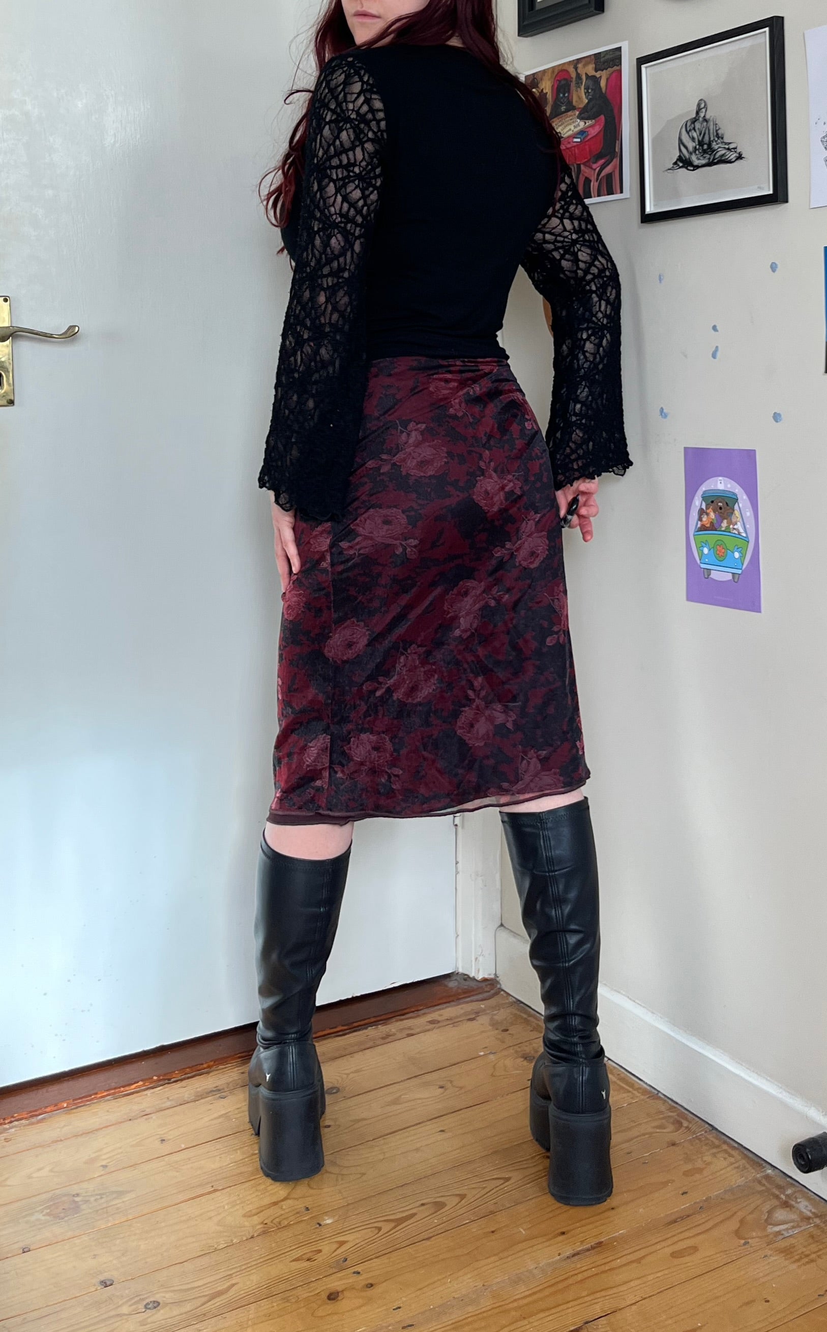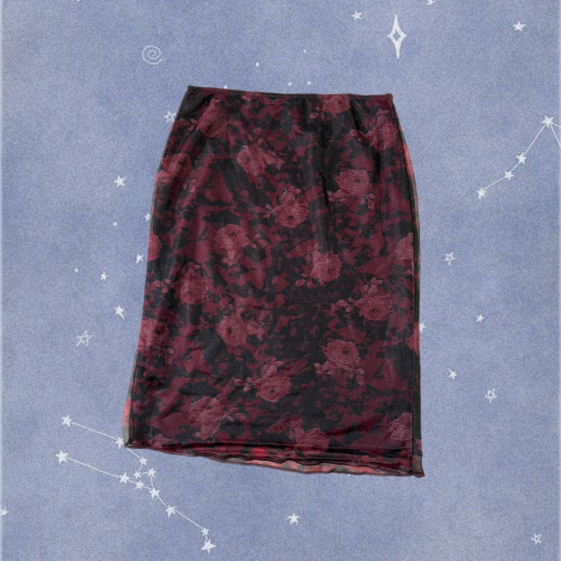 Gorgeous 2000s floral mesh skirt! Midi length with a stretchy waist.