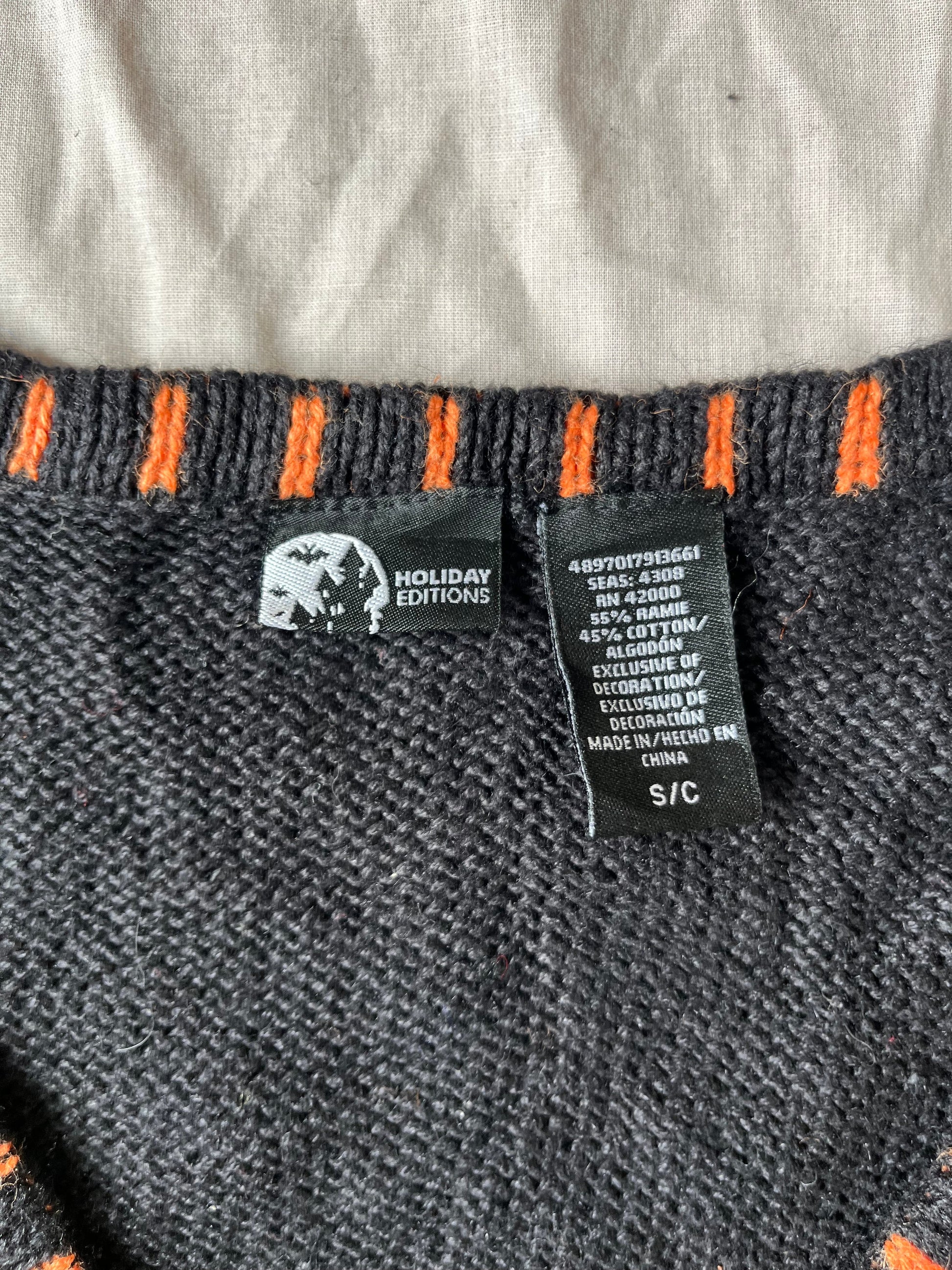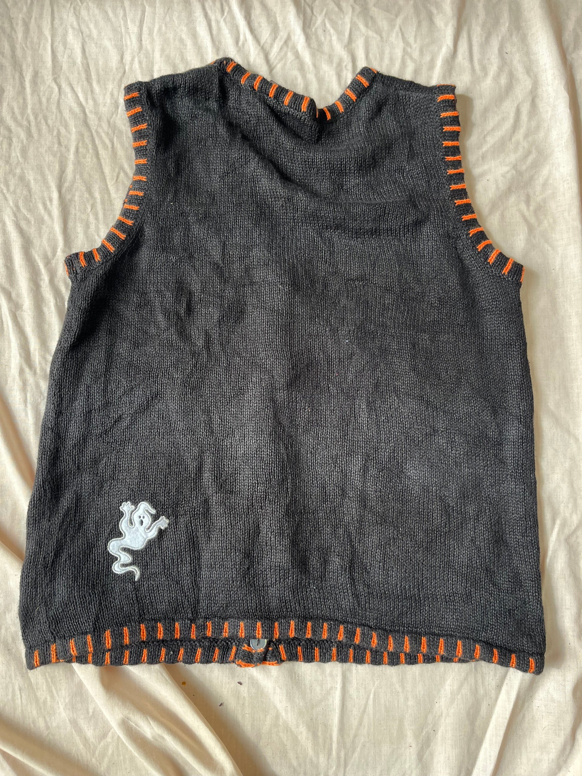 1990s Halloween button up front sweater vest! Has a design of pumpkins, tombstones, witches, ghosts and more. Labelled S but fits like M.
