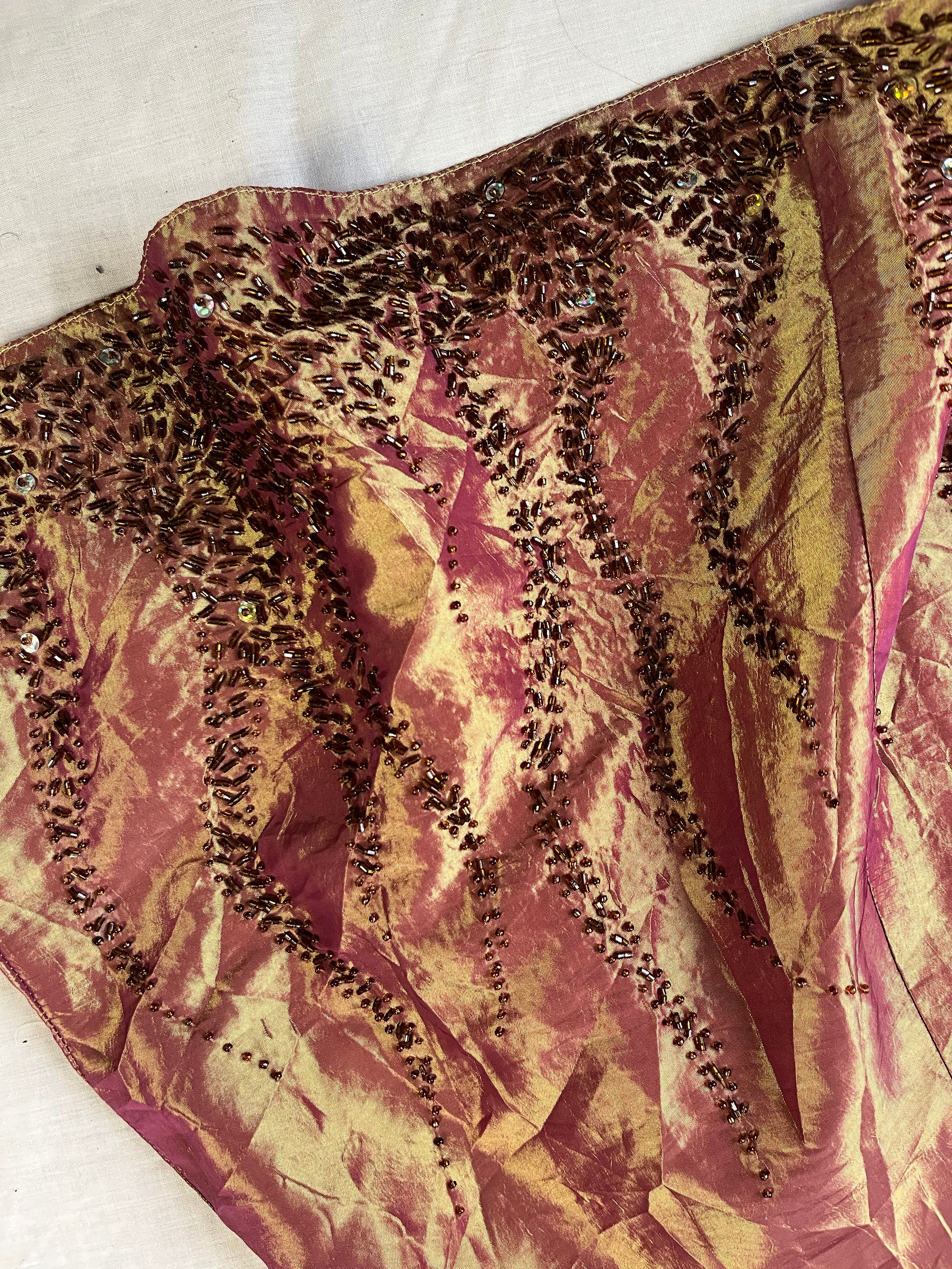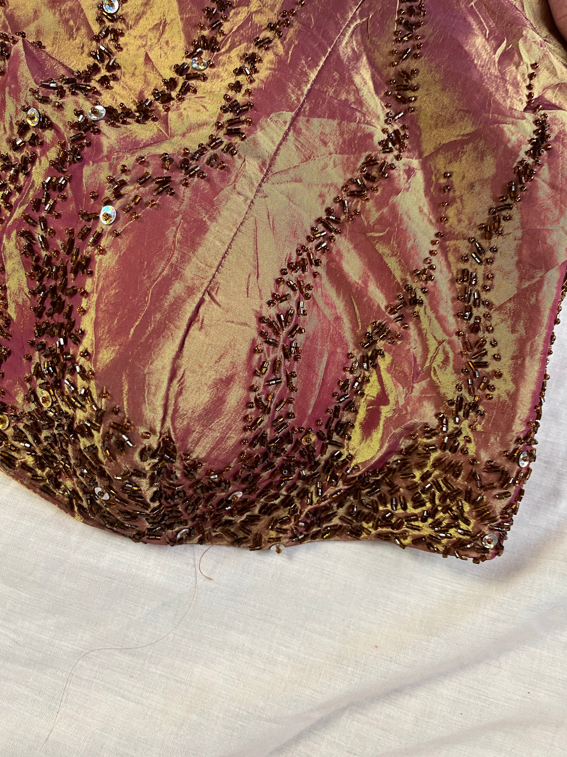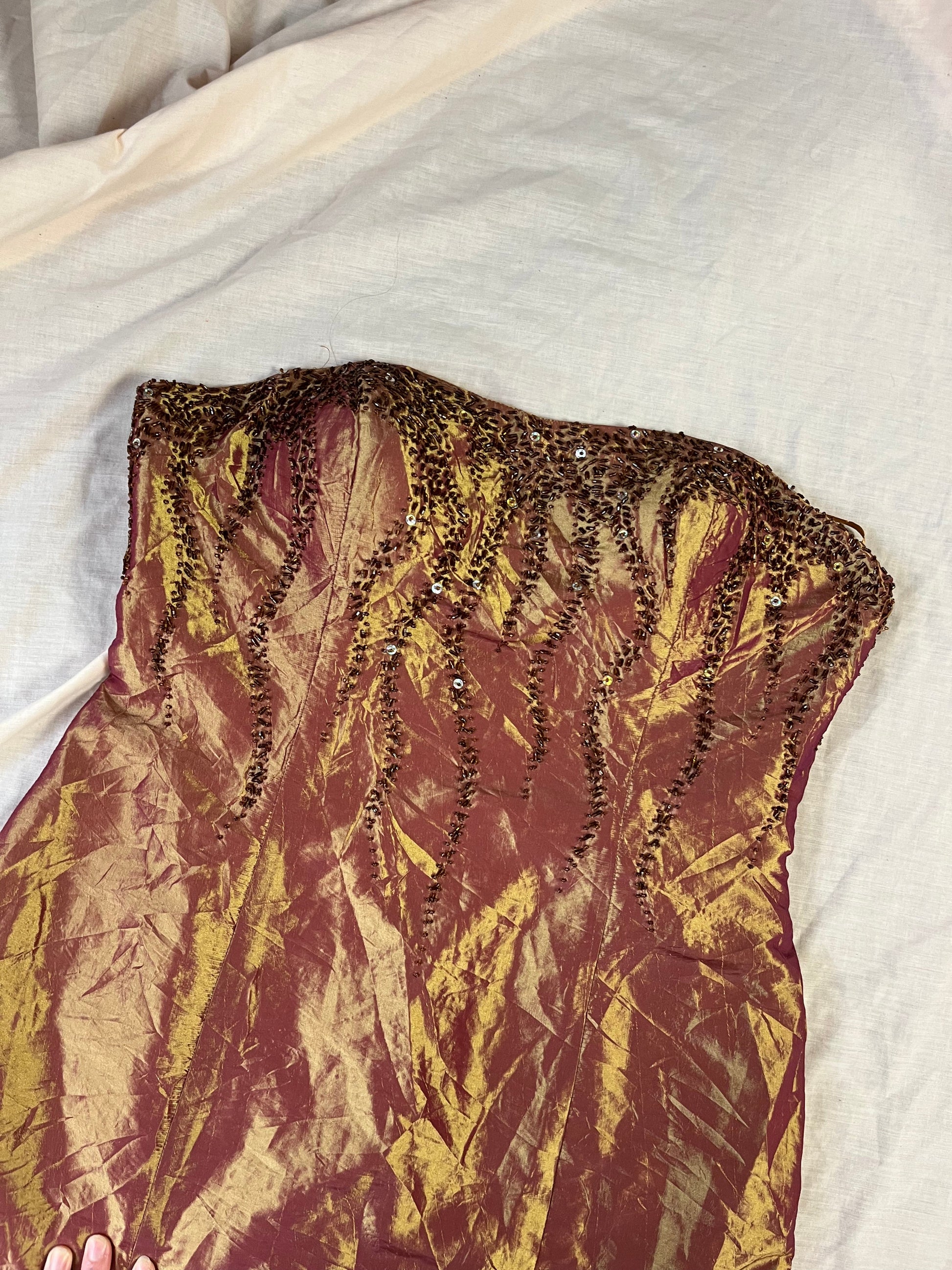 1990s gold sleeveless evening dress! This has a zip on the back and stunning beaded details all over.