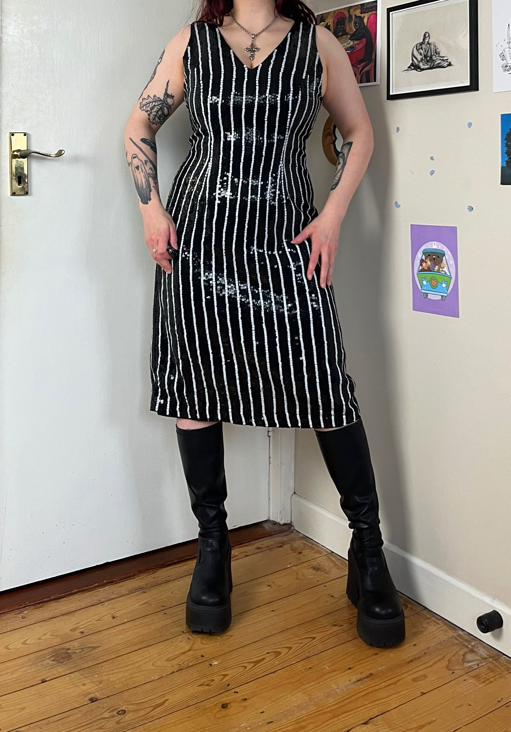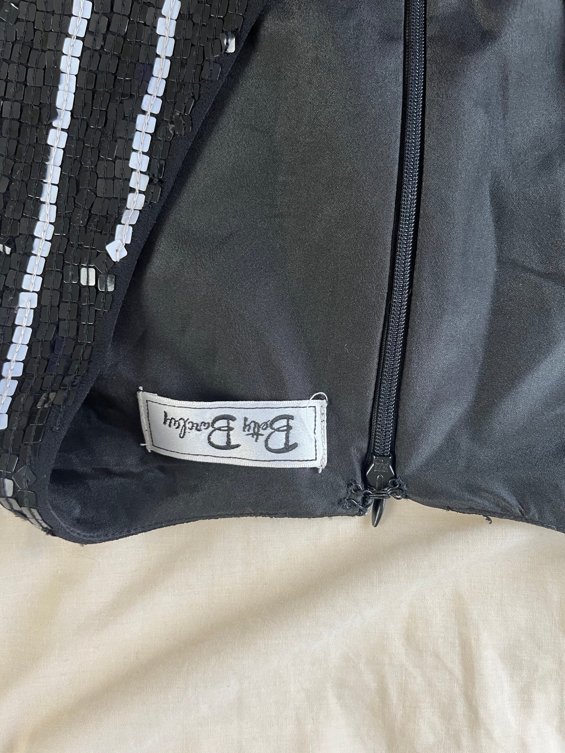 Amazing 1980s sequined dress by Betty Barclay! Zips up at the back and has a body hugging midi length shape. In perfect vintage condition and would best fit UK 12.