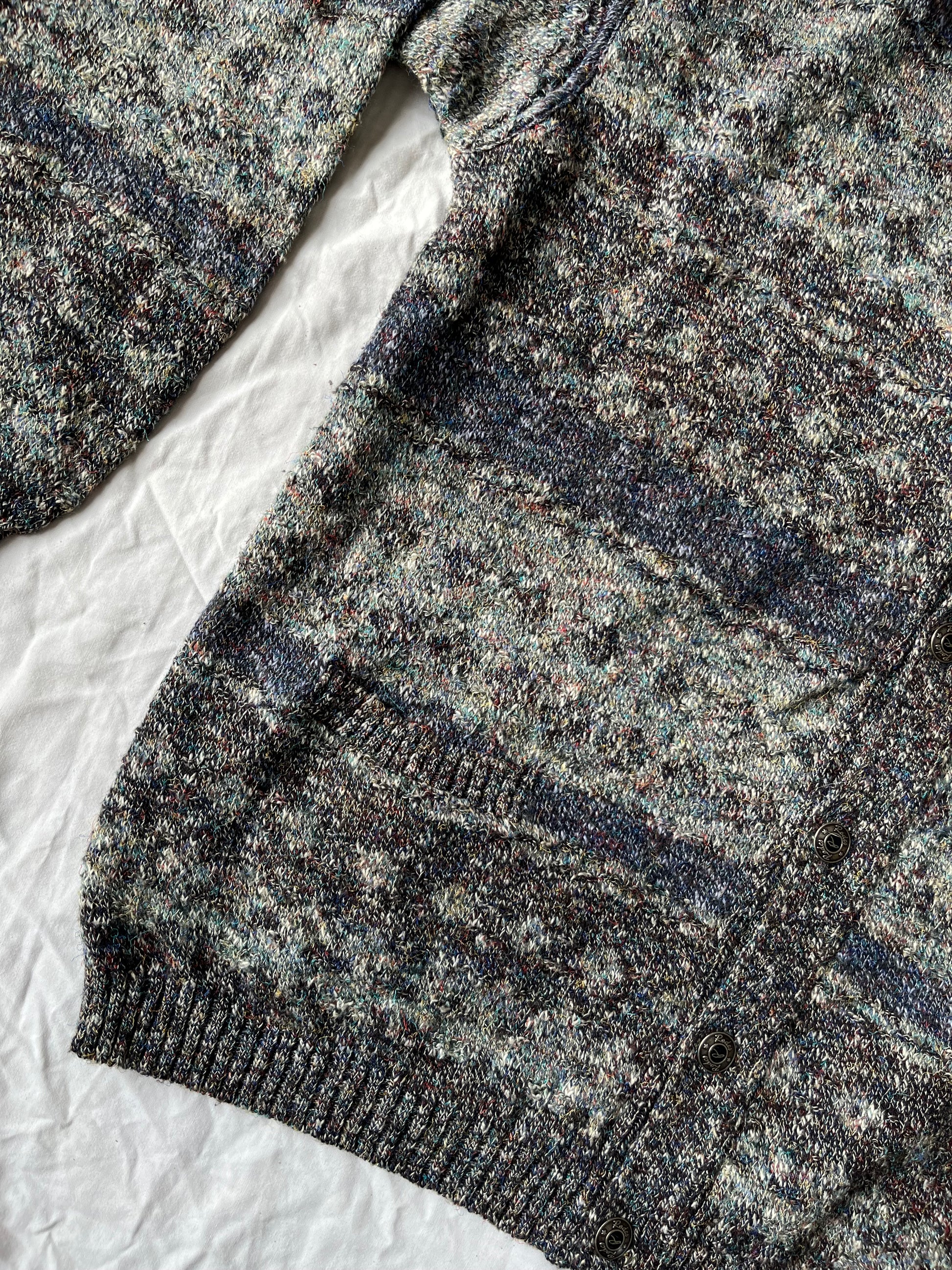 1990s molted pattern green and blue cardigan! This has a button up front with a gorgeous fit.