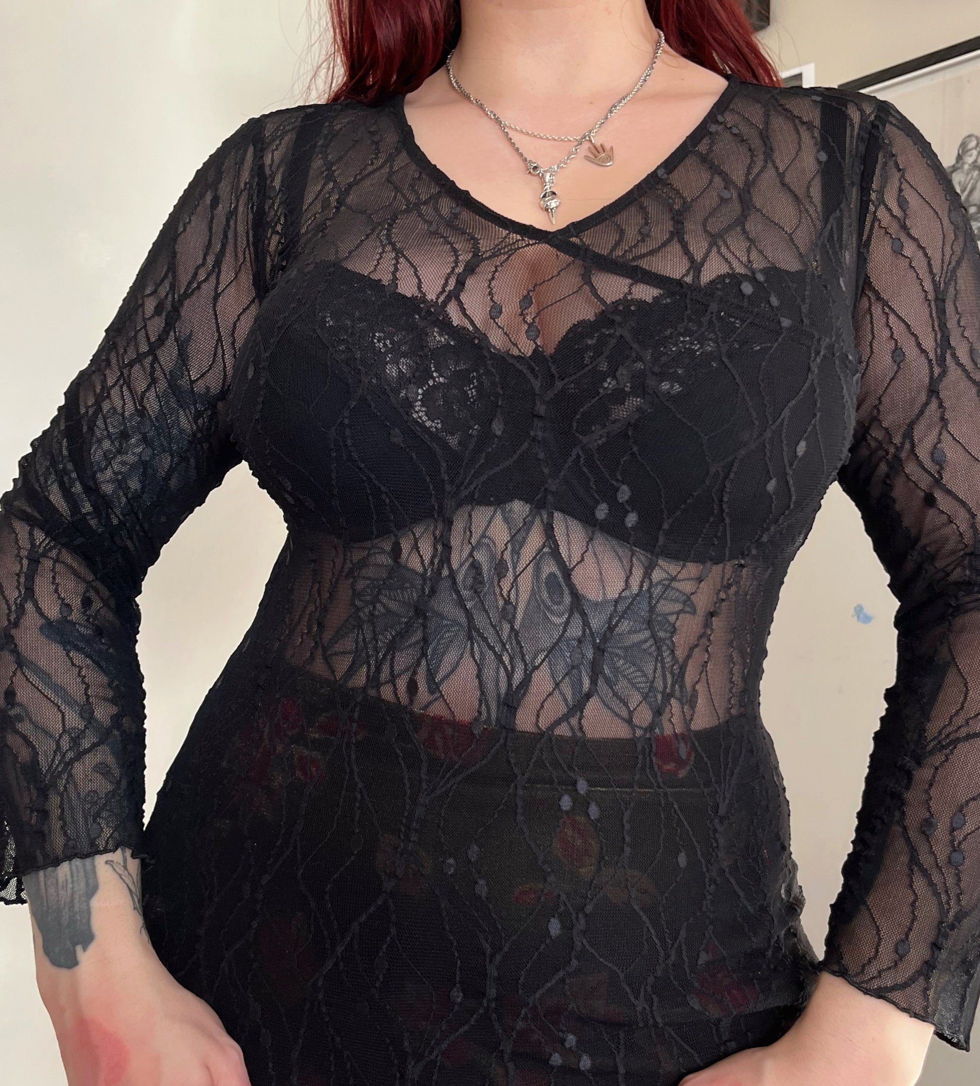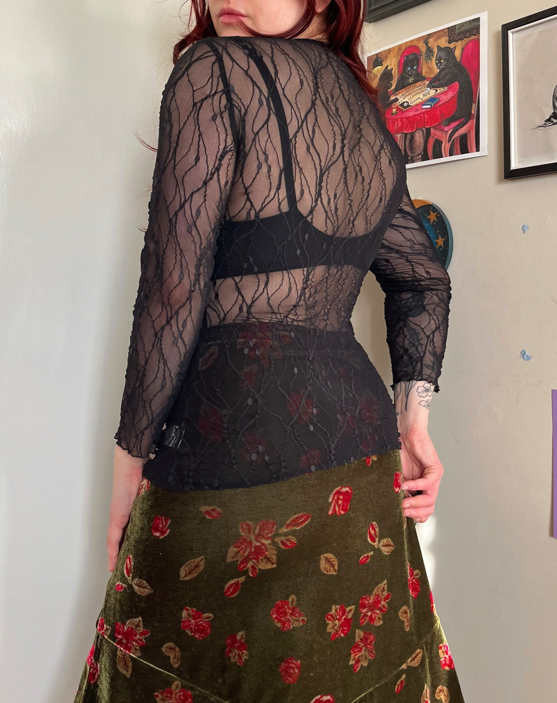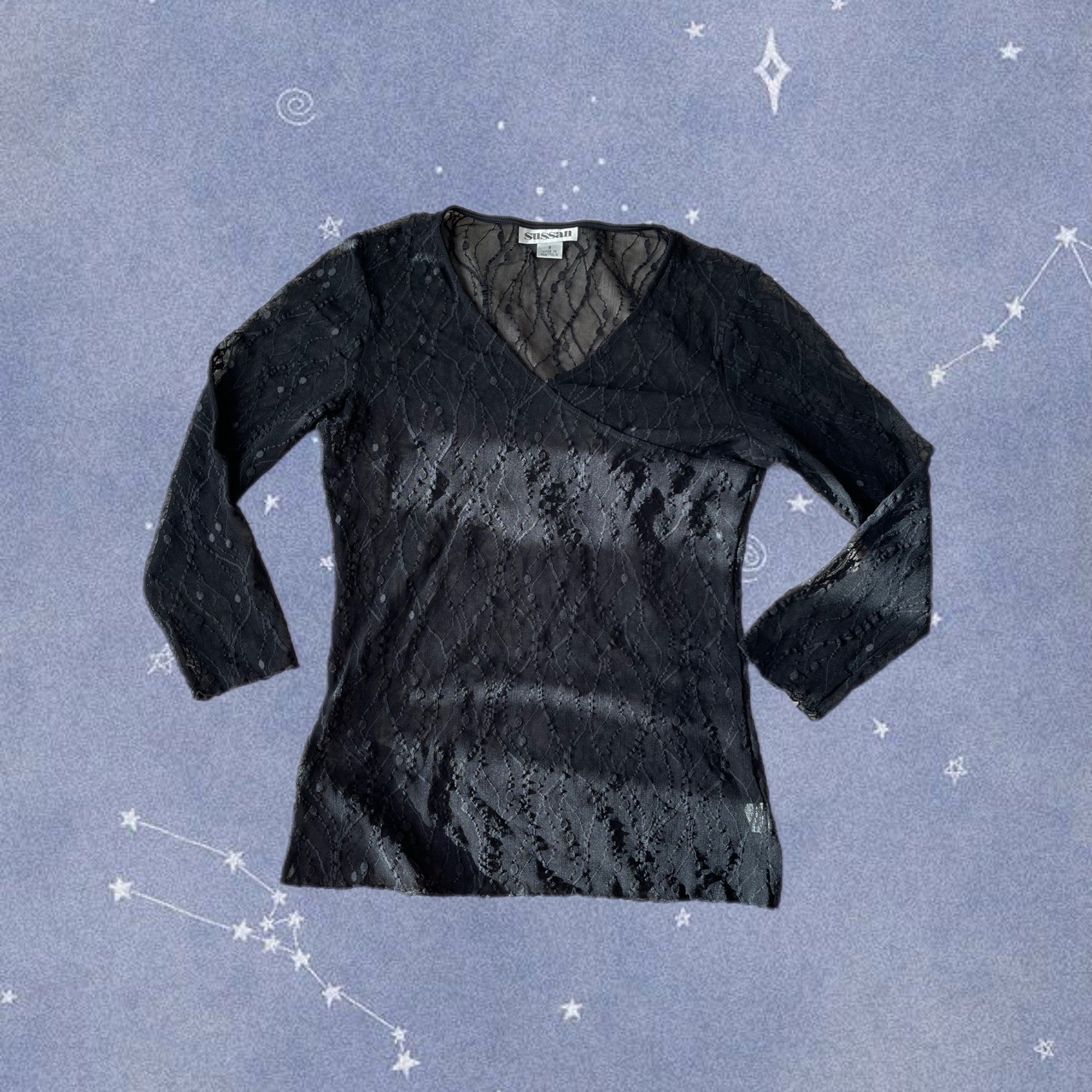 Gorgeous 2000s black lacey top! Has some stretch to it and a flattering fit.