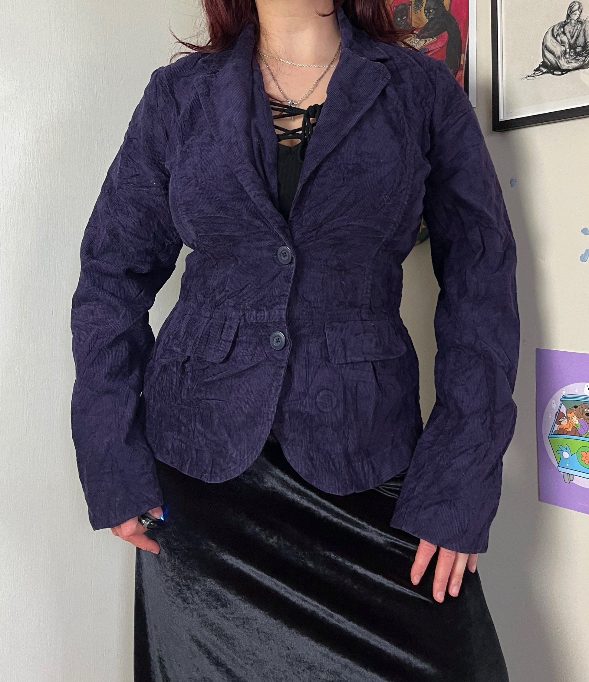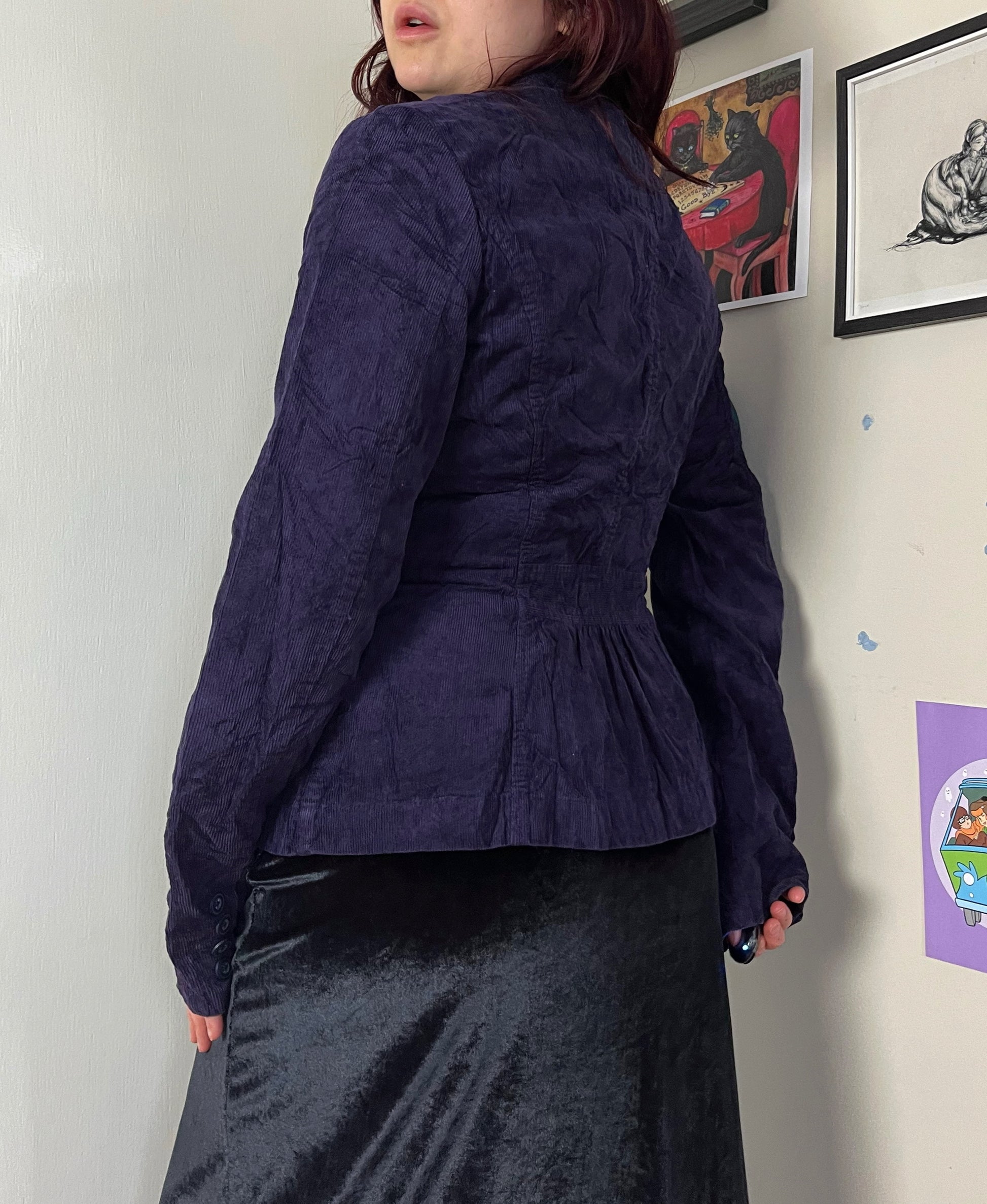 Fab 2000s purple corduroy coat! Buttons up the front with a flattering fit.