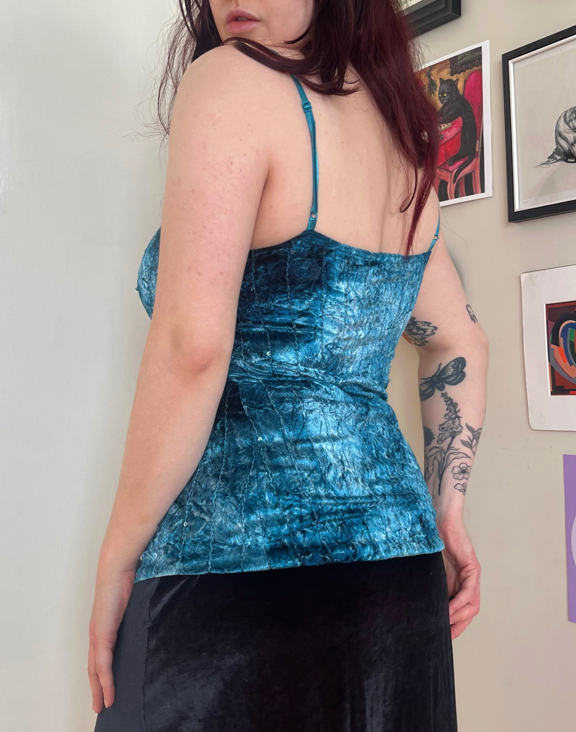 2000s blue velvet cami top by Dreams! Stretchy fit with a super soft velvet.