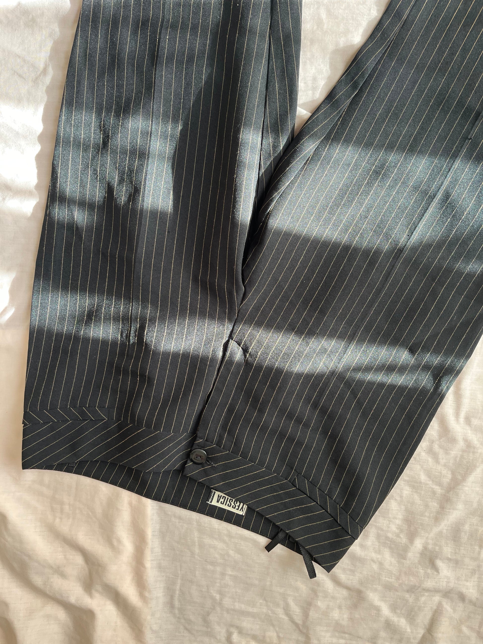 2000s black pinstripe pants! High waisted with a wide style leg.