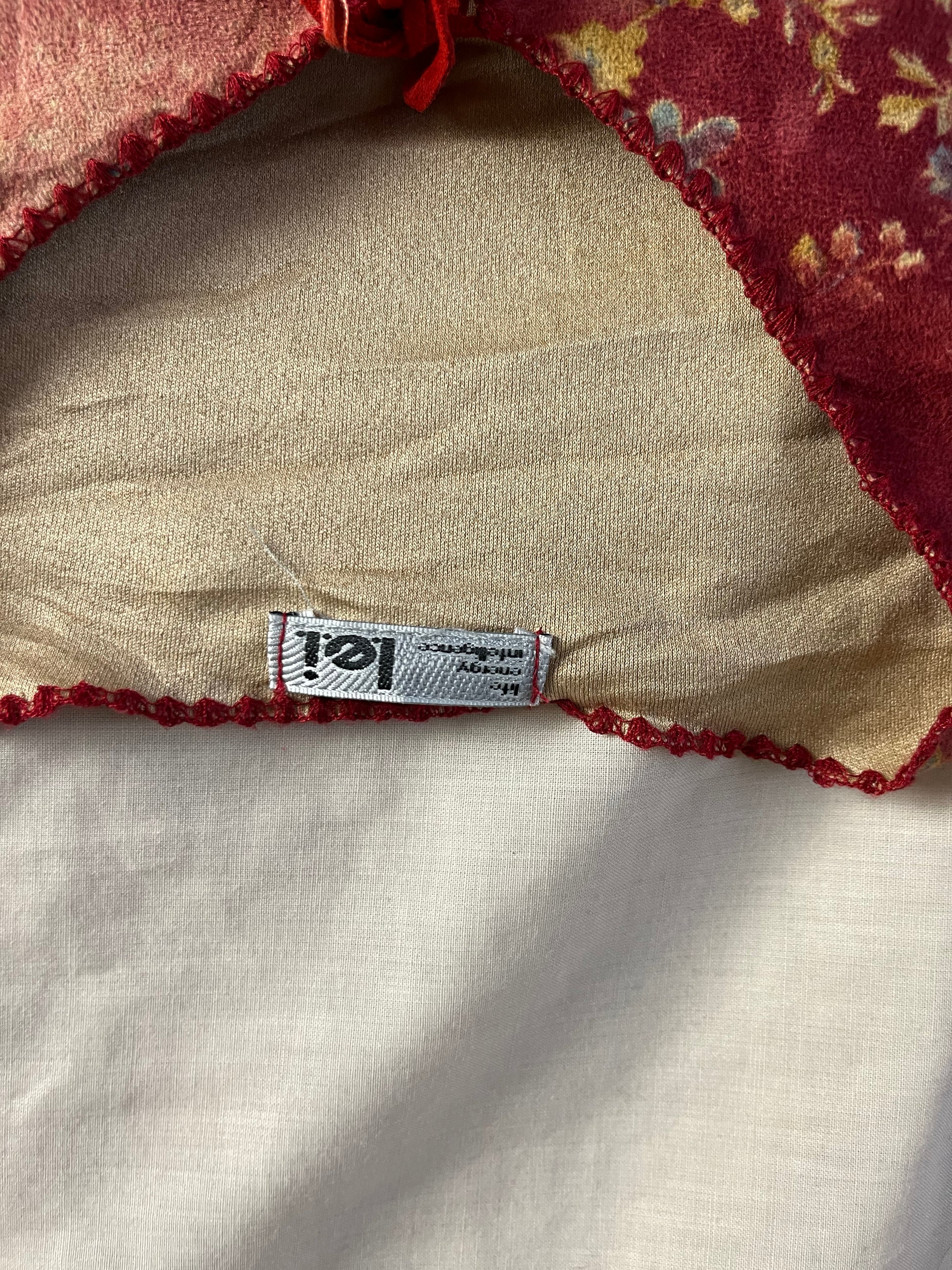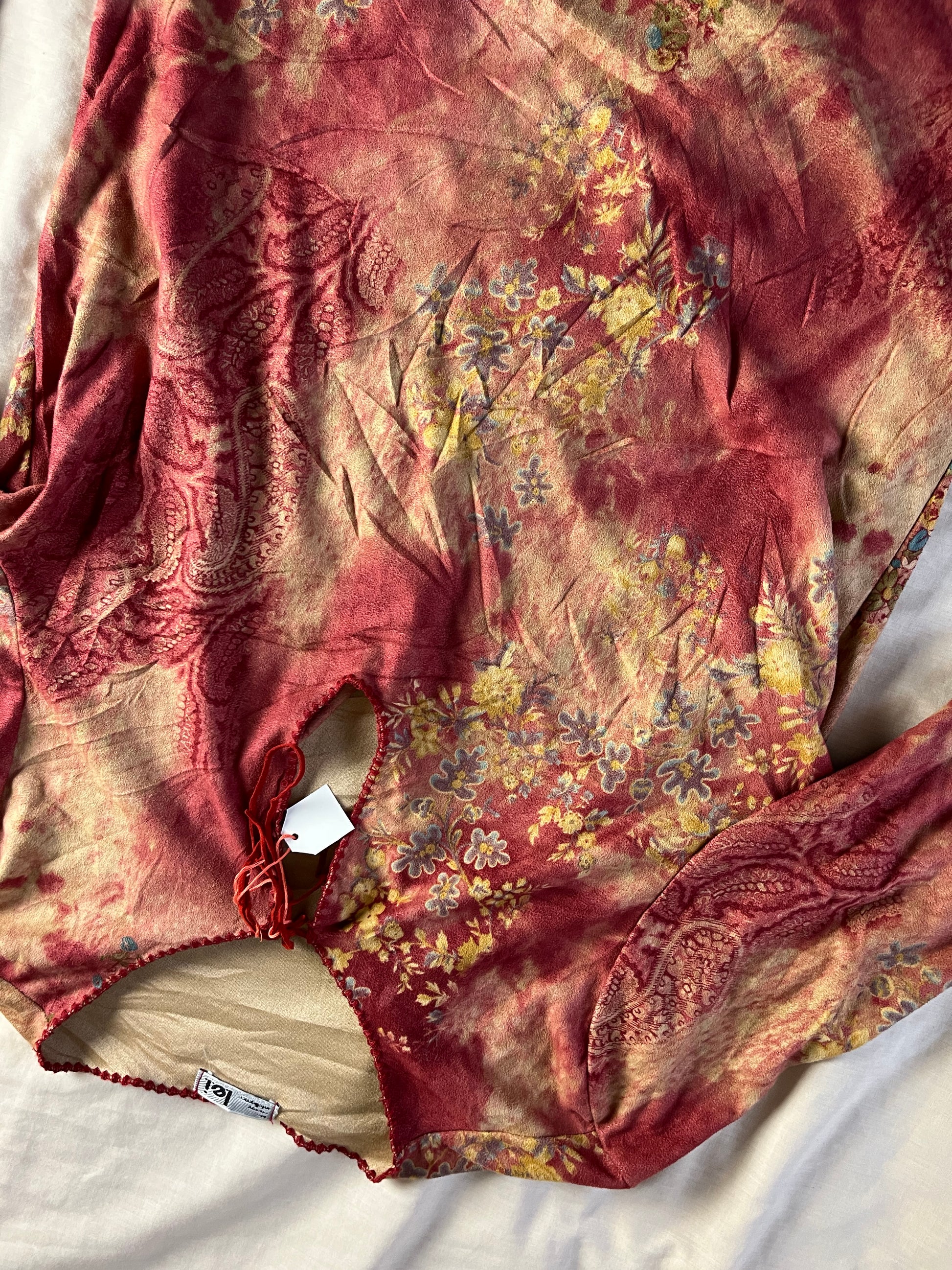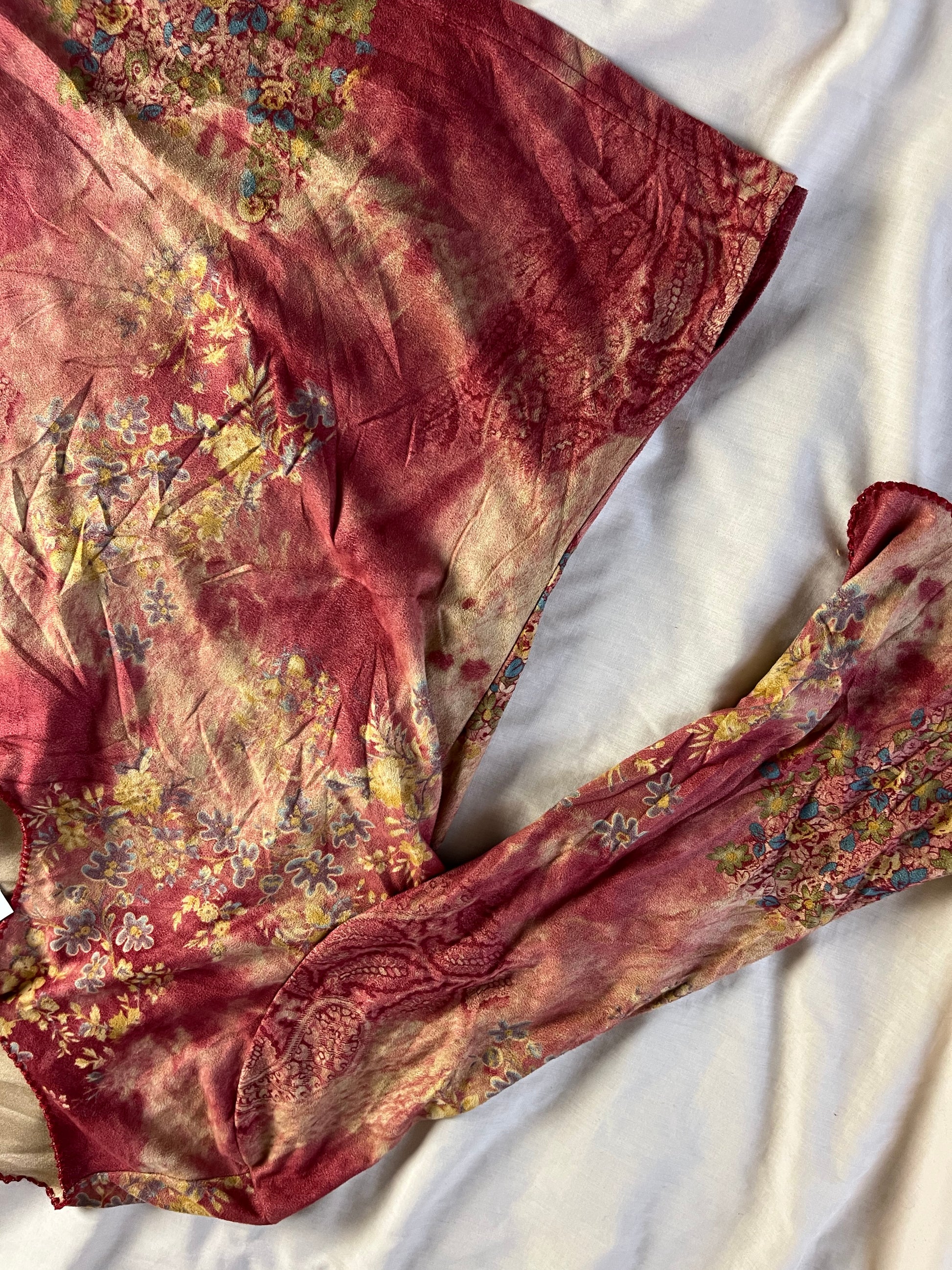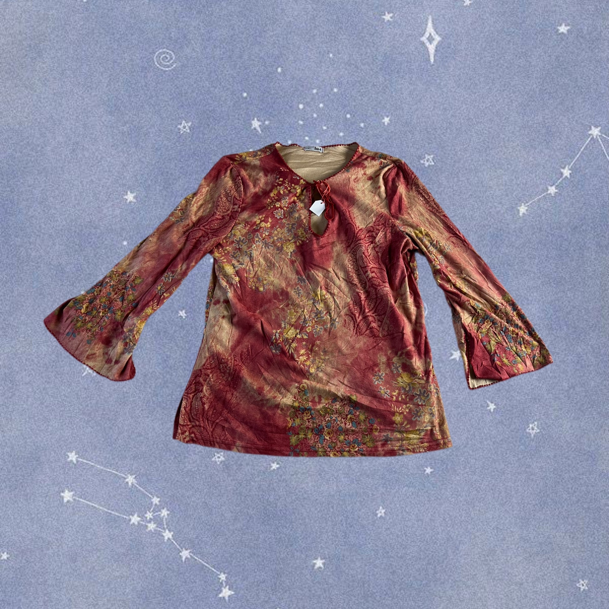2000s pink floral design top! Slightly flared sleeves with a keyhole neckline.