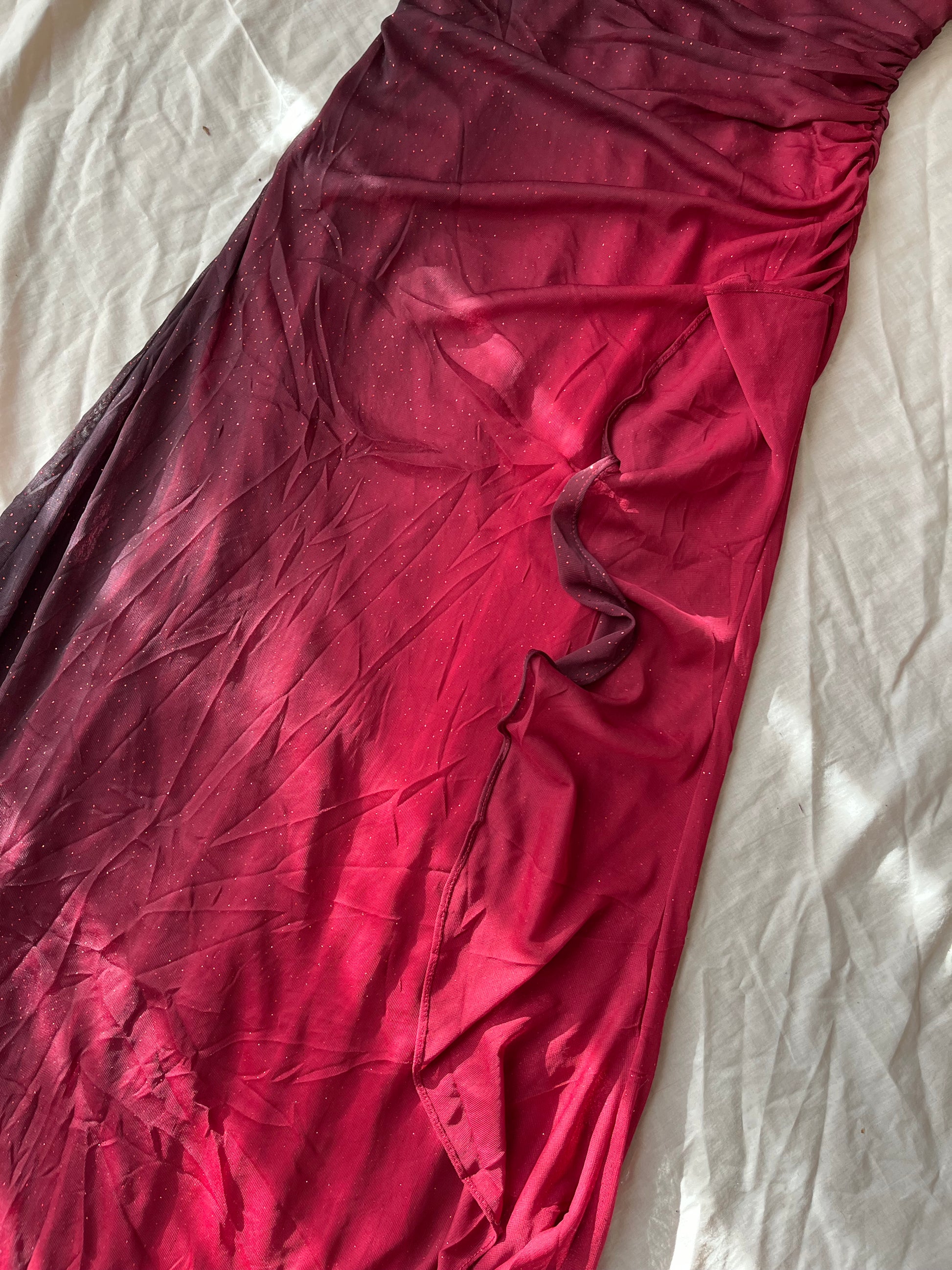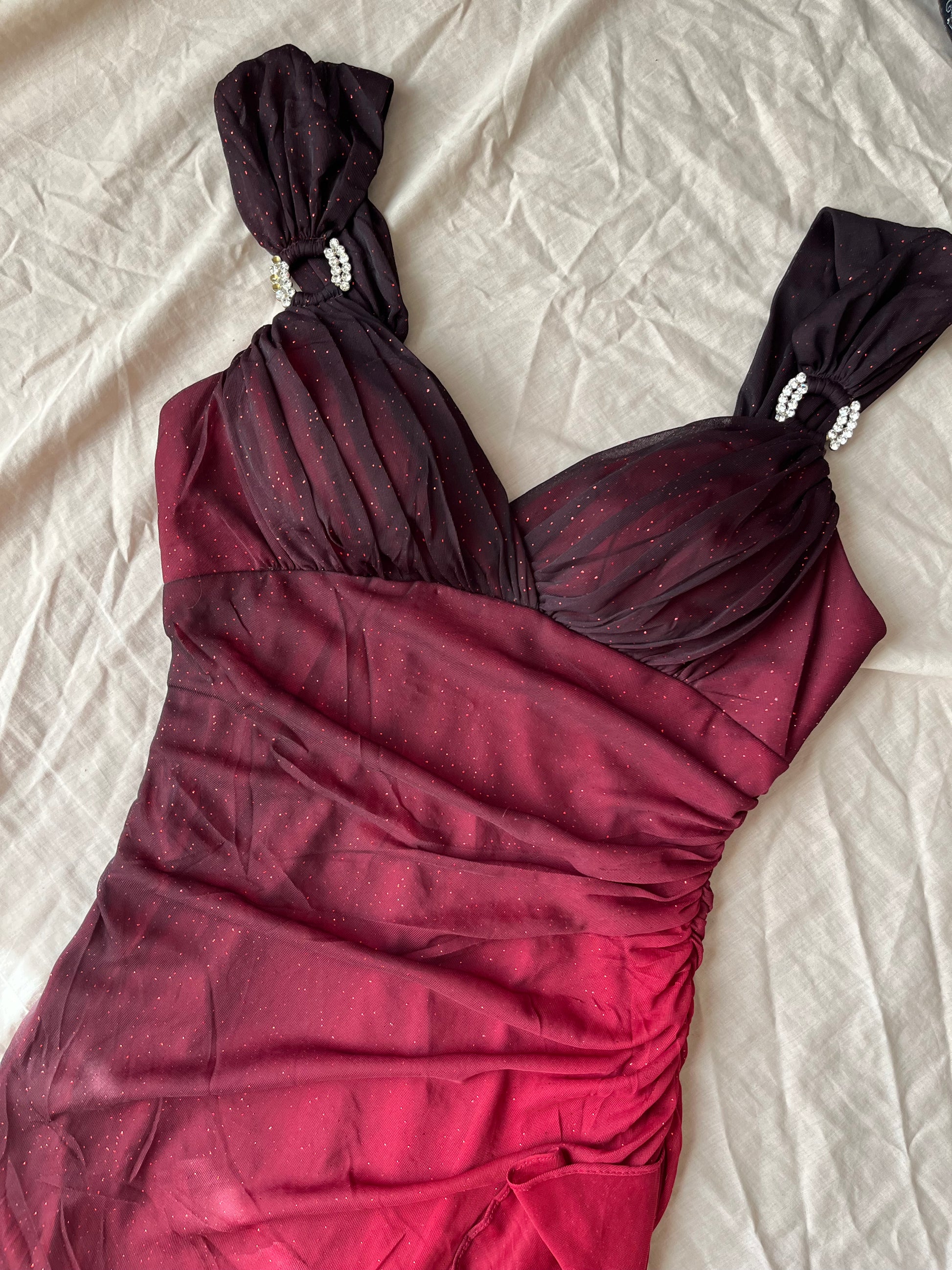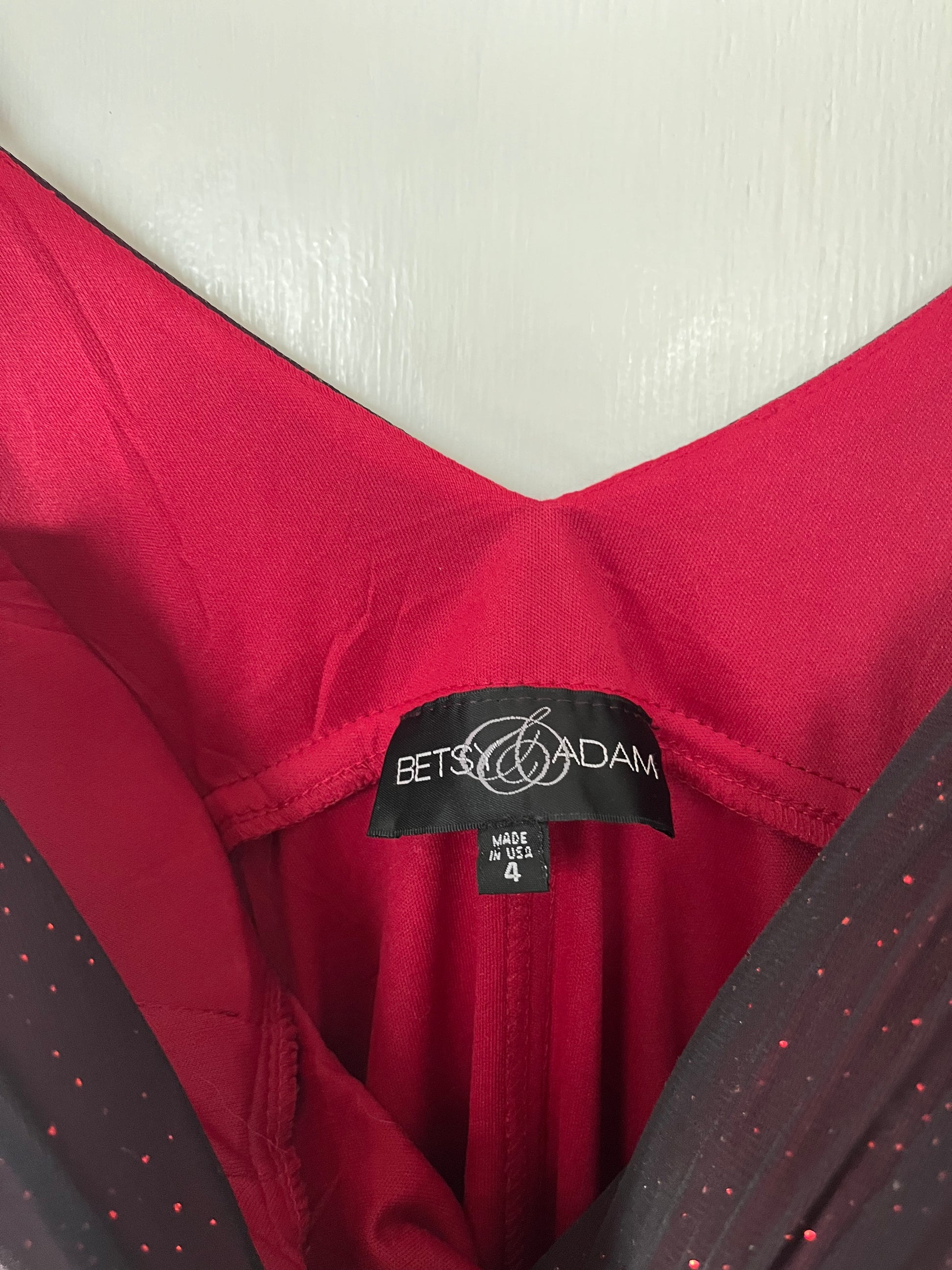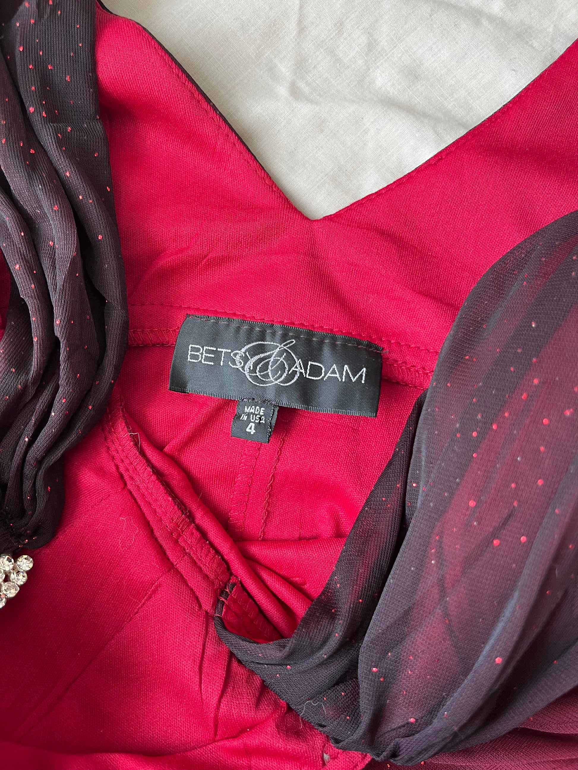 Amazing 1990s glittery red occasion dress by Betsy & Addam! This zips up on the side and has a stretchy flattering fit. Rare piece from the 90s.