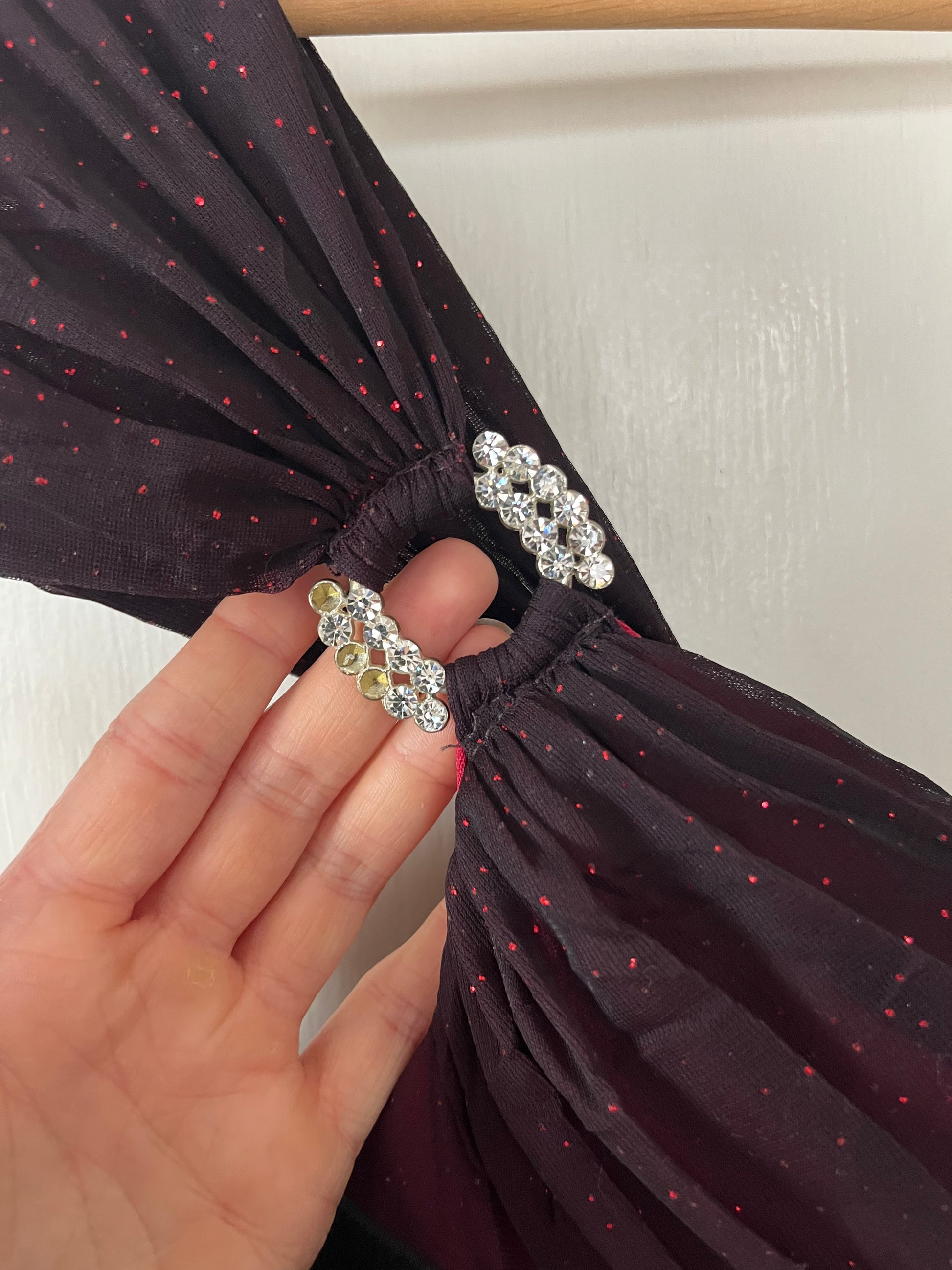 Condition: In perfect vintage condition, apart from 3 missing rhinestones on the right shoulder. Not very noticeable and easy to replace. See last photo.