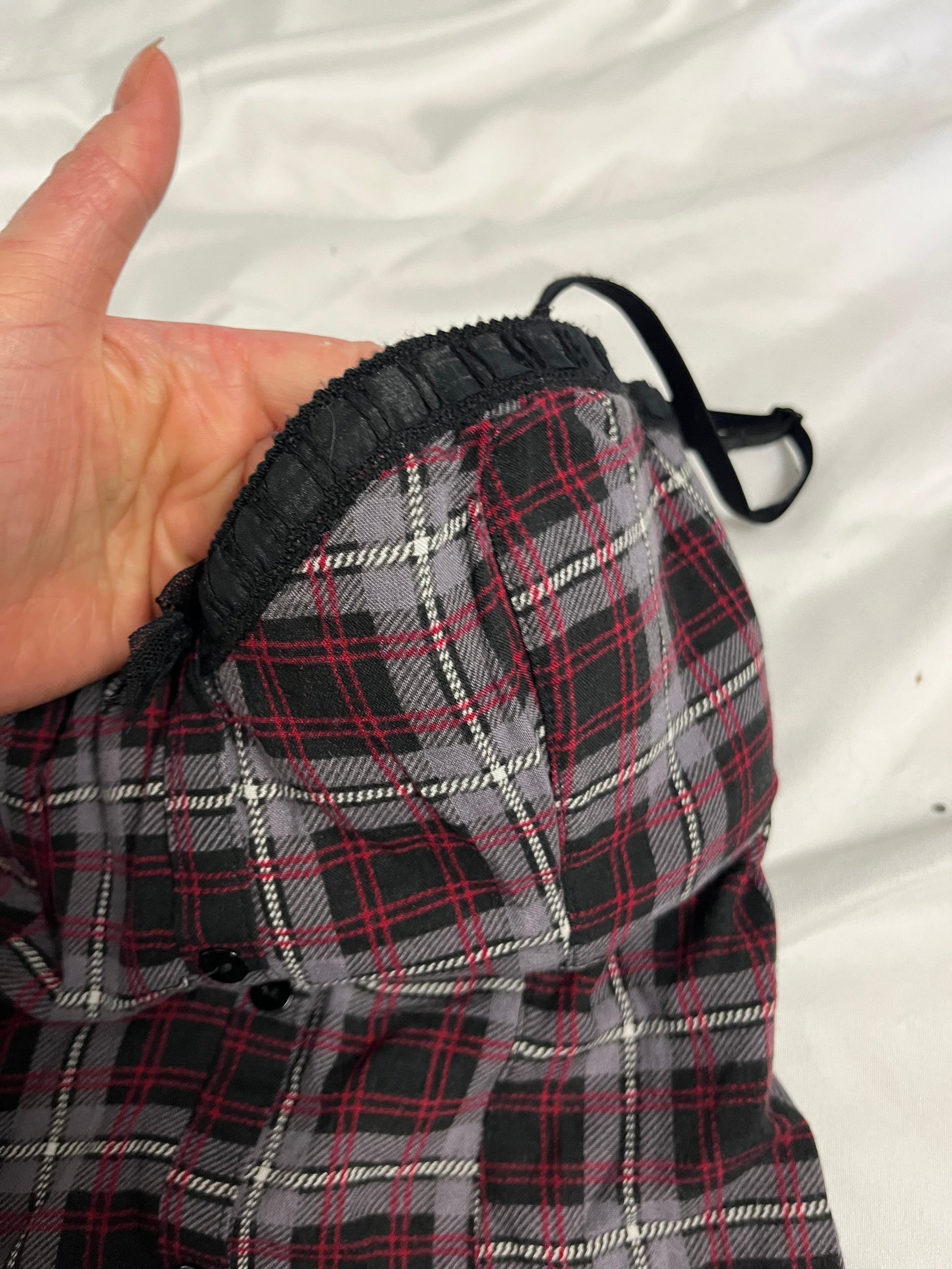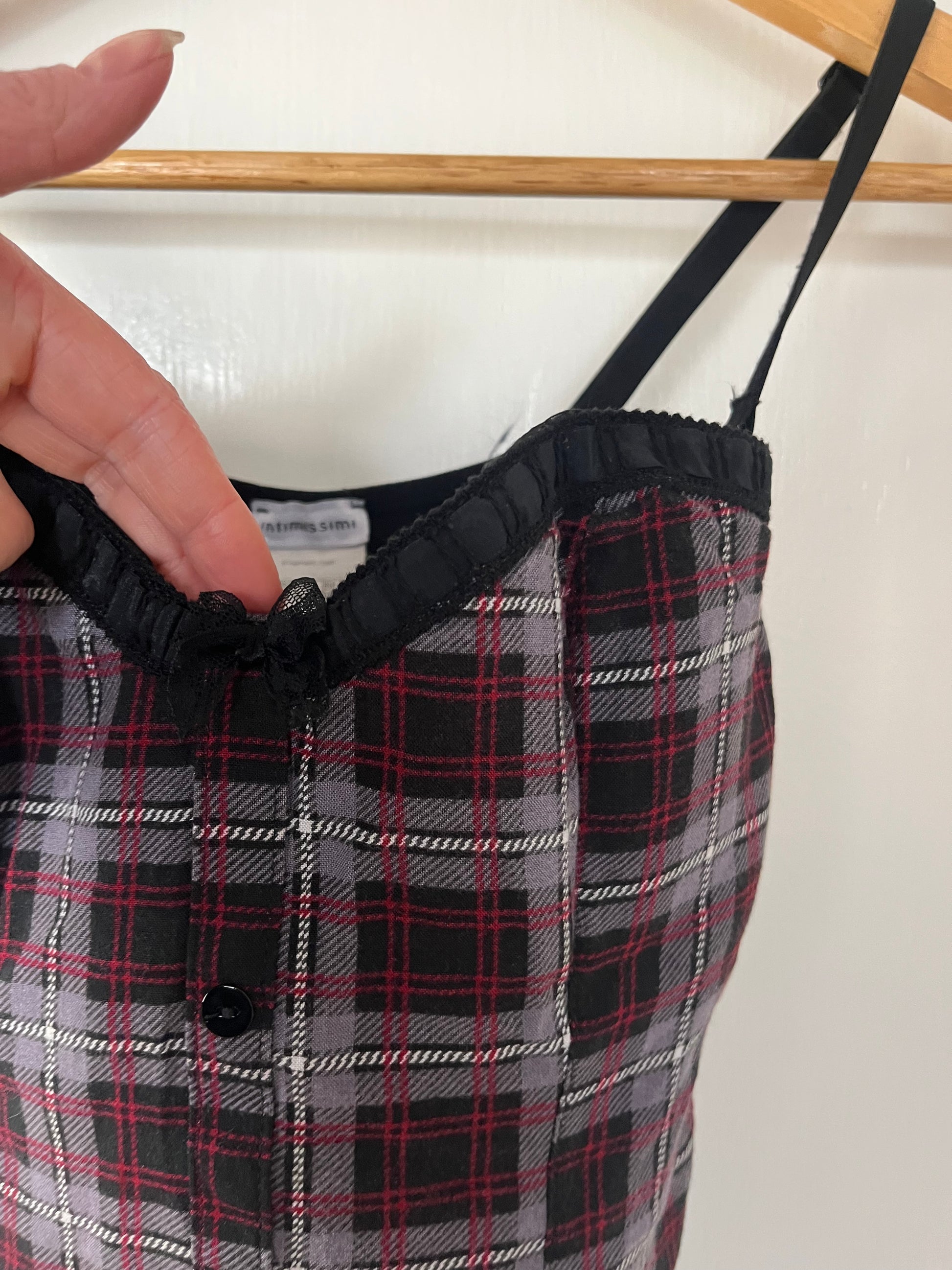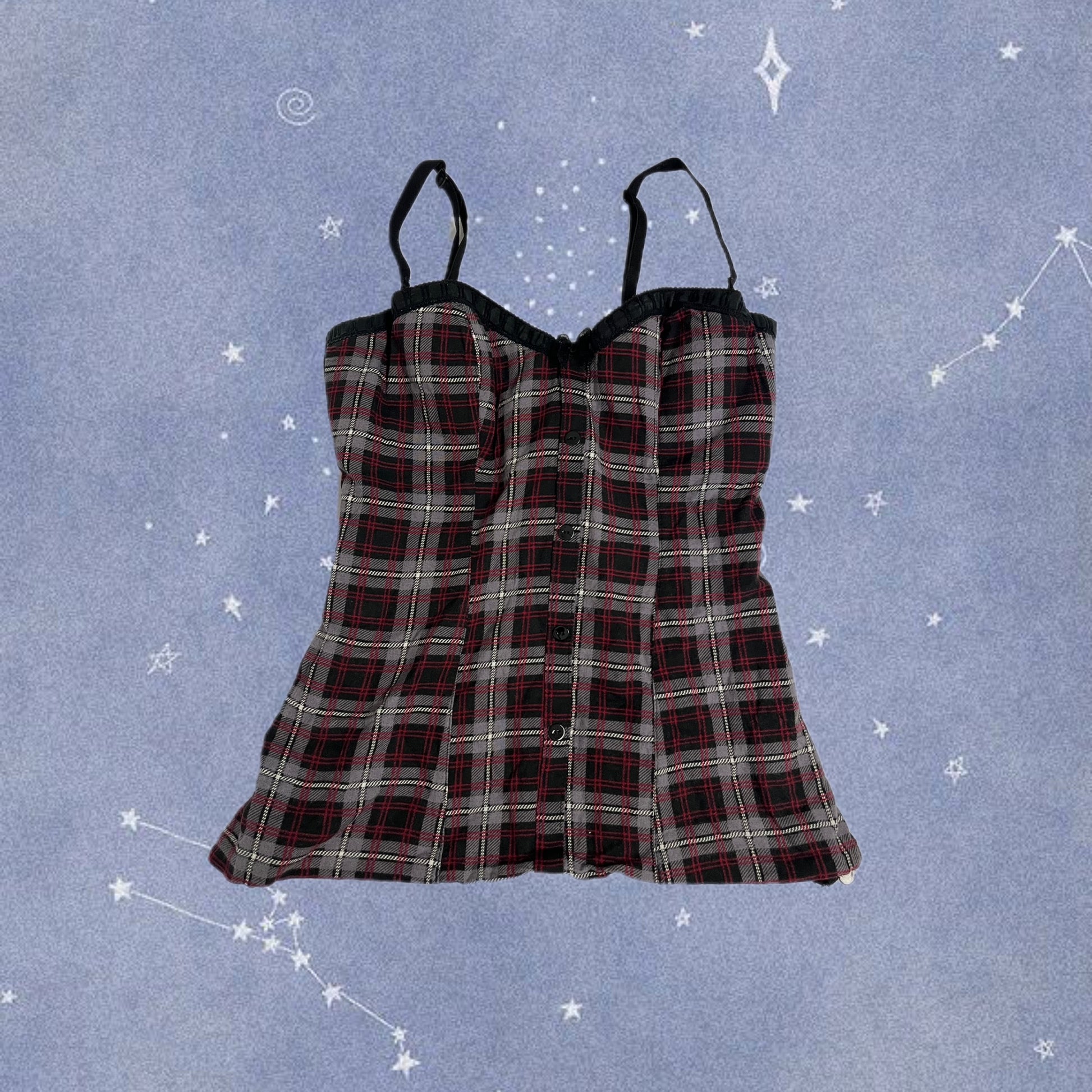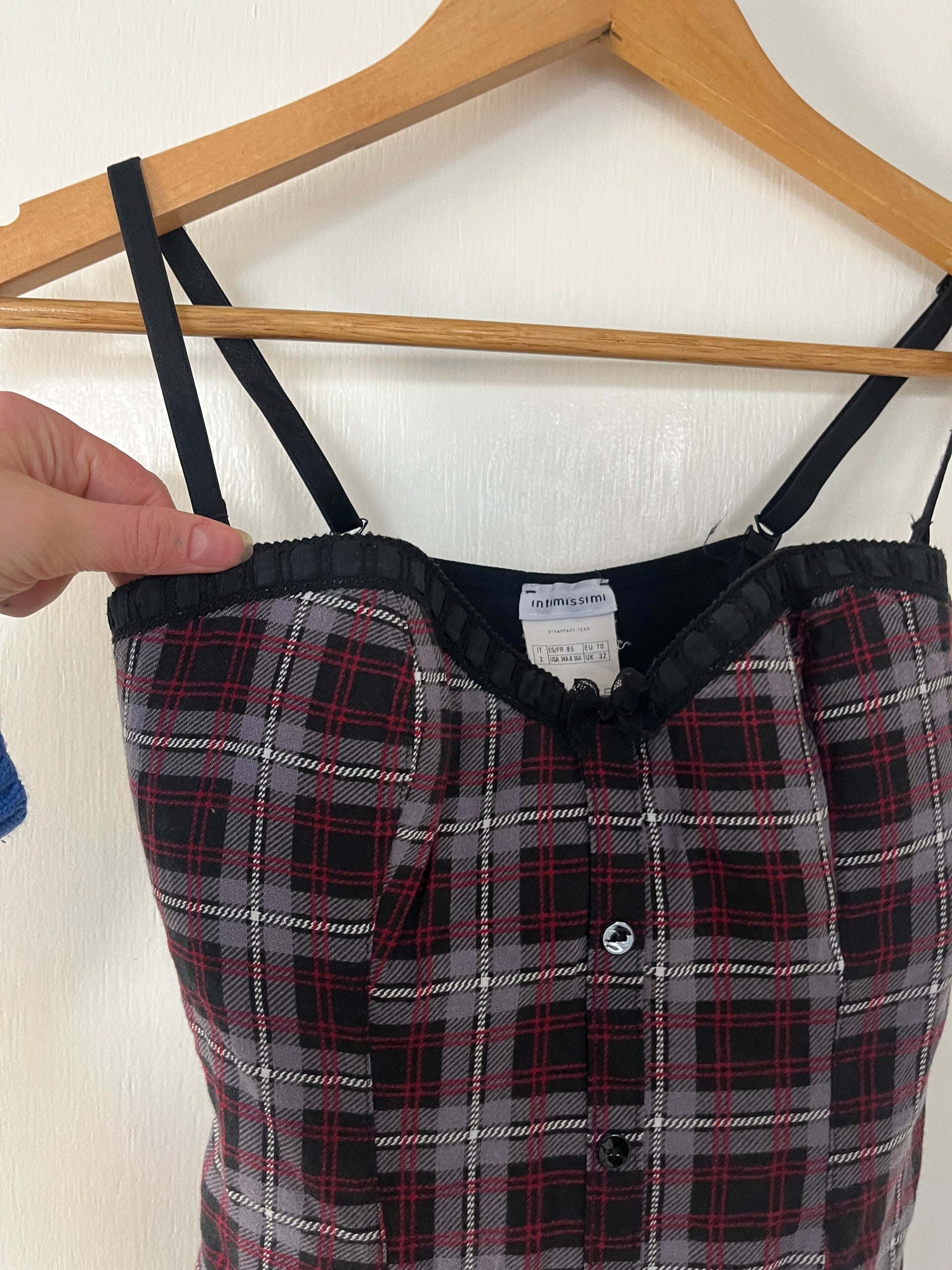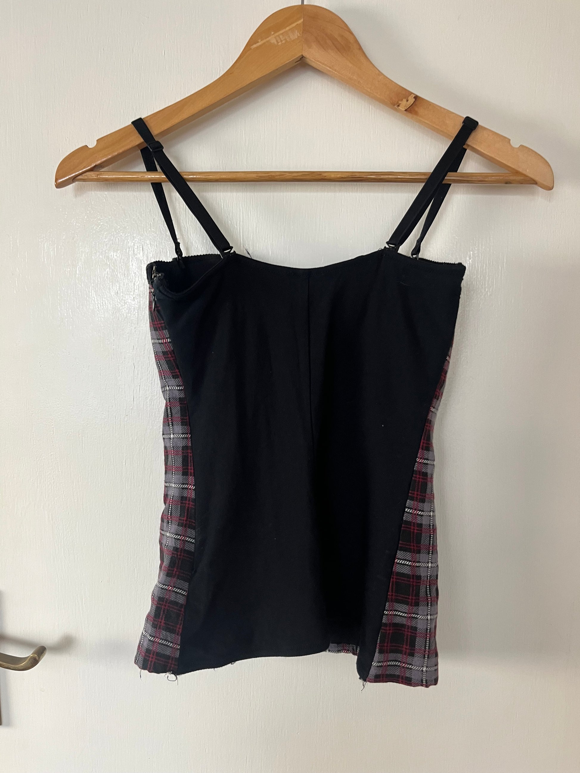 2000s tartan cami top! The cup on this would fit A/B chest and it has a stretchy fit.