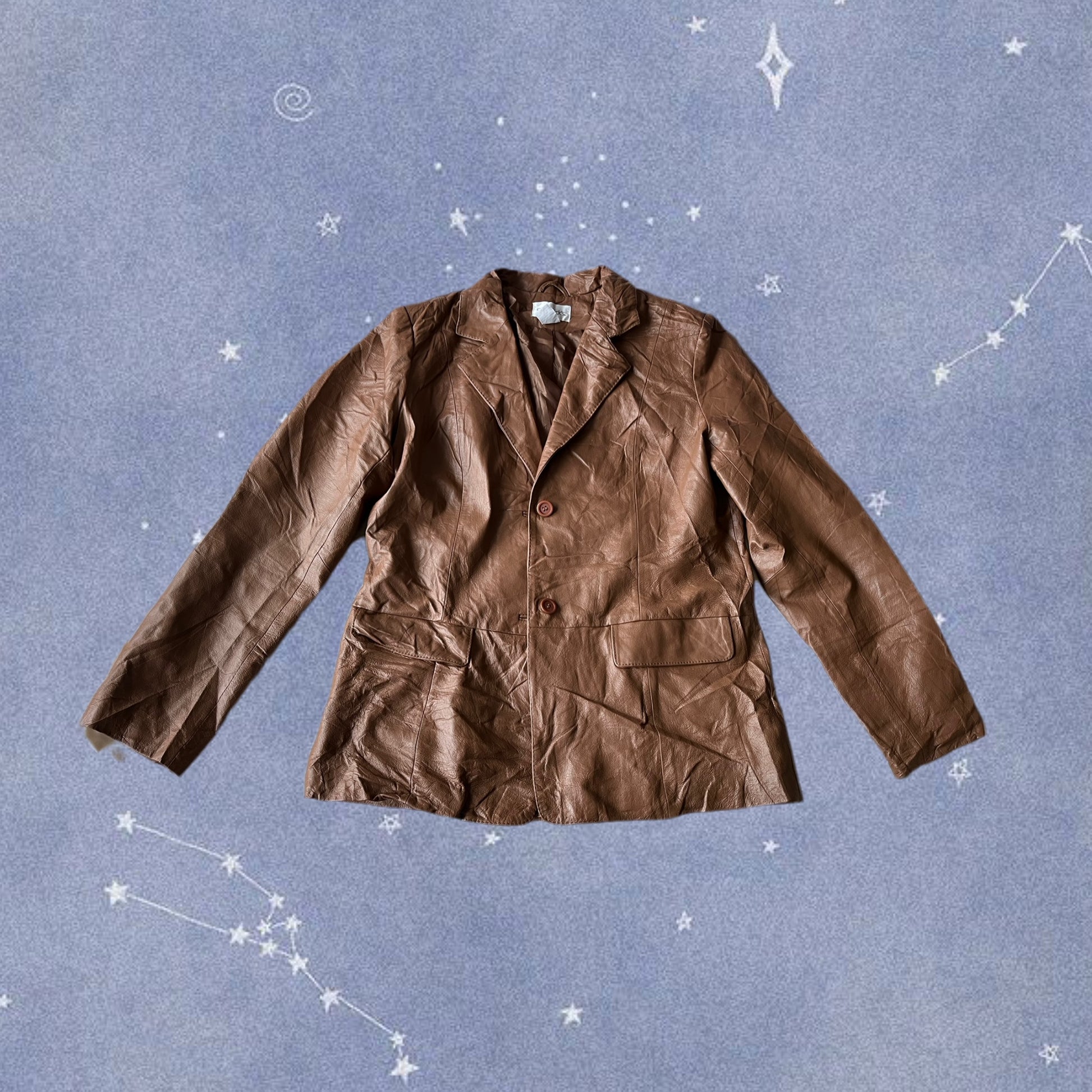 Amazing 1990s brown leather jacket! Two buttons on the front with a flattering fit. In perfect vintage condition and would best fit UK 8-14.