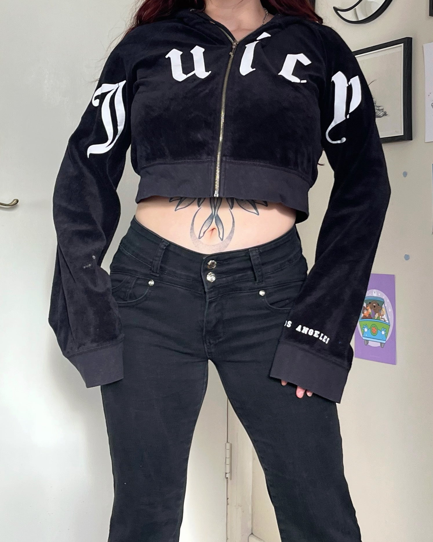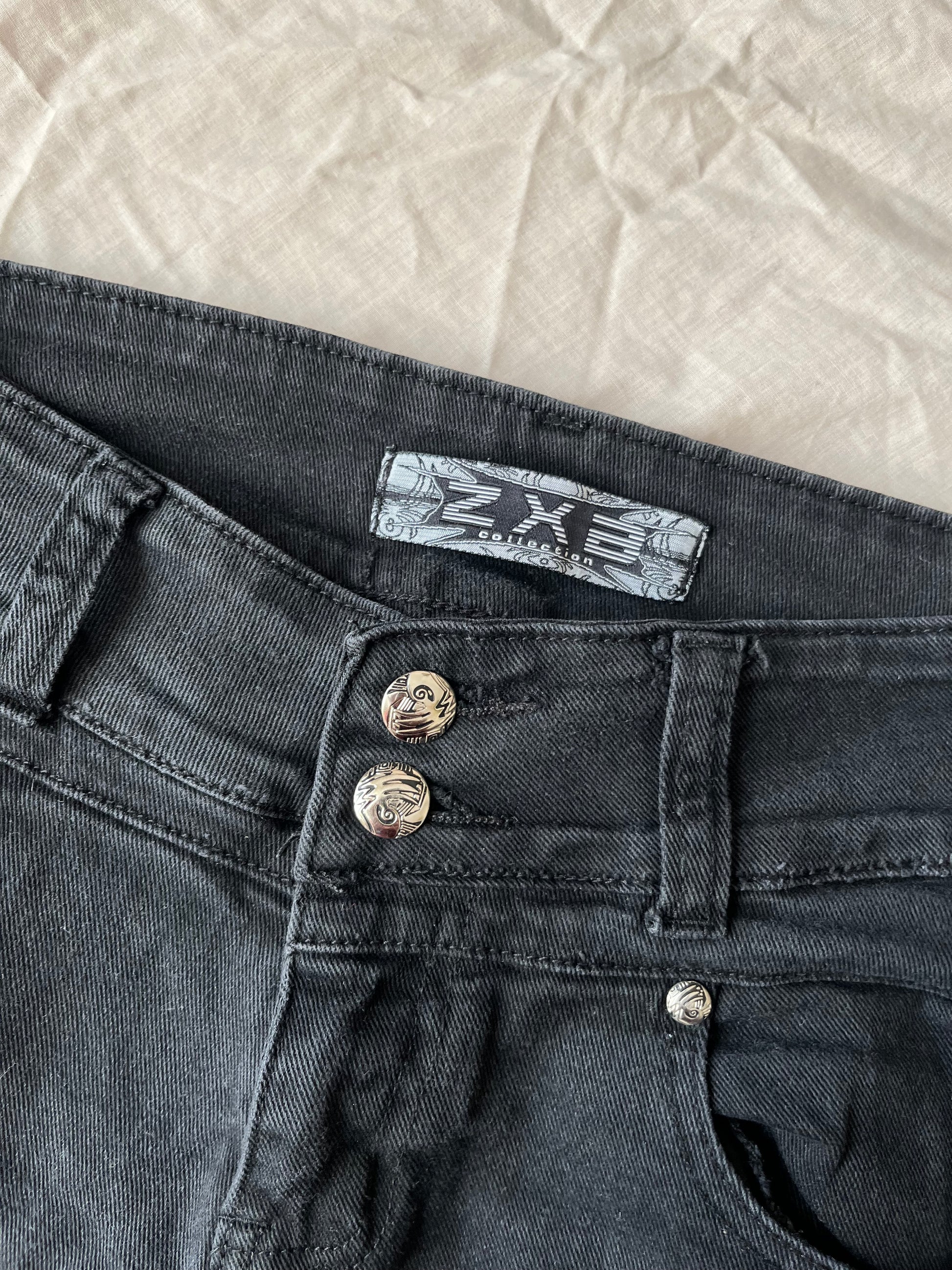Amazing 2000s black jeans with a flared leg! Has a flattering fit, cool design on the back and mid rise waist.