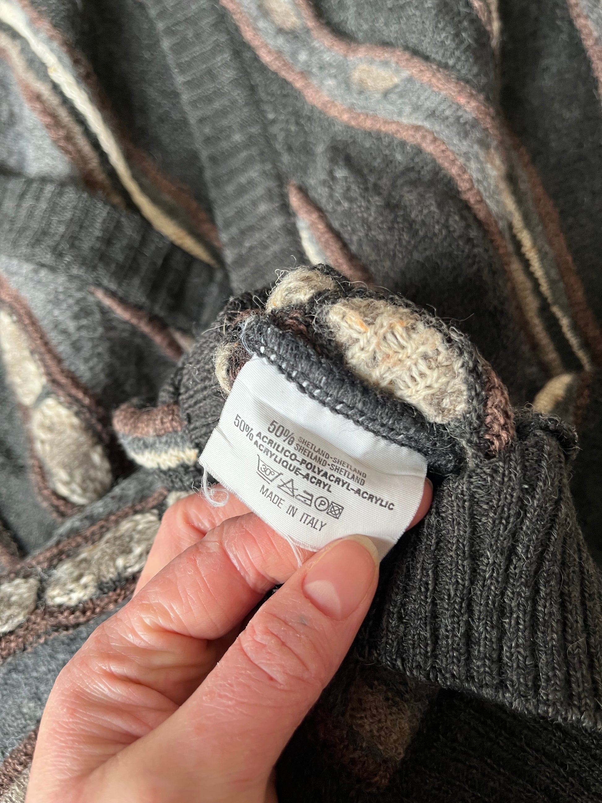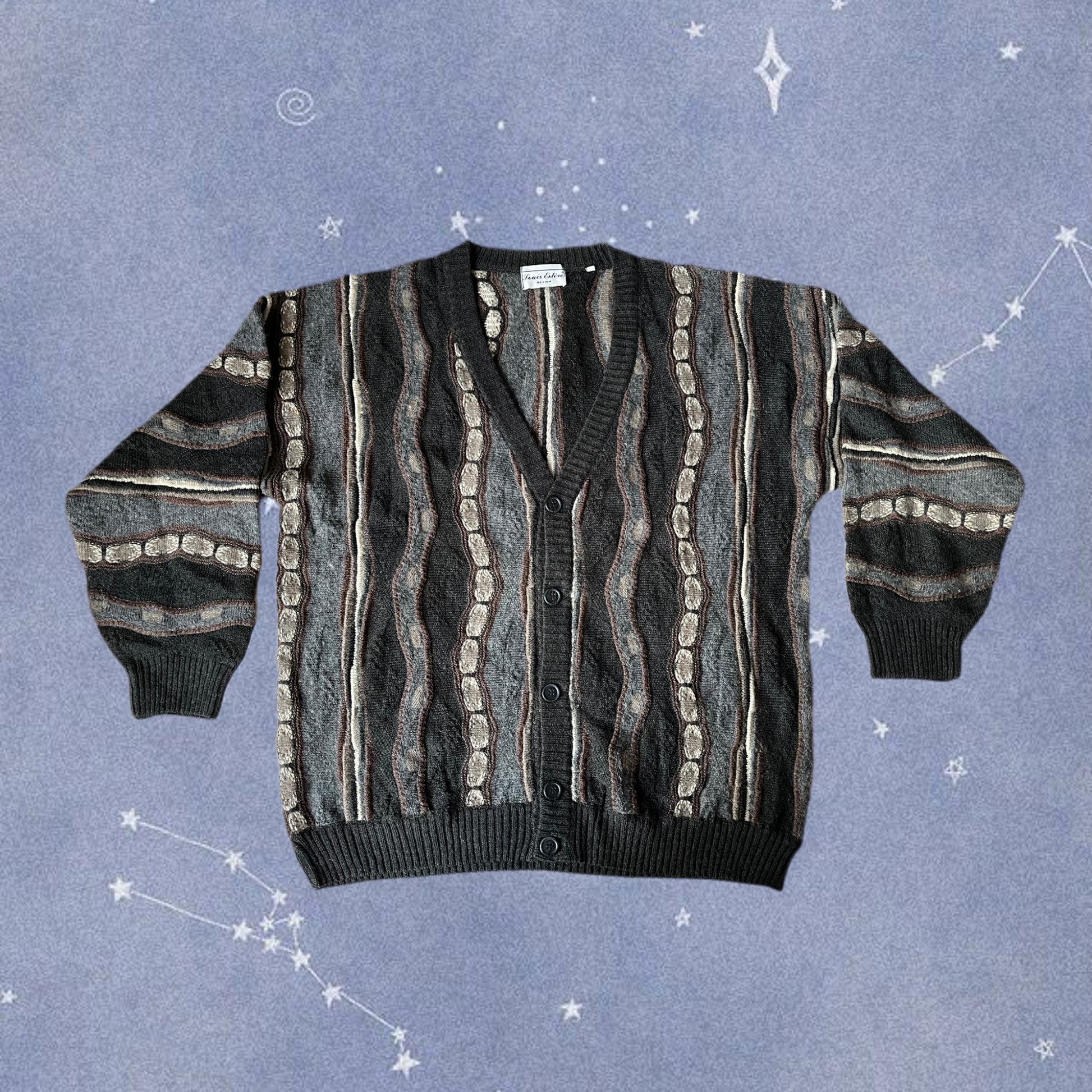 Amazing 1990s brown grungey Coogi style cardigan! Button up front with a slouchy fit. Can fit multiple sizes.
