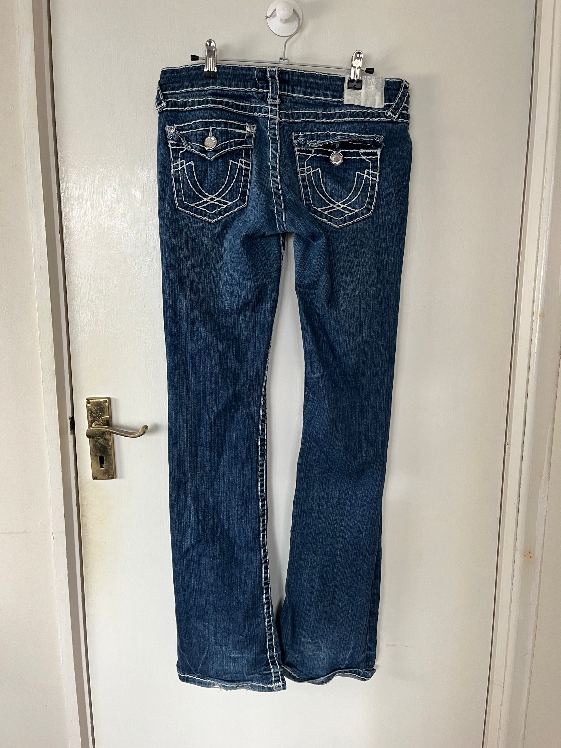 Amazing 2000s LA Idol jeans with a flared leg! Has a flattering fit and low rise waist.