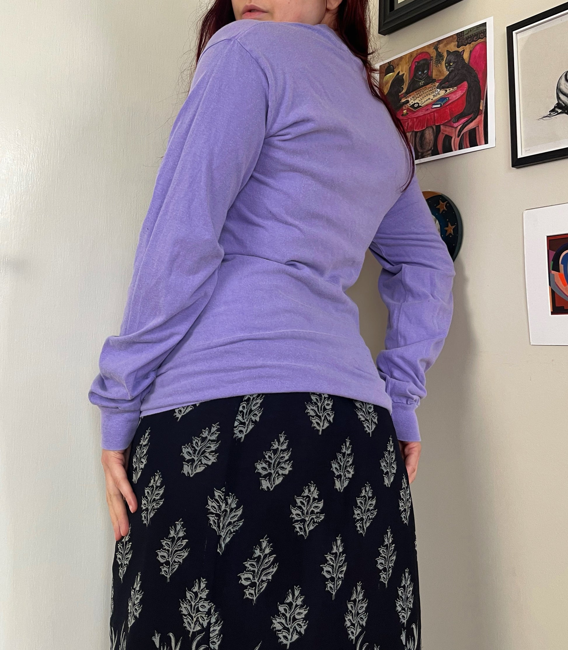 00s purple long sleeve top with a cool graphic on the front. From the brand Valfre. In perfect vintage condition and would best fit UK 6-12, labelled S.