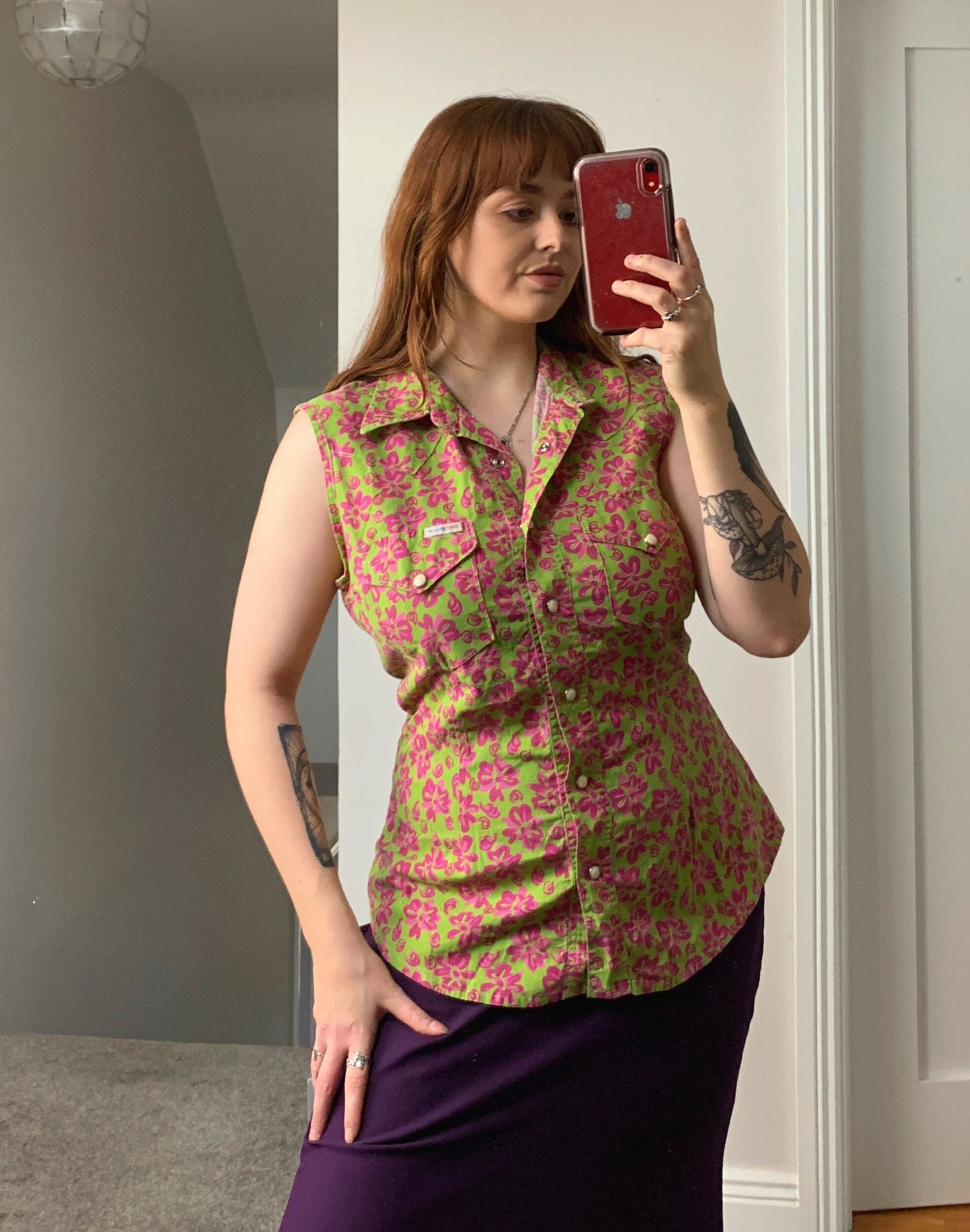 Gorgeous 90s/Y2K light green button up top with pink flowers pattern all over! Such a fun top! In perfect vintage condition and would best fit a UK 12 or fit slightly oversized on a UK 10. Labelled M.